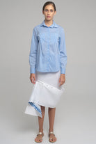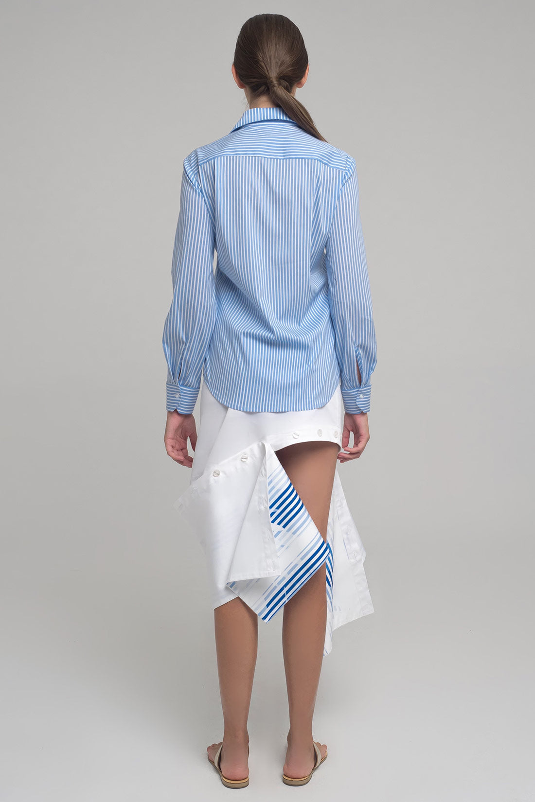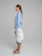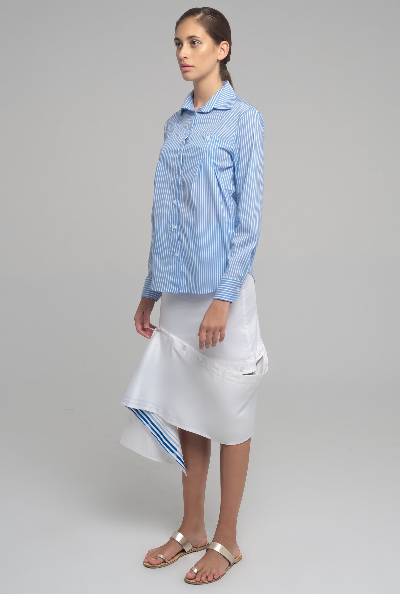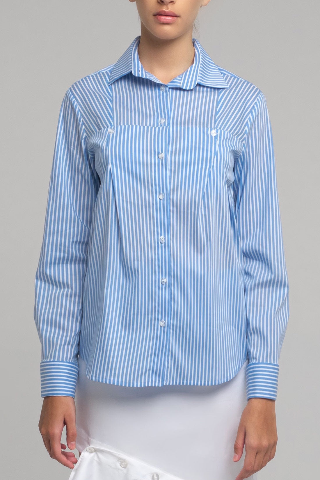 MASCULINE-CUT SHIRT IN STRETCH COTTON WITH TWO PLEATED POCKETS. CLASSIC COLLAR, LONG SLEEVES.