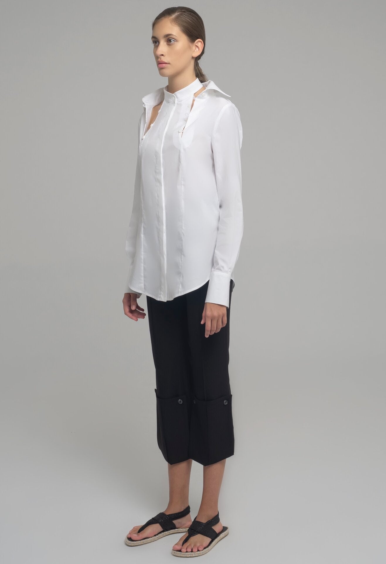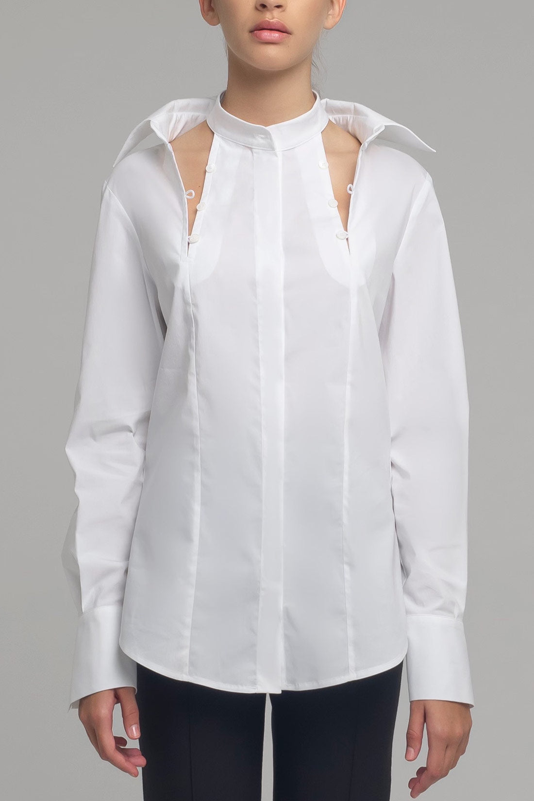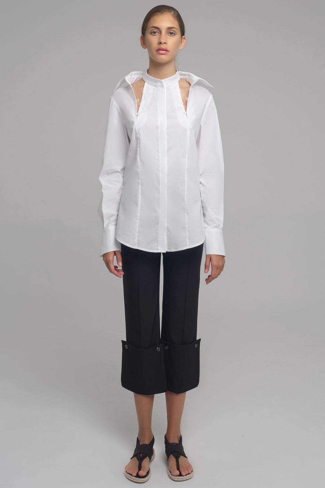 CLASSIC CUT STRETCH COTTON SHIRT WITH LONG SLEEVES, MOTHER-OF-PEARL BUTTONS, DOUBLE COLLAR (ONE IS MANDARIN, THE SECOND IS CLASSIC) AND TWO PETITE FRONTAL OPENINGS.