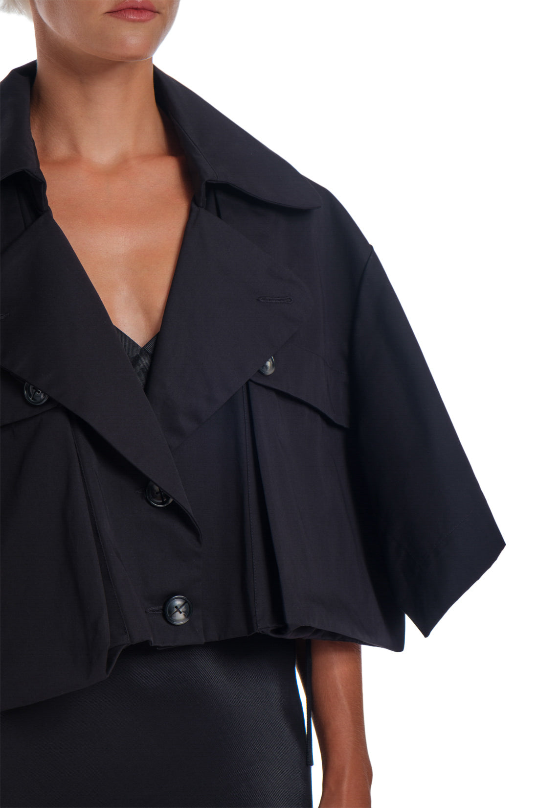 Cape short cut, with two front pockets, large river, waterproof.