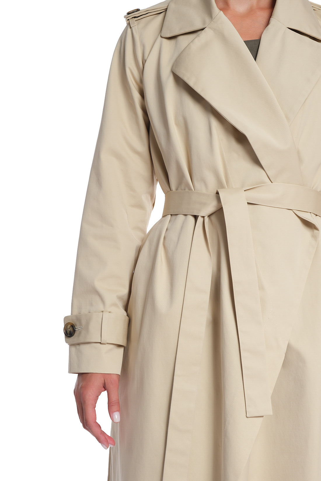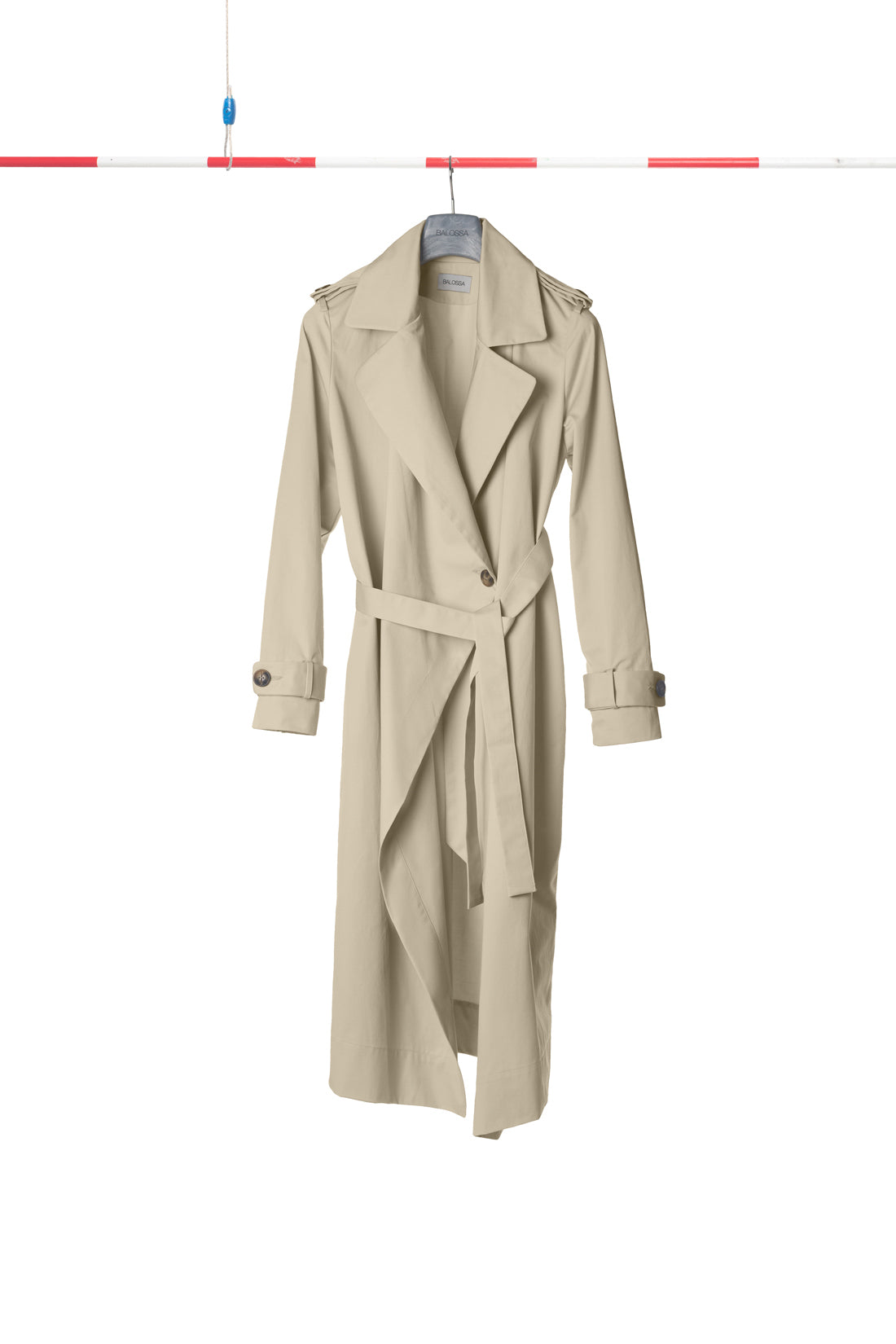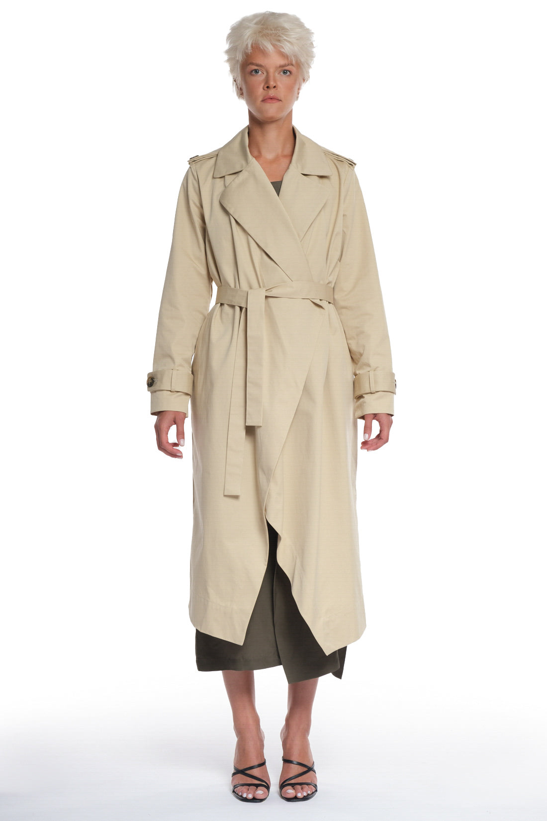 Waterproof asymmetric trench coat, with two sides pocket and the belt