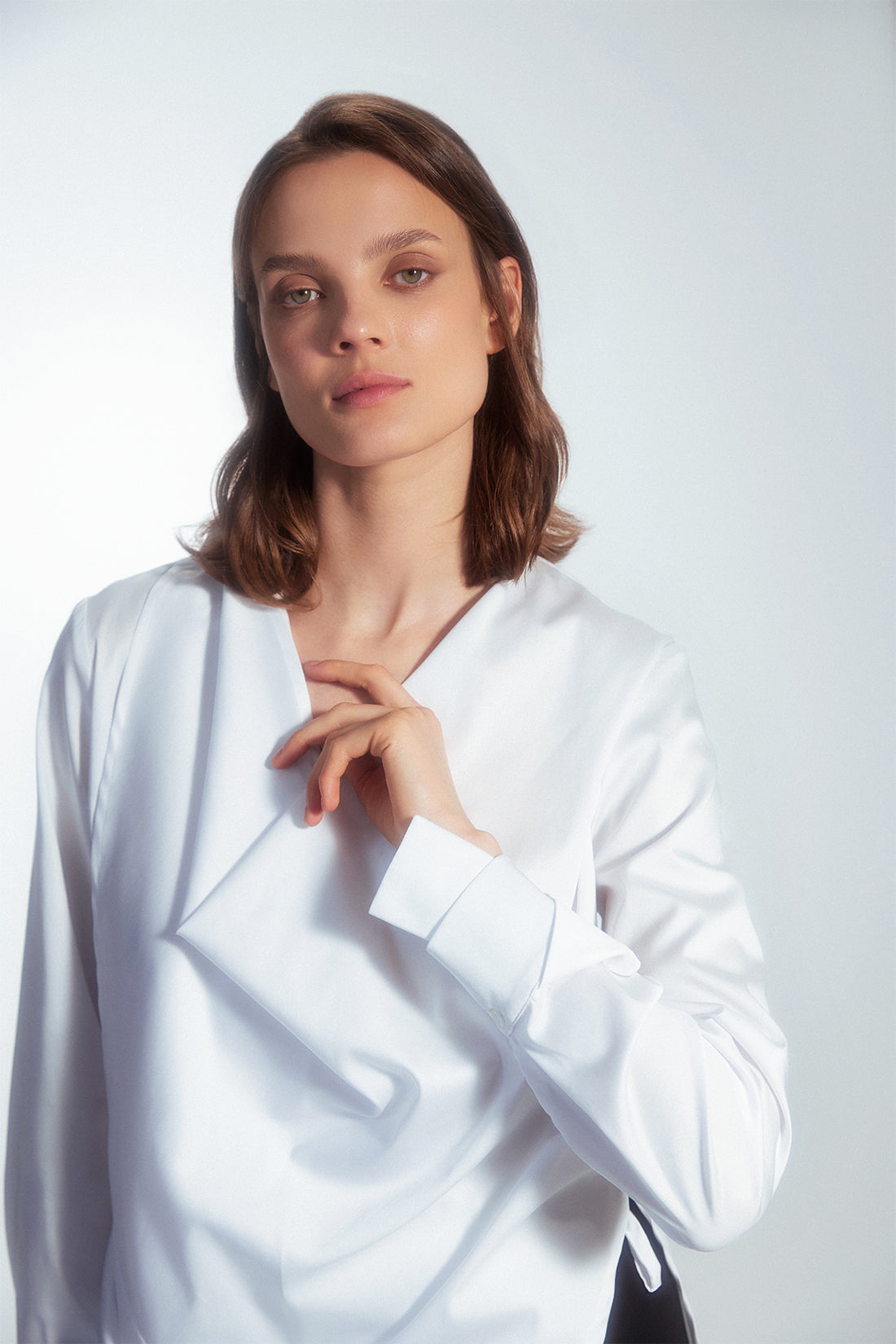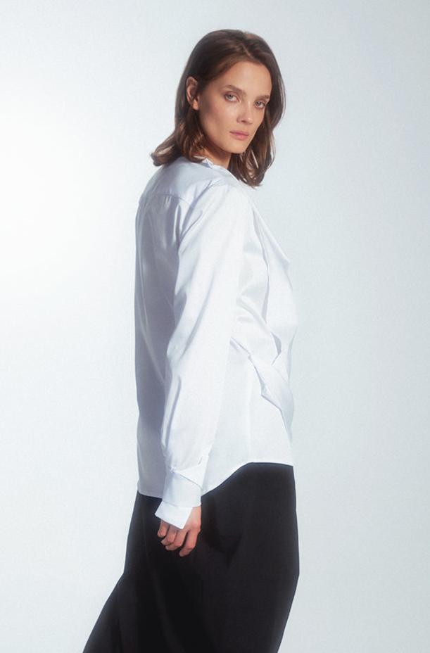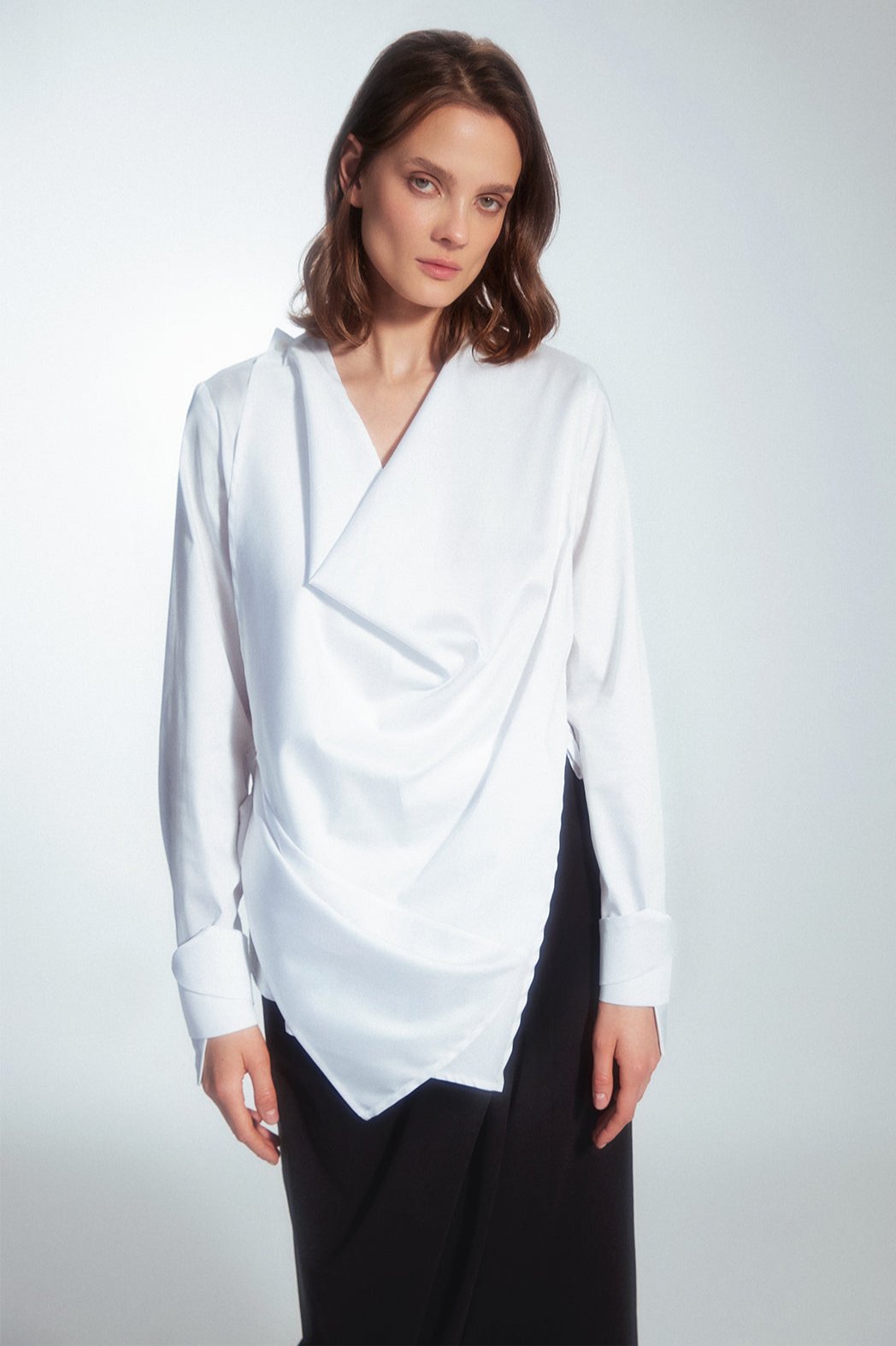 Regular-cut shirt with a side closure featuring two overlapping panels. The unique feature of this shirt is the River Island cowl, the side cut, and the cuffs with an adjustable wrap detail.