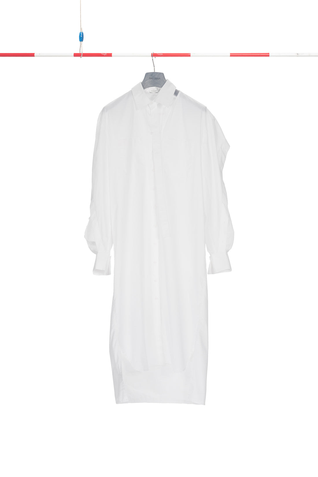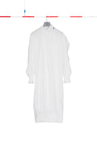 Long shirt-dress with cuttings and buttoning on the sleeves, two side pockets