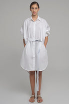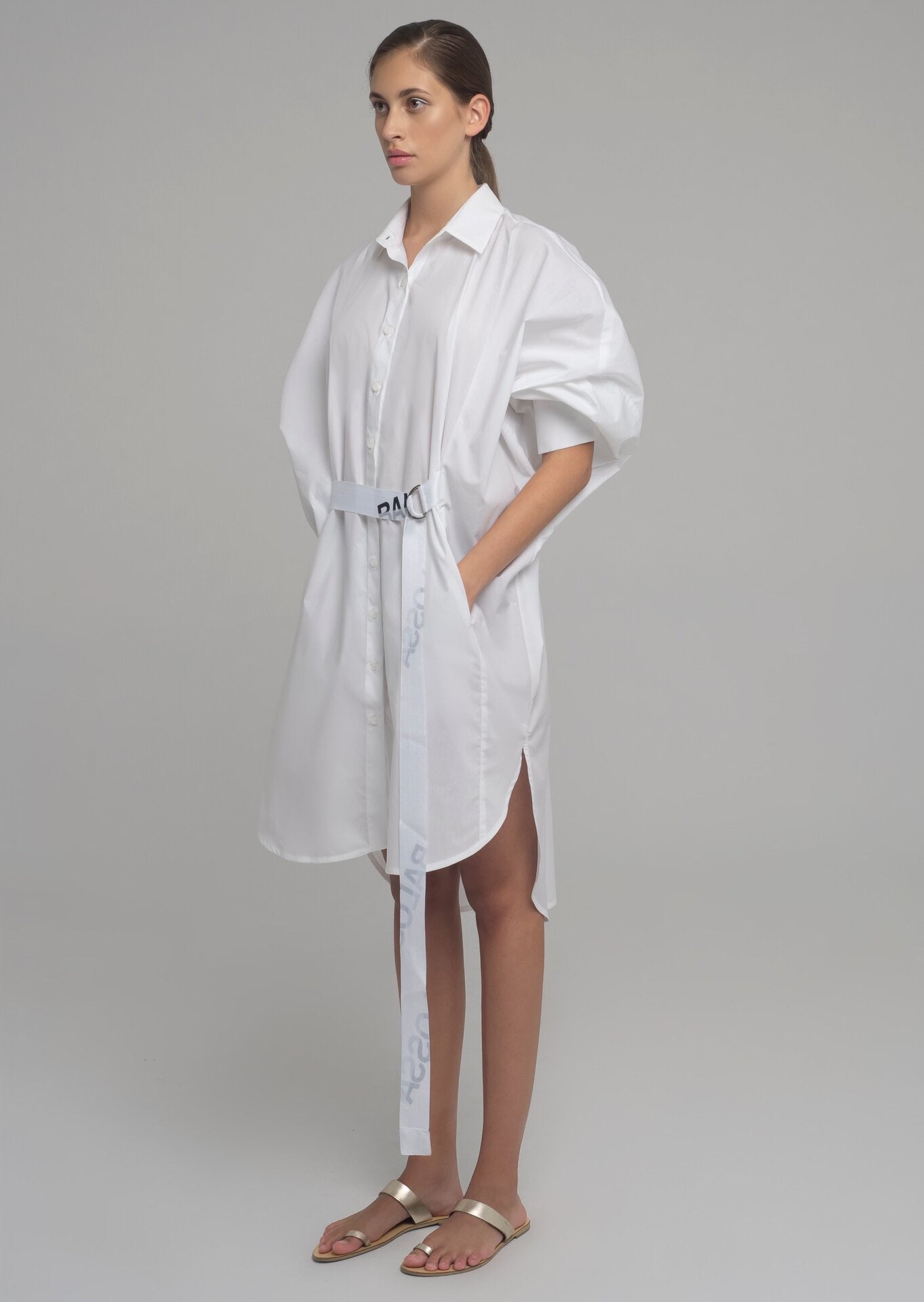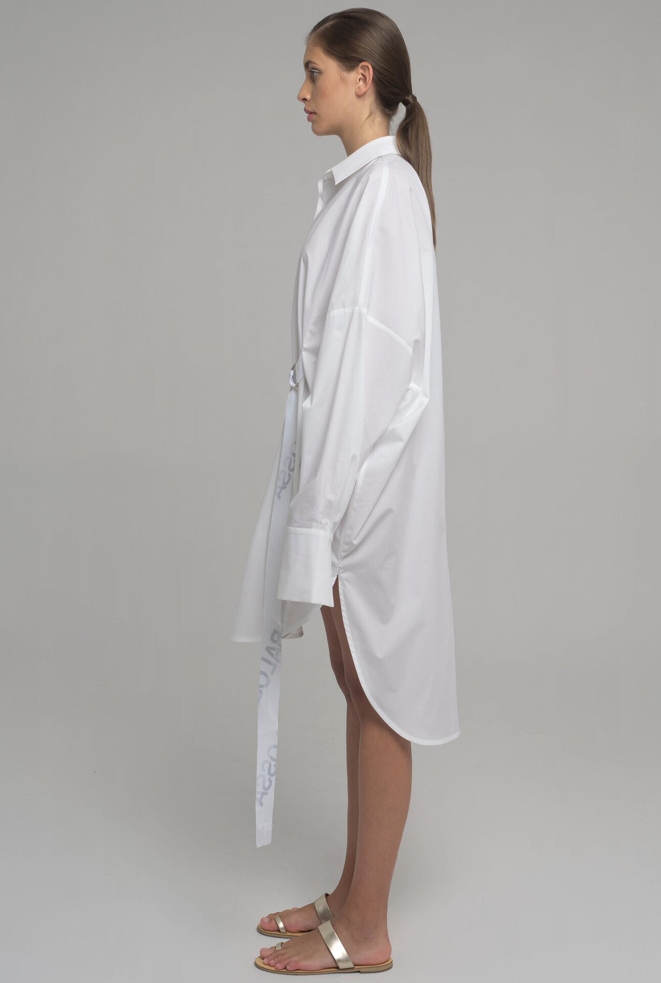 OVERSIZED COTTON POPLIN SHIRT WITH LONG SLEEVES. COTTON BELT WITH STYLIZED LOGO PRINT AND ROUNDED CUTS AT THE HIP.