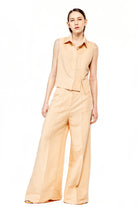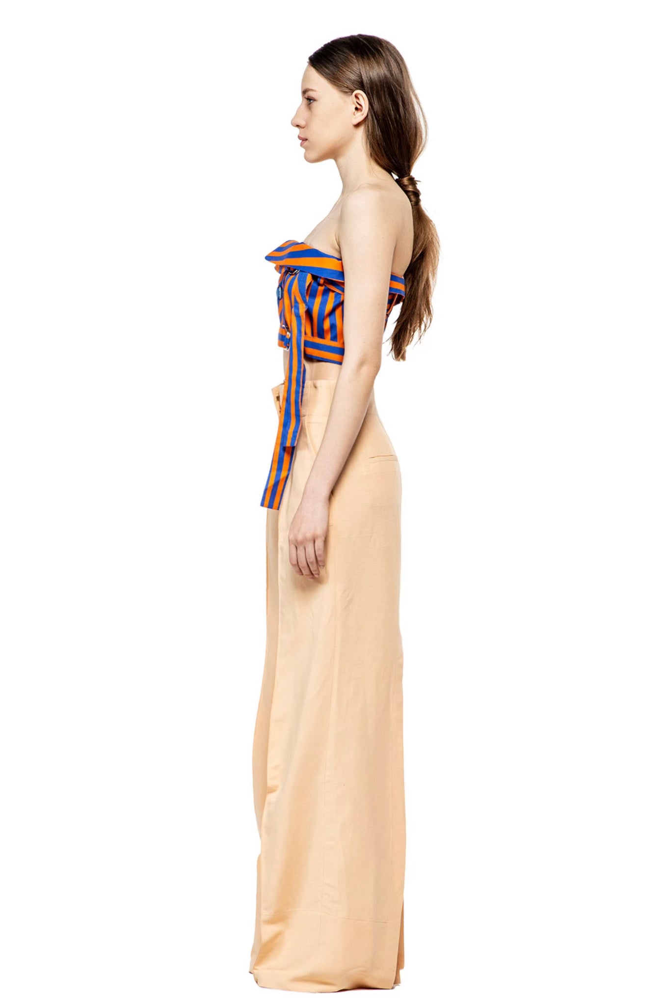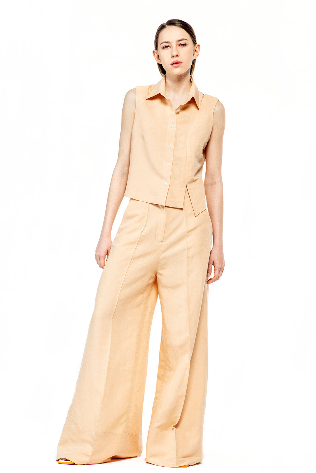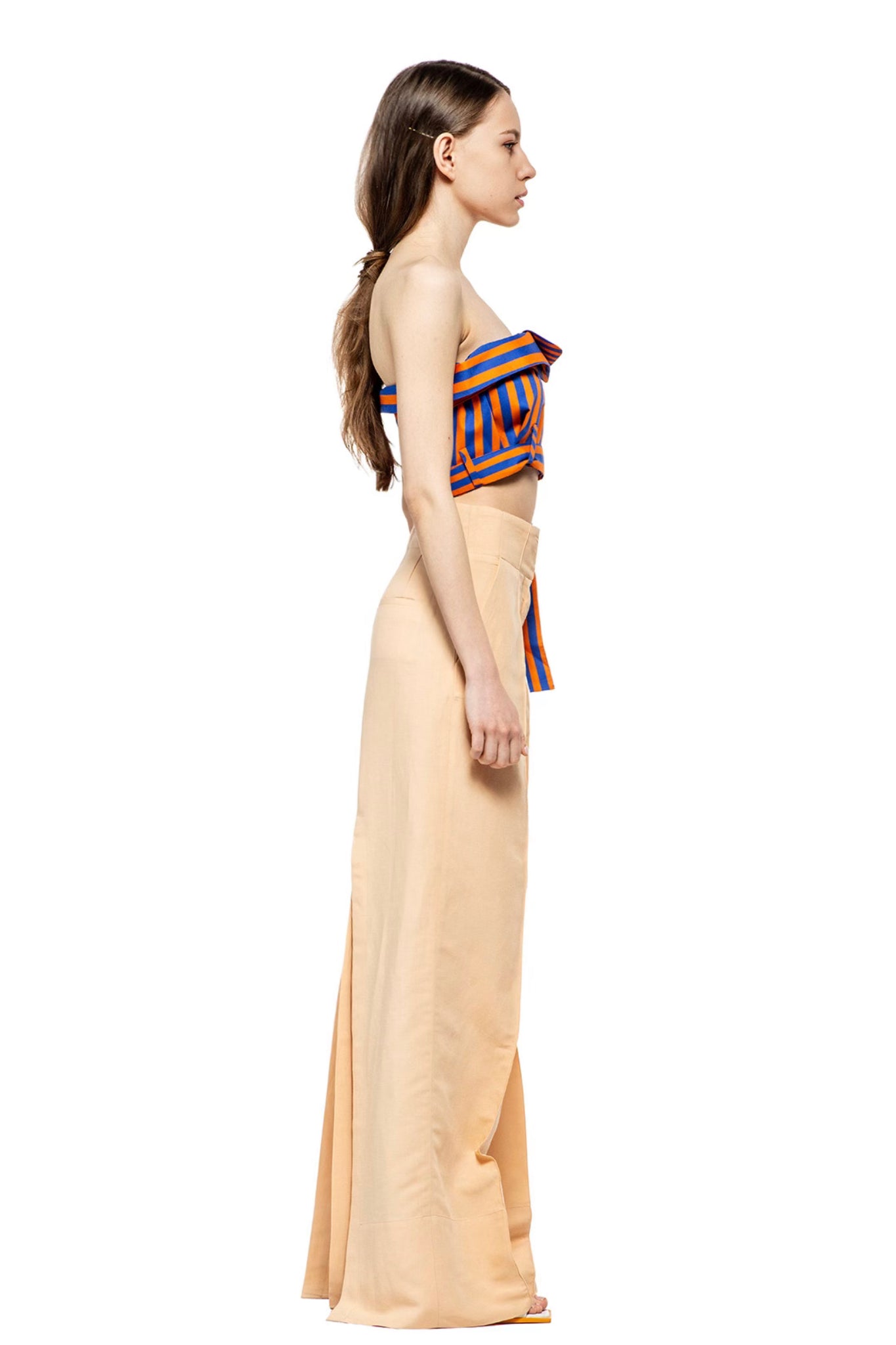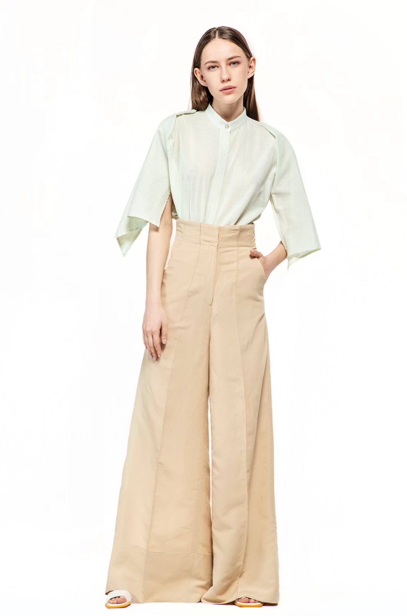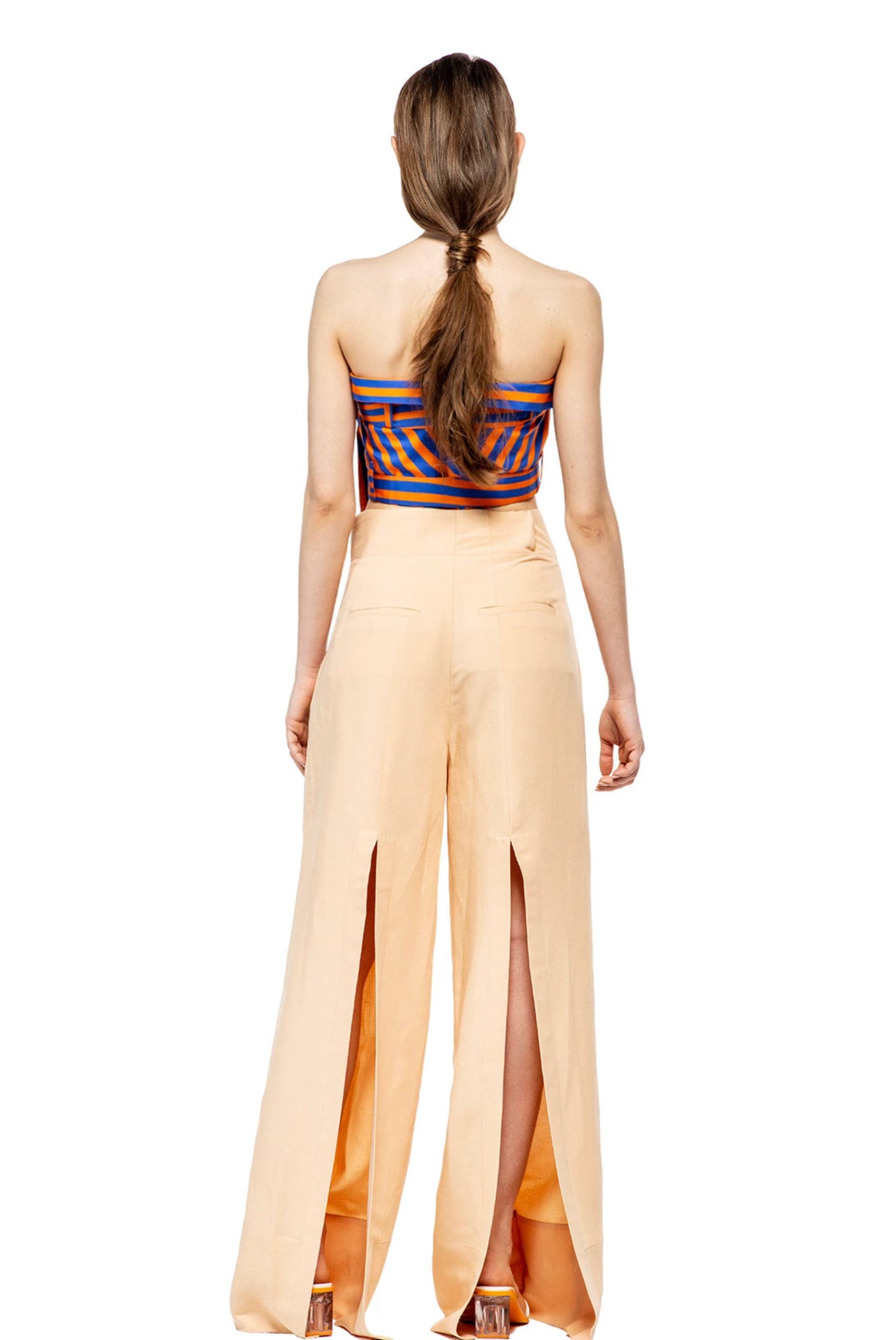 Long high-waisted pants, two sides pockets, slits behind