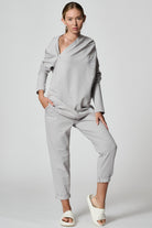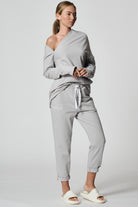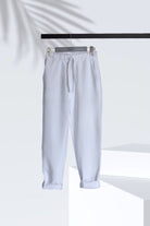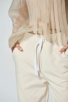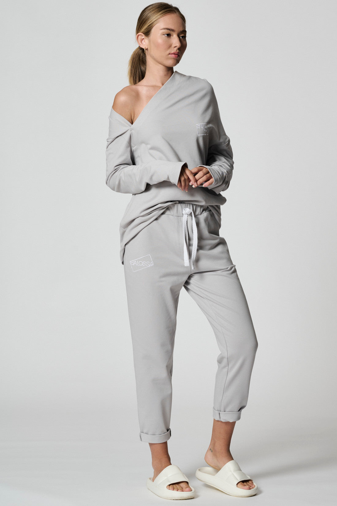Regular-fit sweatpants with large elasticated waistband, decorative lace. Embellished with embroidery "Balossa". Front slant pockets and one classic back pocket.