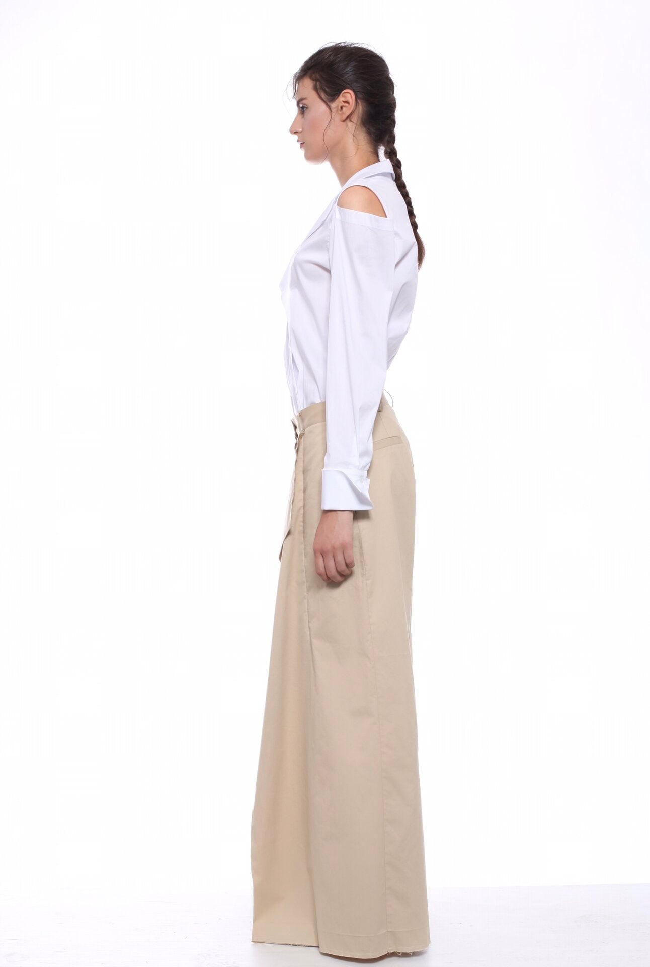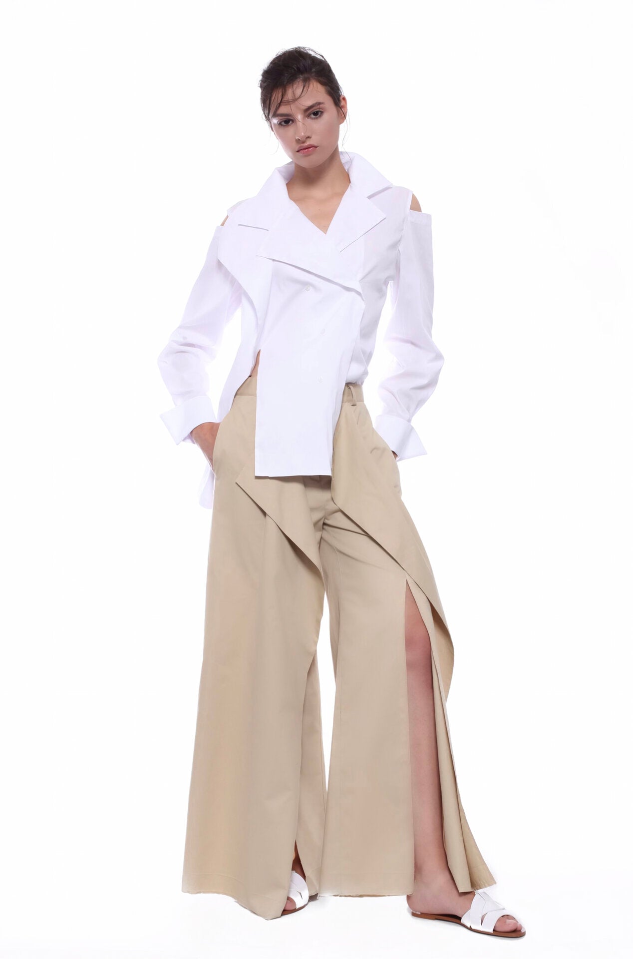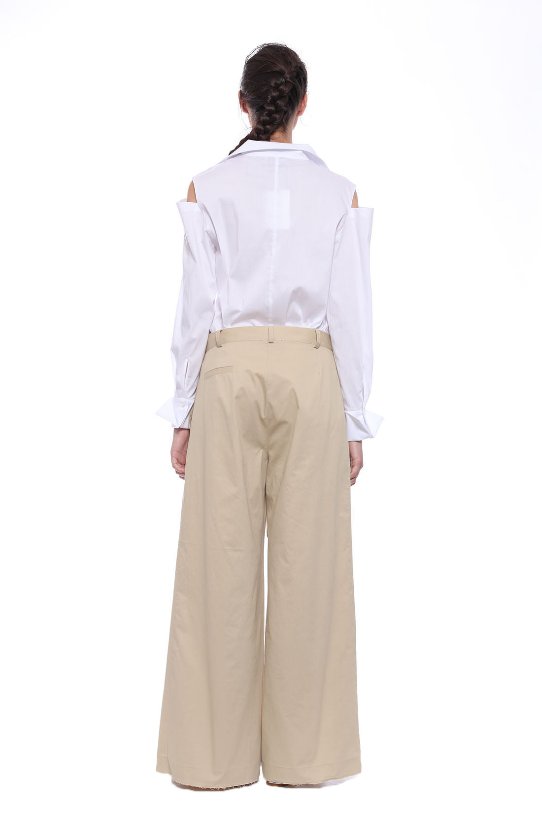 WIDE-LEG TROUSERS WITH LONG FRONTAL SLITS AND TWO SIDE POCKETS. MADE OF PURE, LIGTHWEIGHT PURE COTTON 'TRENCH' FABRIC.