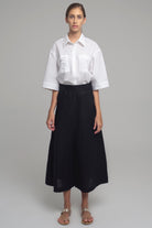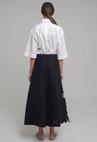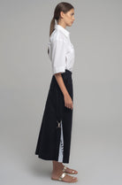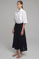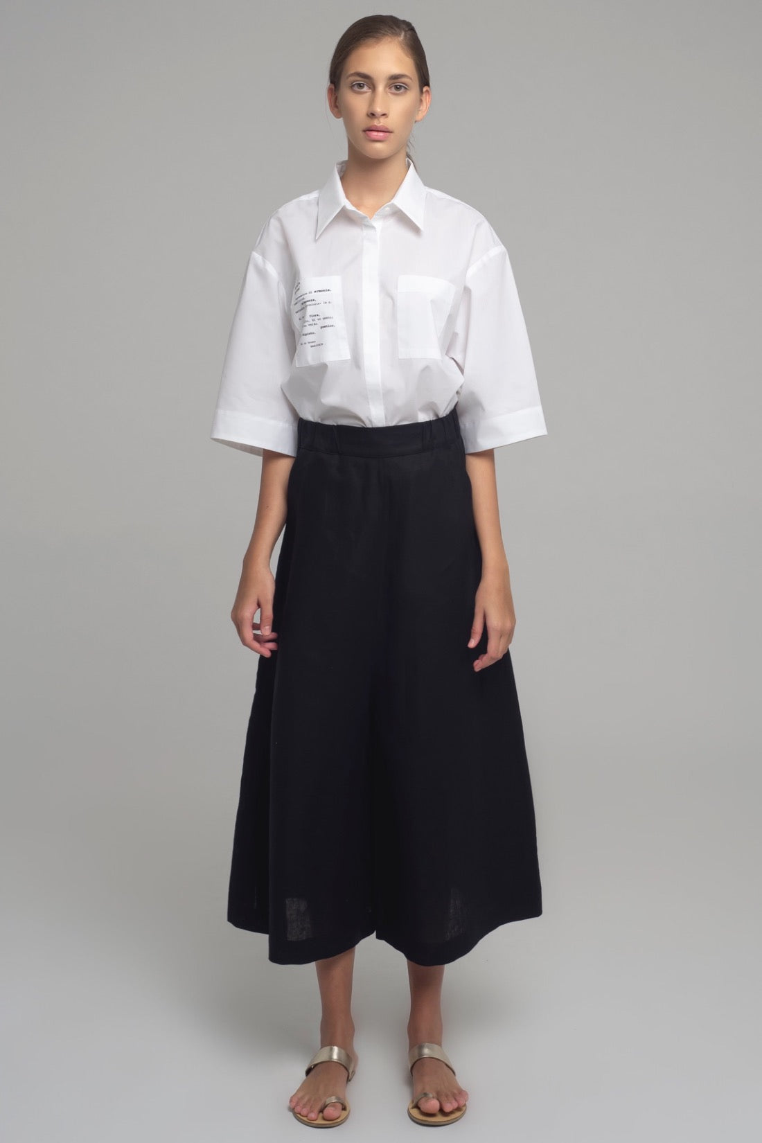 WIDE LEG TROUSERS MADE OF LINEN WITH WHITE BALOSSA LOGGED INSERT AND METAL HOOK ON ONE SIDE.