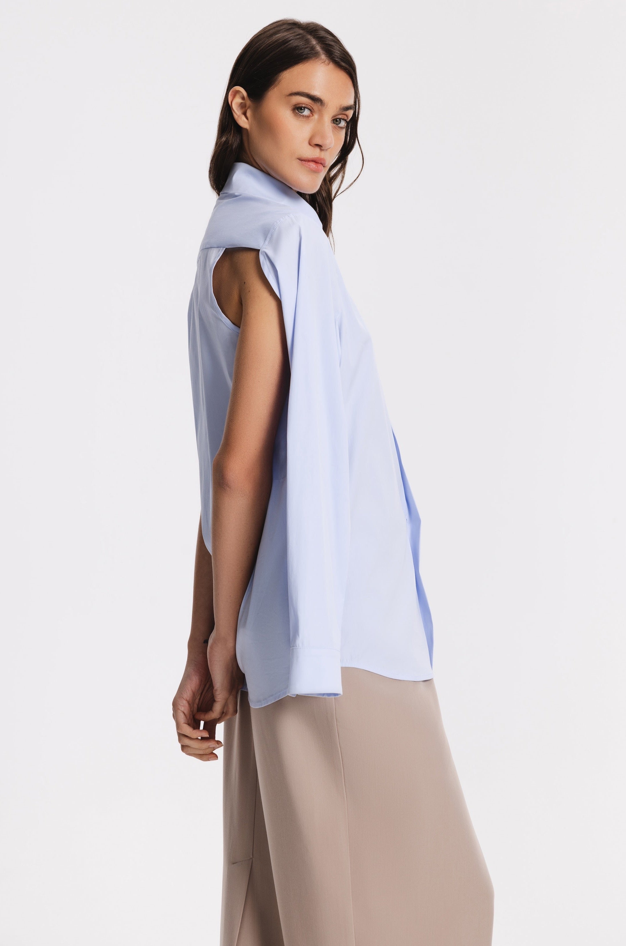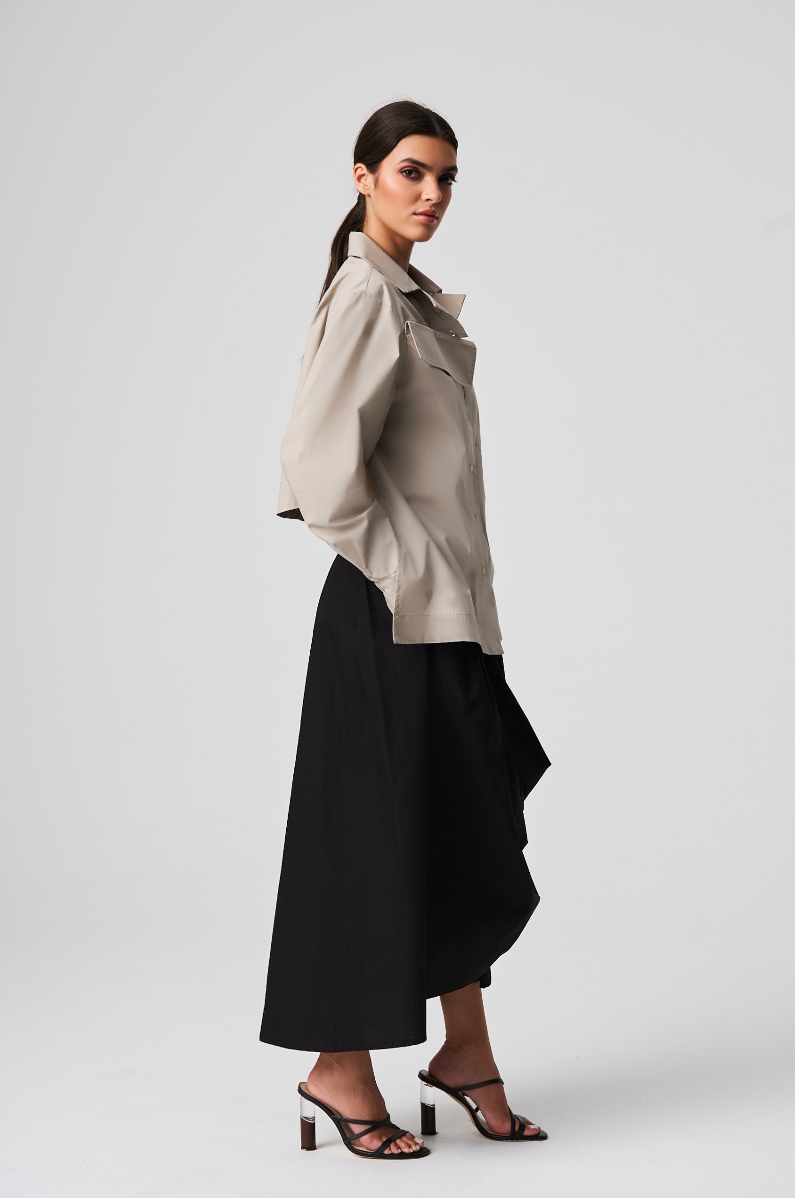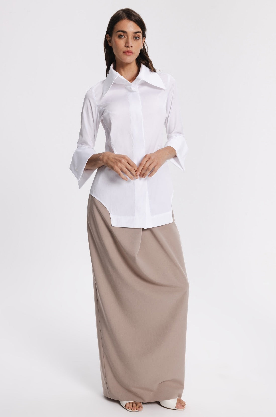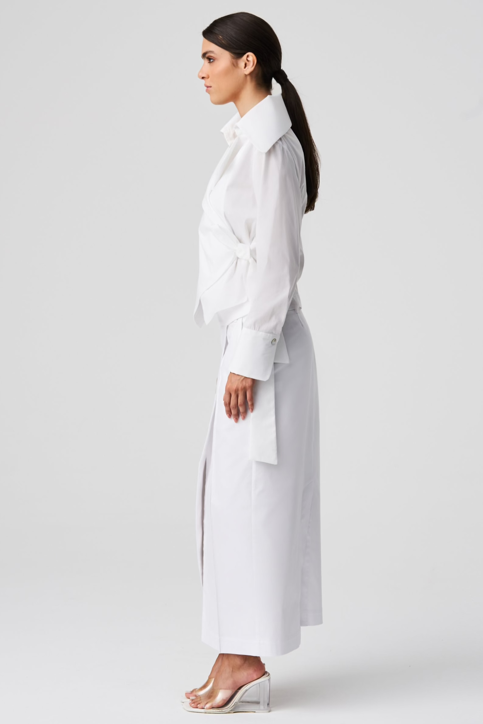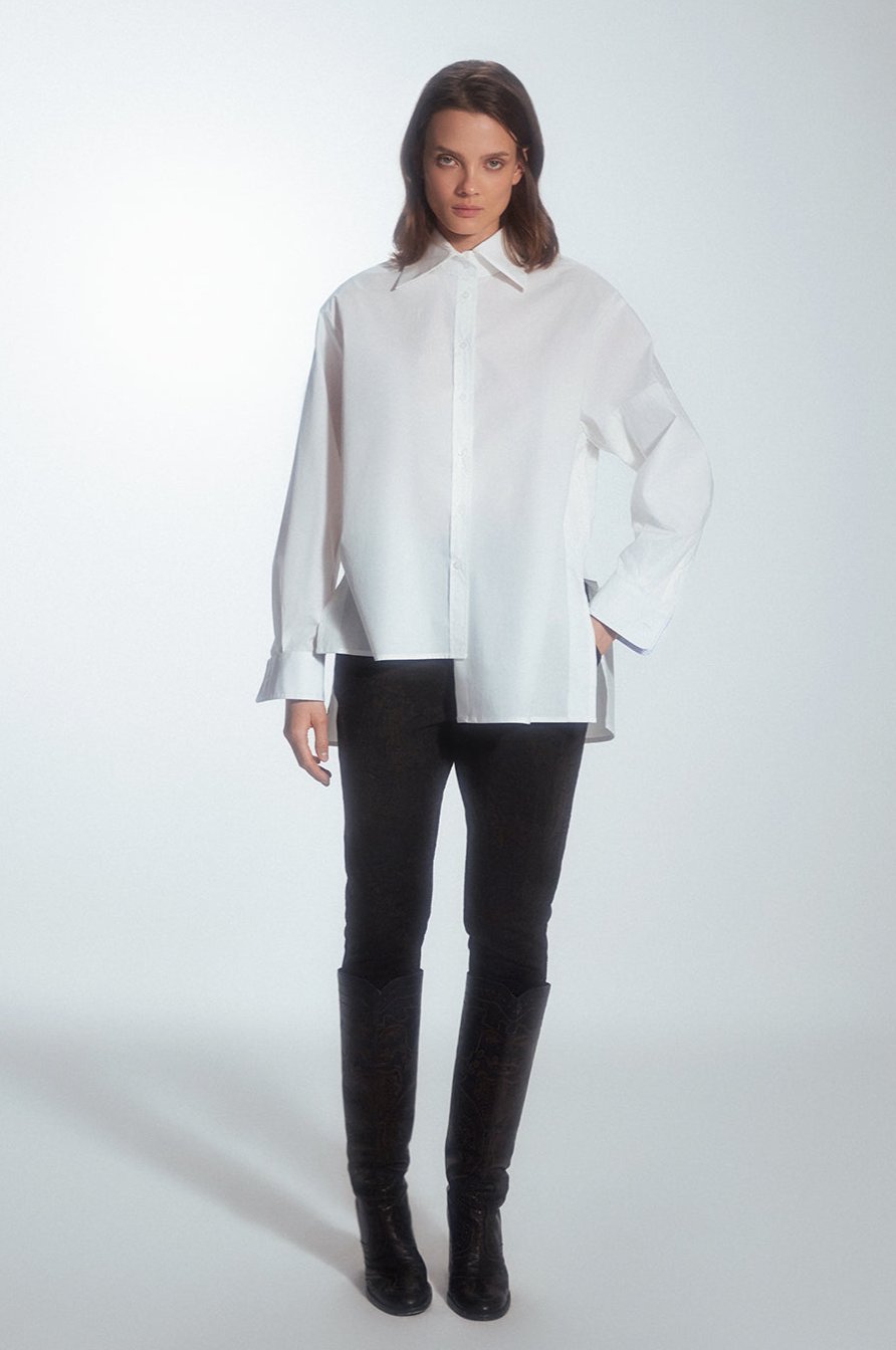 Crafted with impeccable precision, this shirts transforms simplicity into an art form, featuring avant-garde silhouettes that redefine elegance. Its crisp lines, luxurious fabric, and innovative tailoring make it a timeless statement, perfect for the modern women who embraces both versatility and bold style.