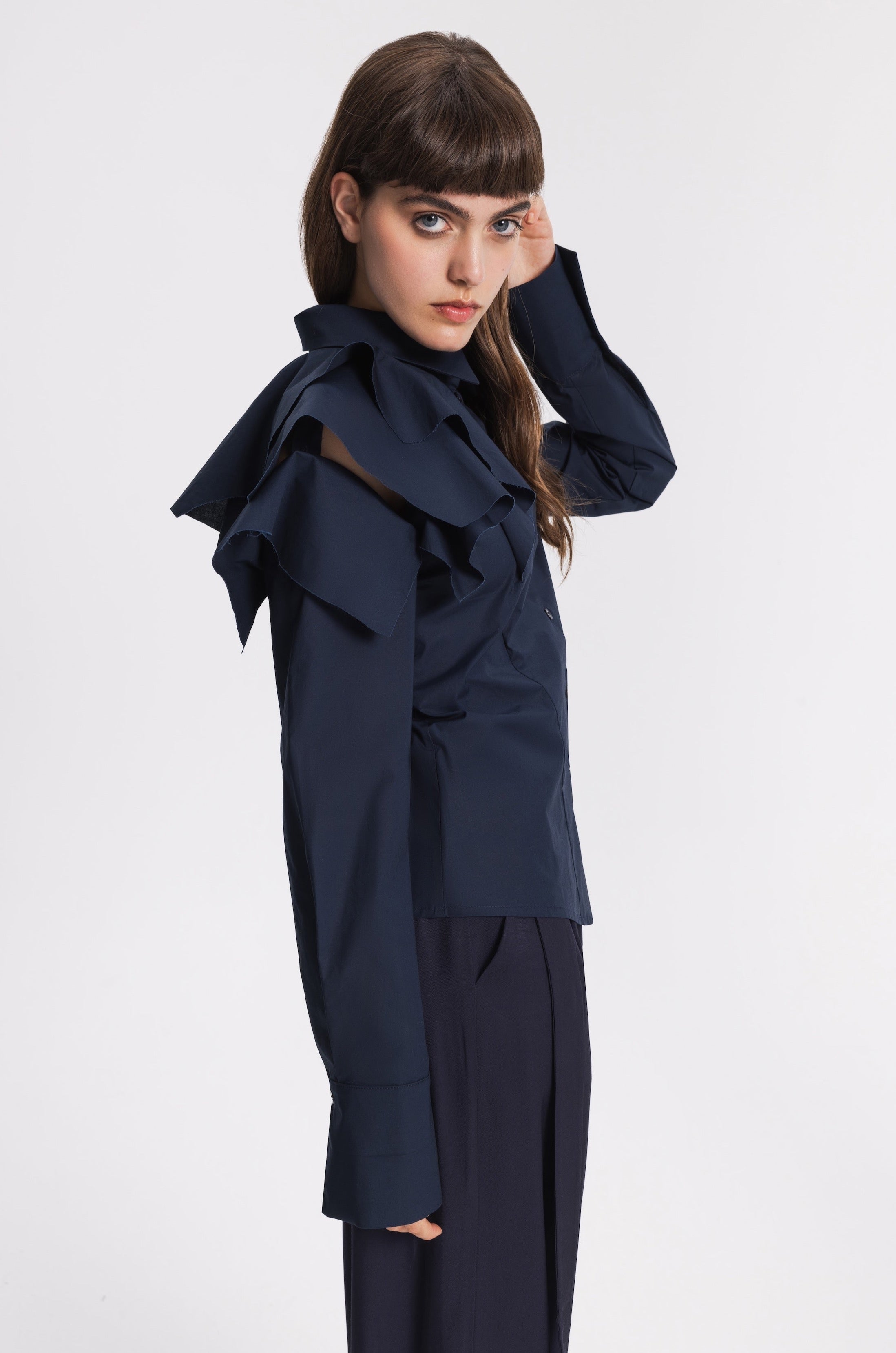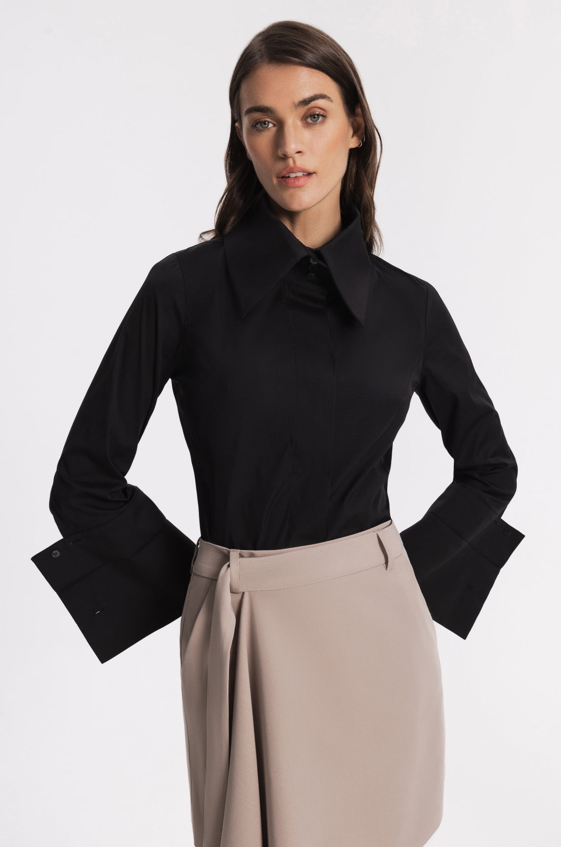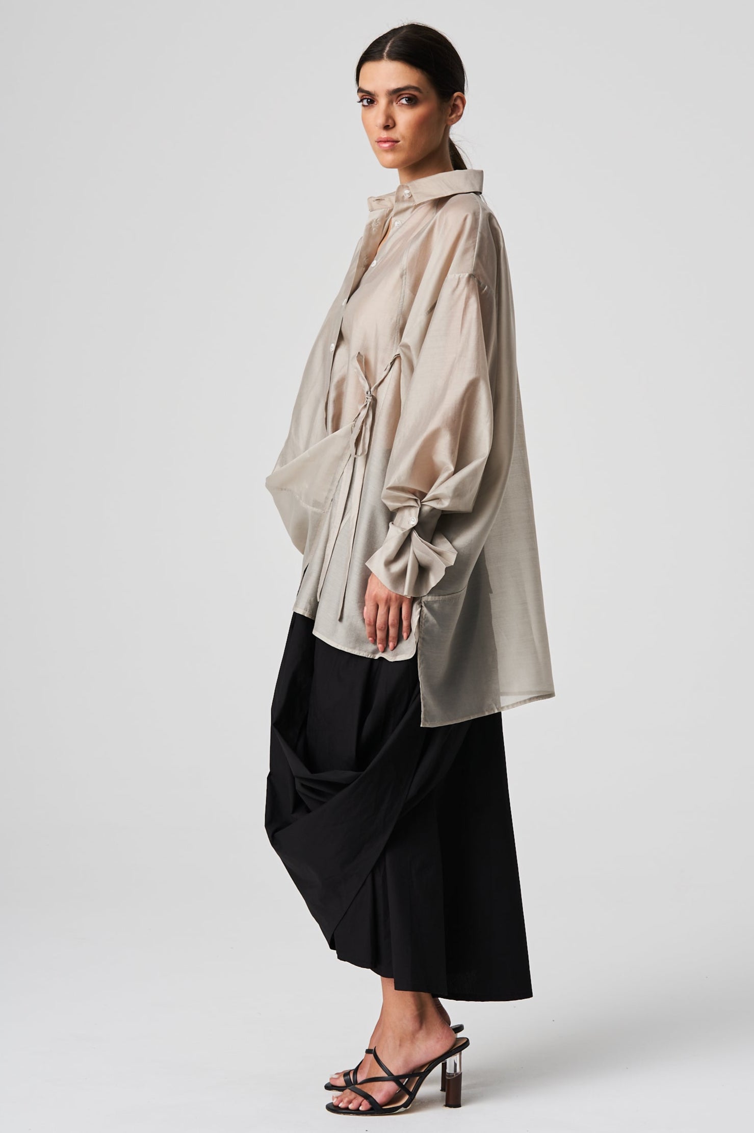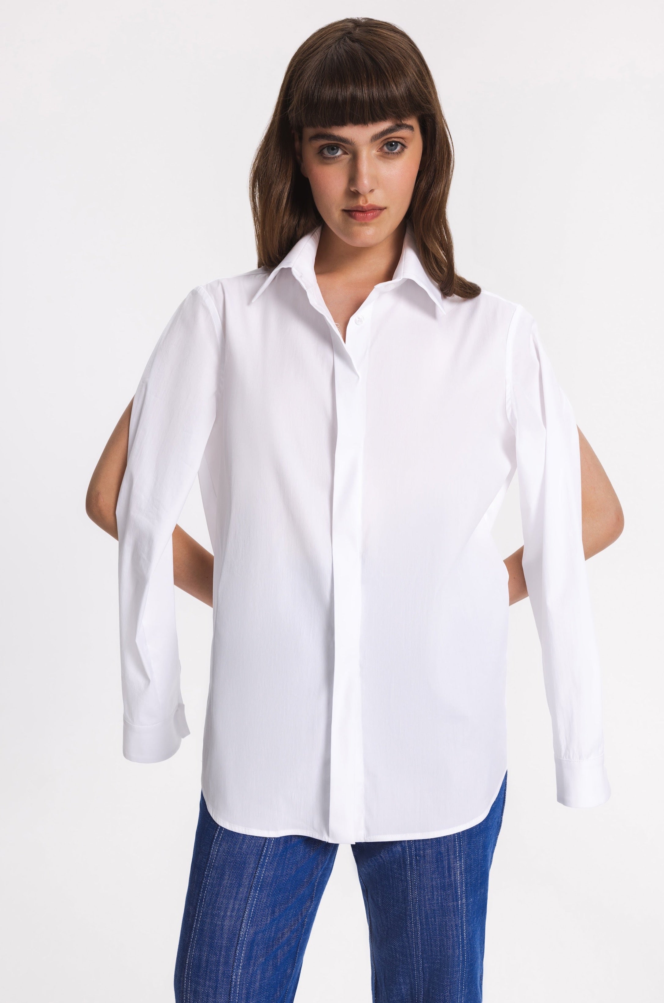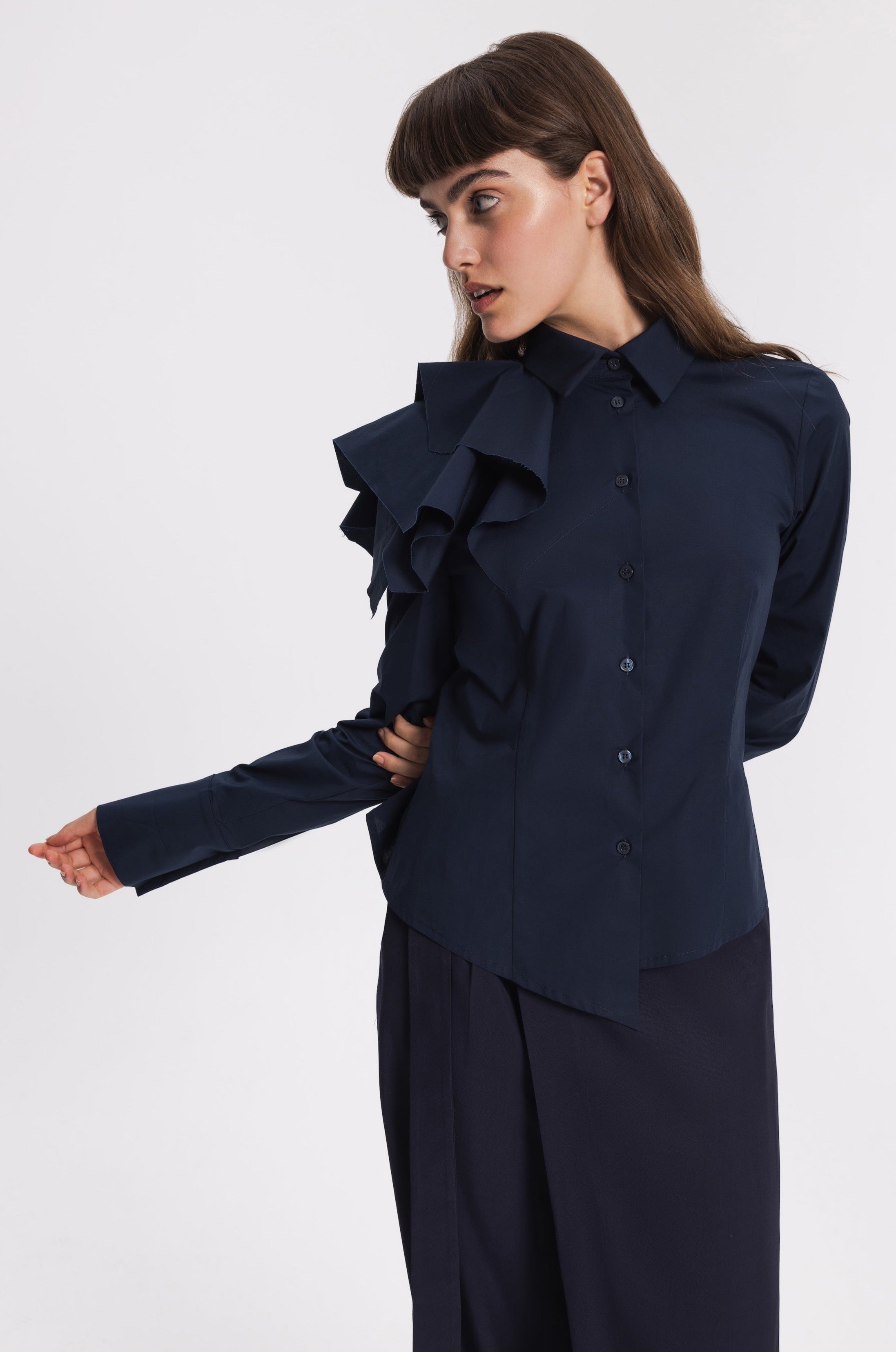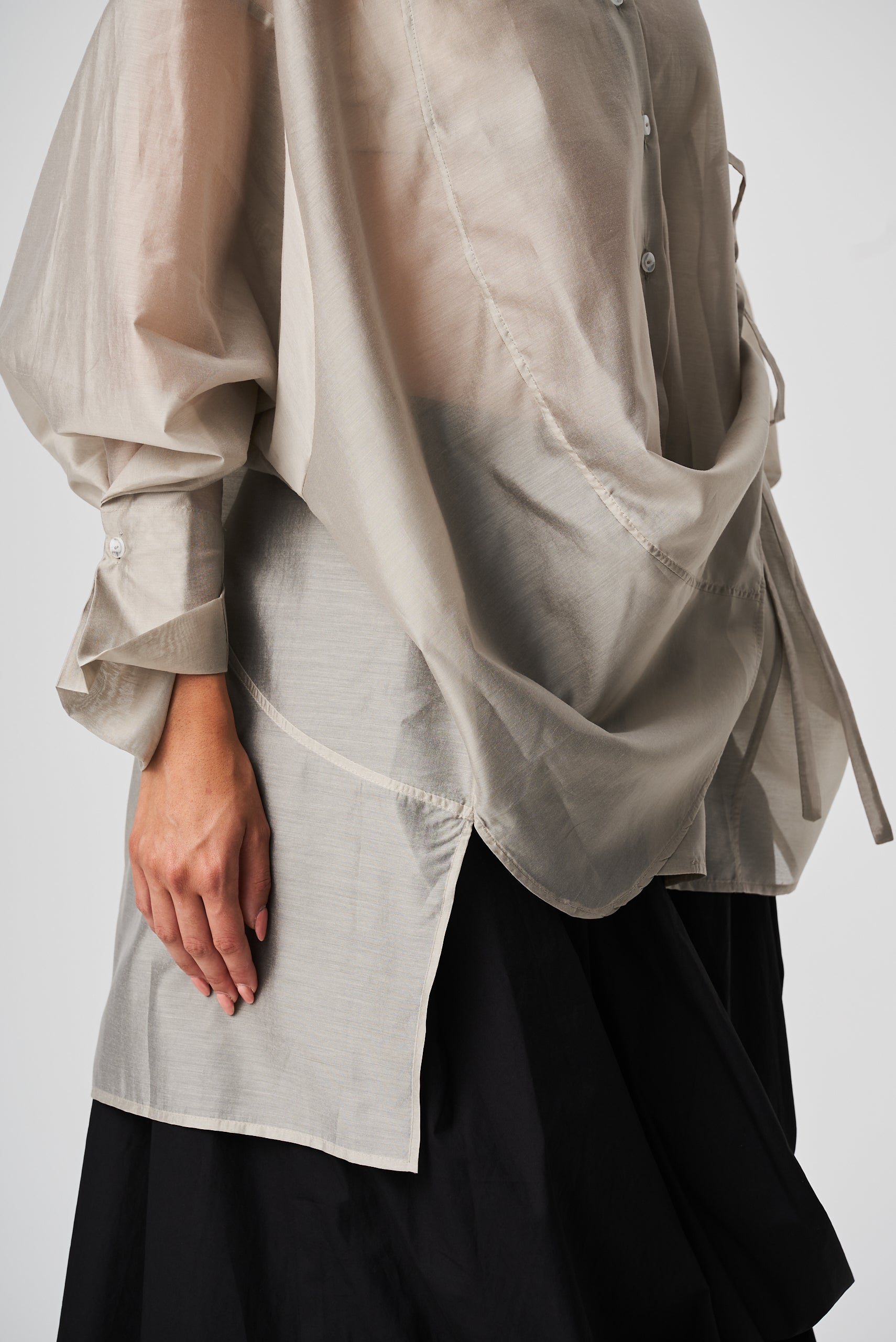 Crafted with impeccable precision, this shirts transforms simplicity into an art form, featuring avant-garde silhouettes that redefine elegance. Its crisp lines, luxurious fabric, and innovative tailoring make it a timeless statement, perfect for the modern women who embraces both versatility and bold style.