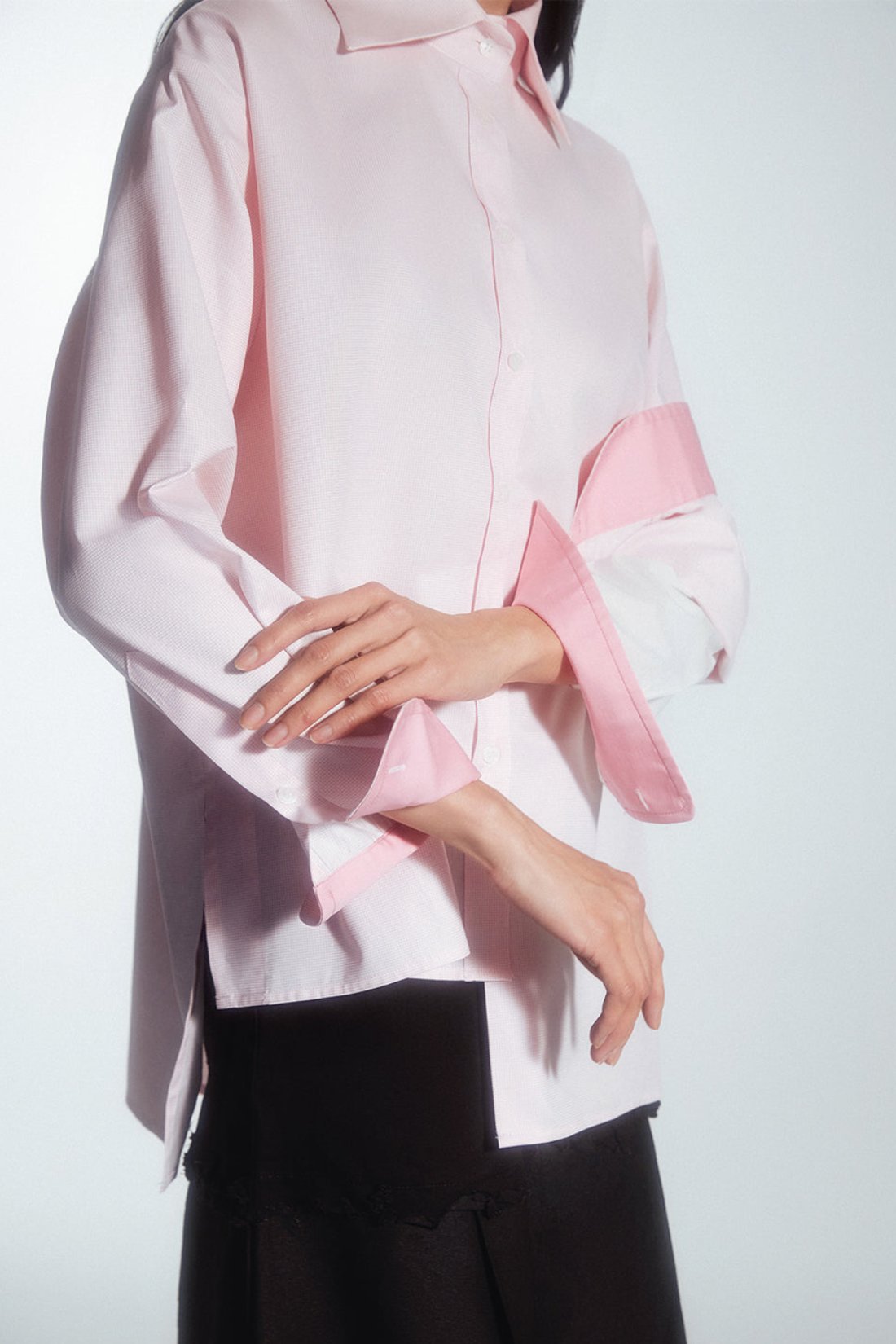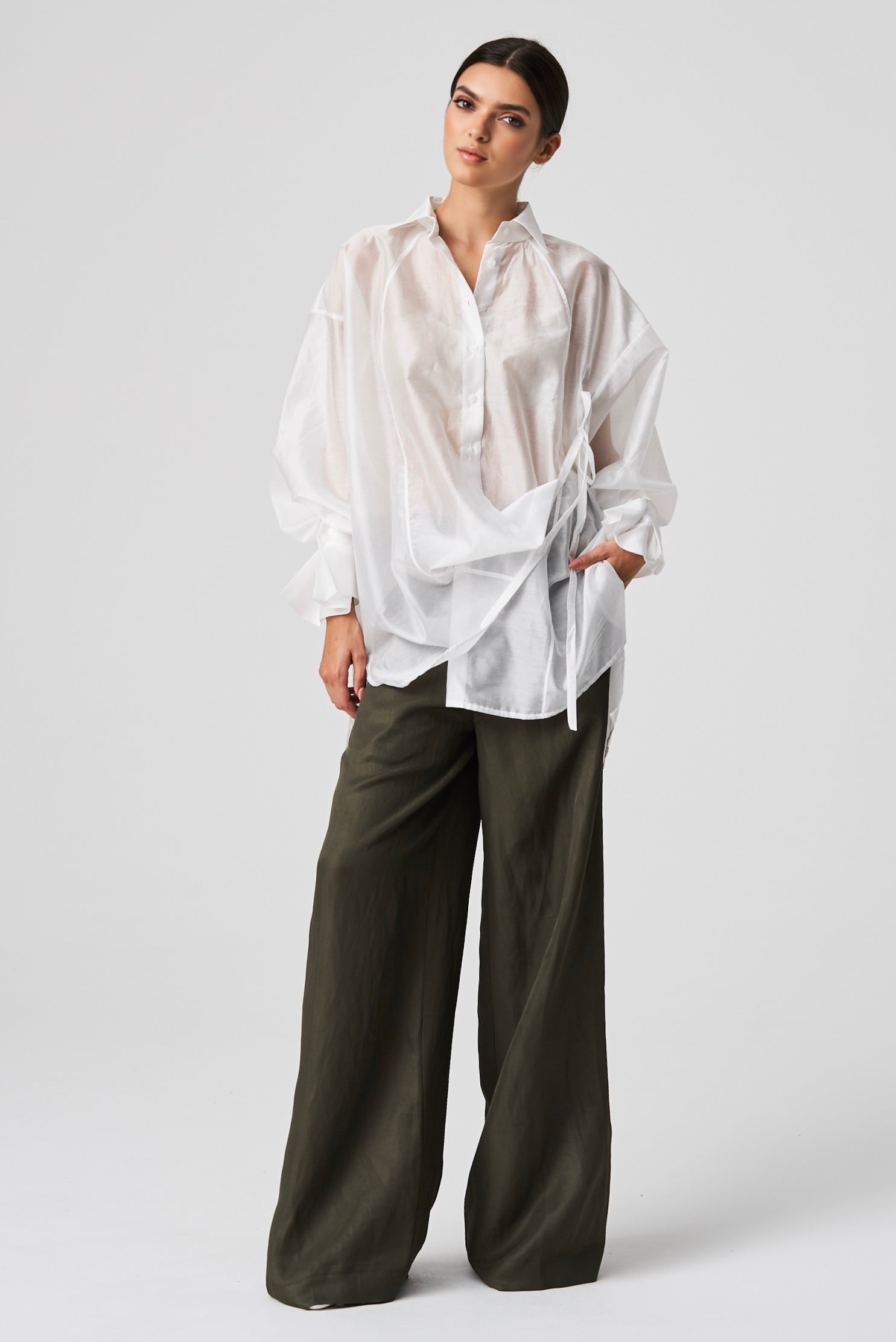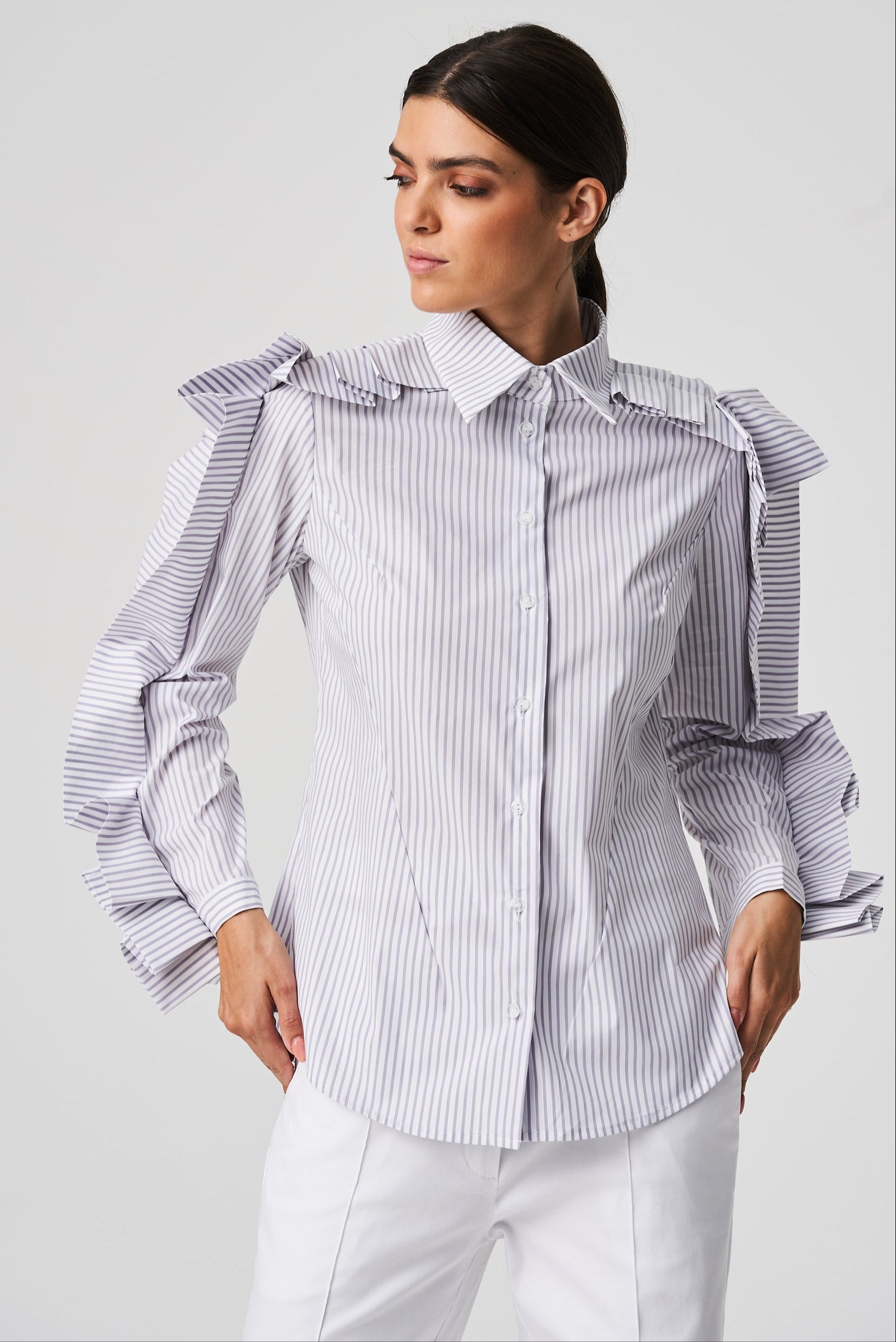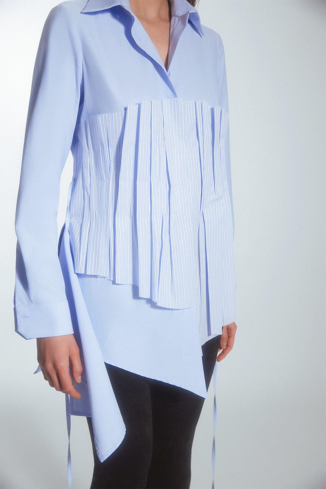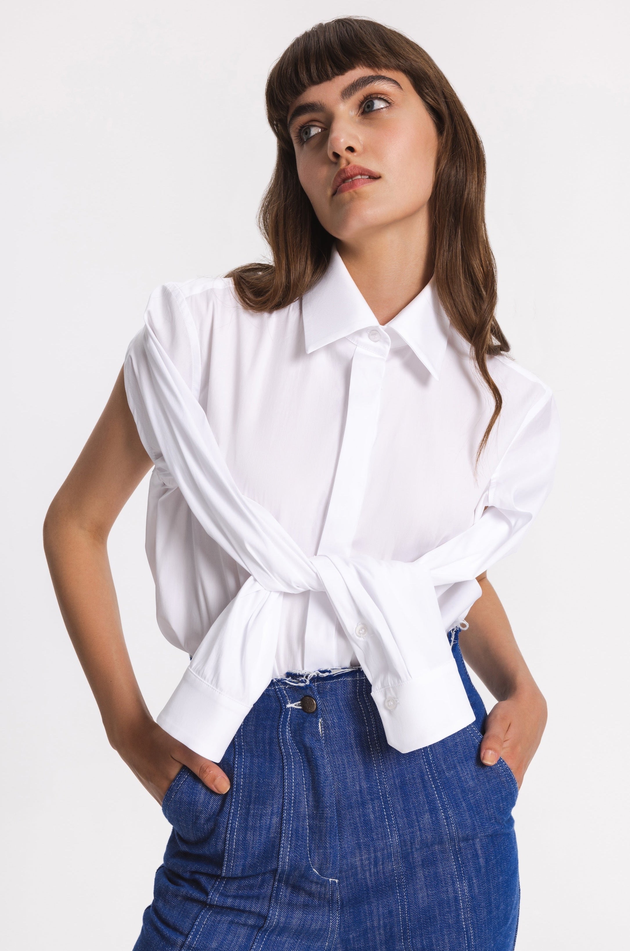 Crafted with impeccable precision, this shirts transforms simplicity into an art form, featuring avant-garde silhouettes that redefine elegance. Its crisp lines, luxurious fabric, and innovative tailoring make it a timeless statement, perfect for the modern women who embraces both versatility and bold style.