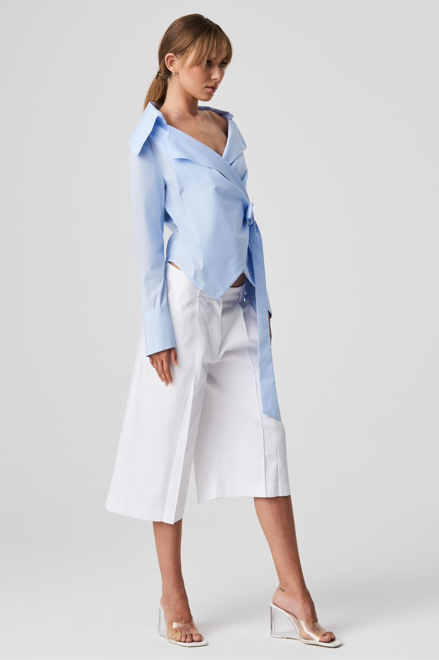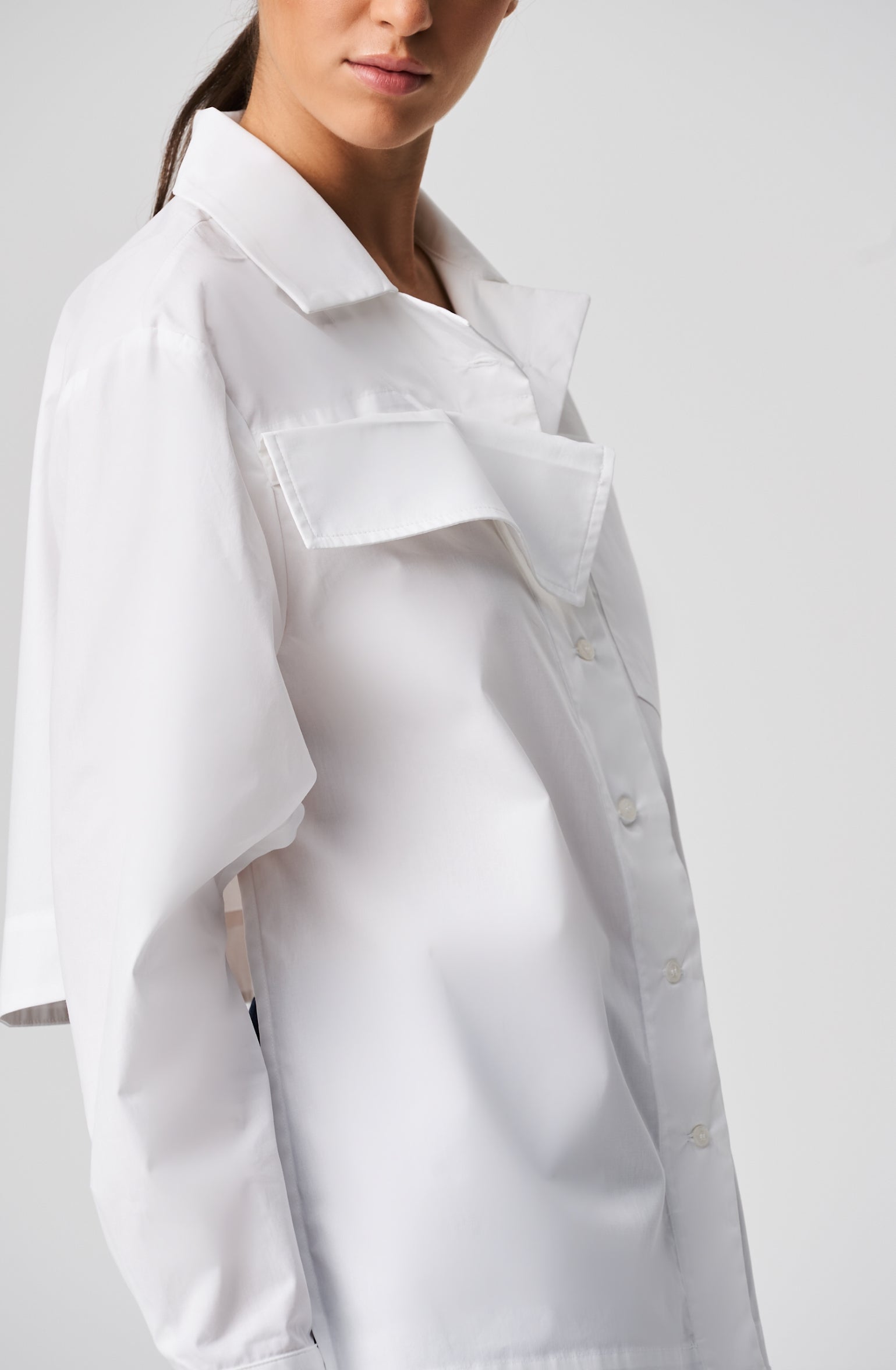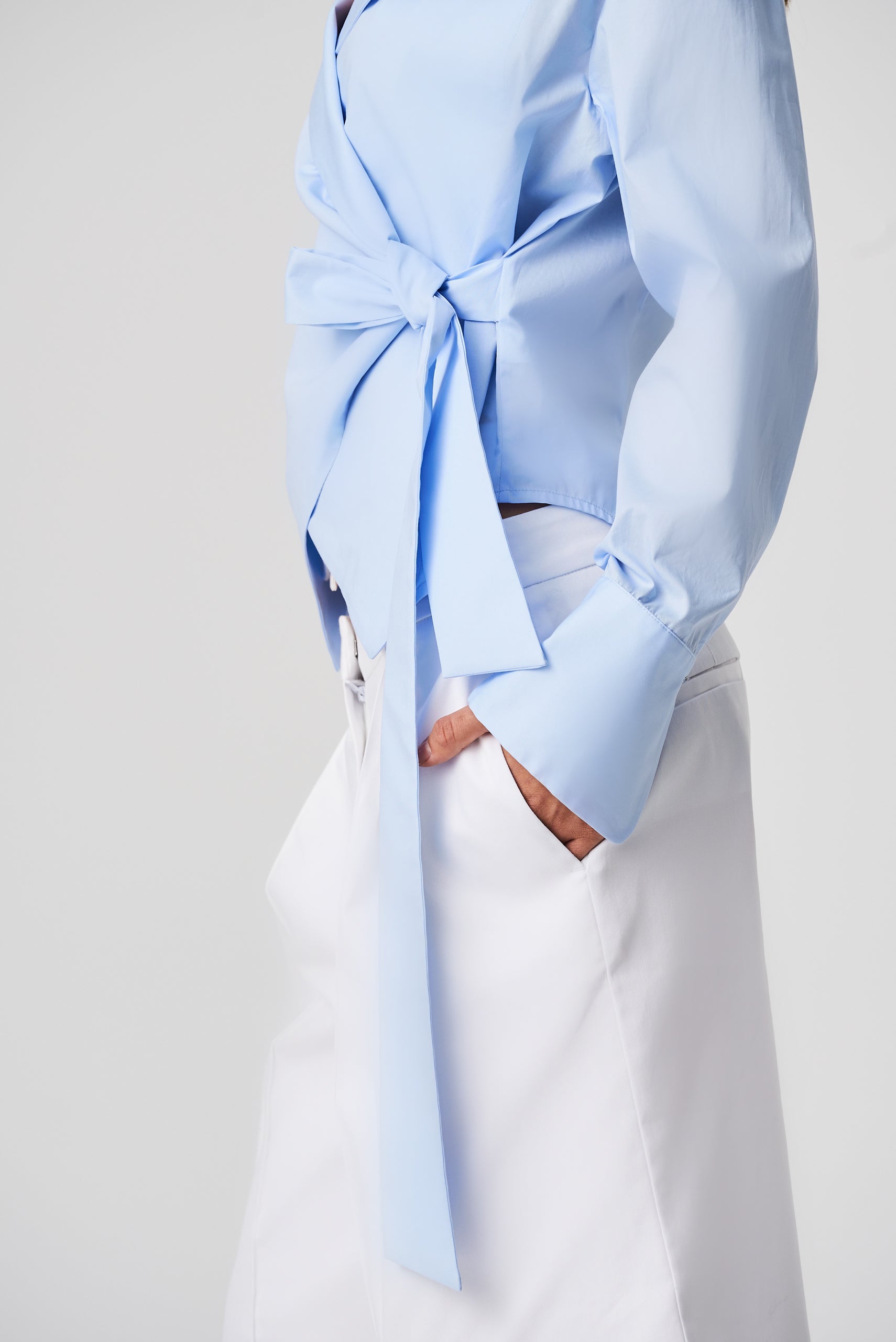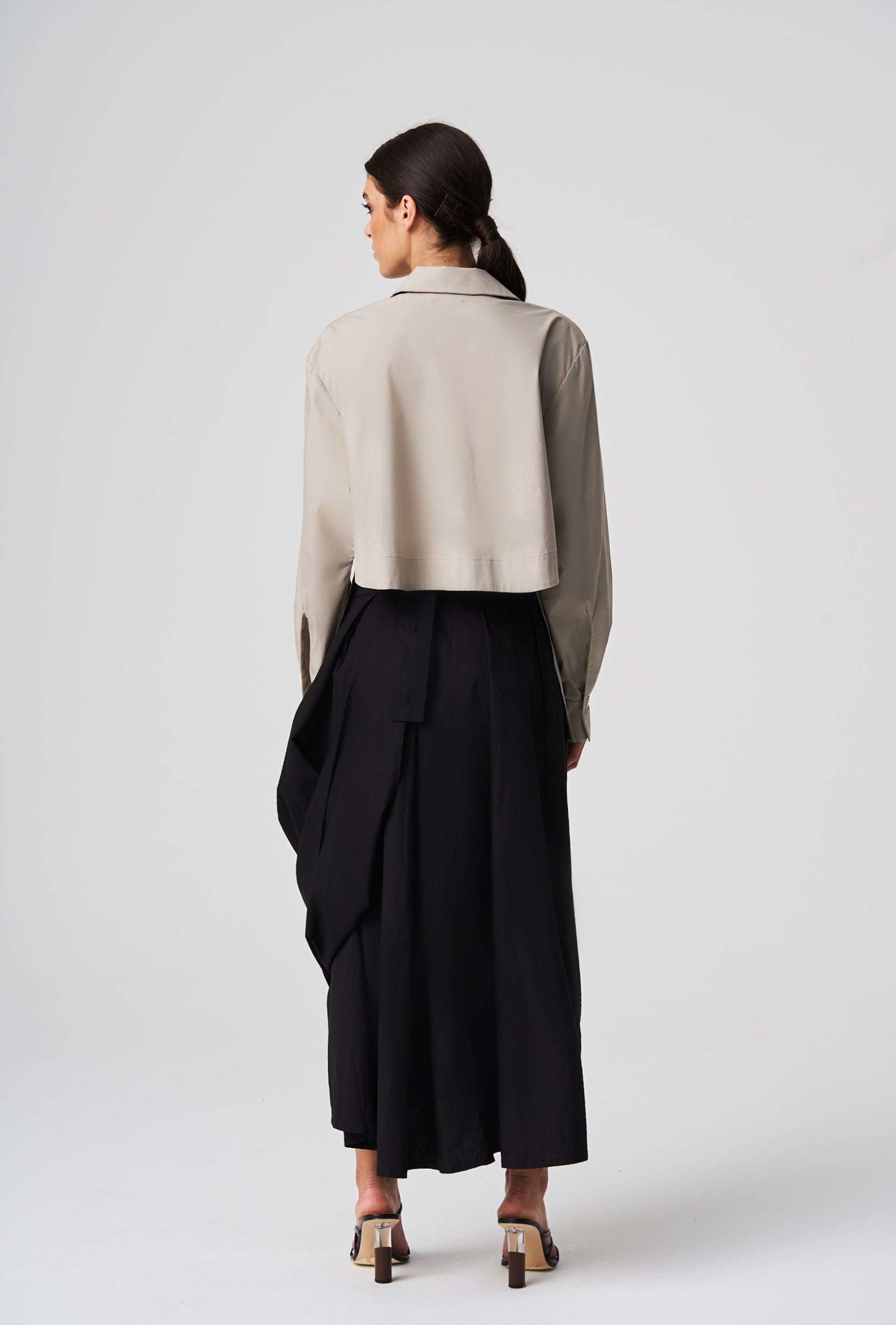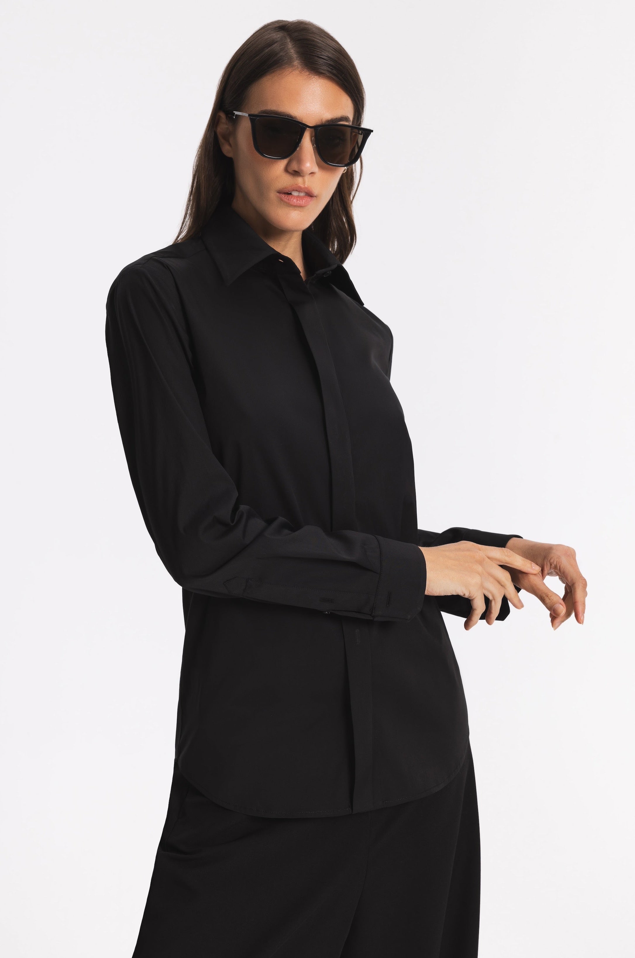 Crafted with impeccable precision, this shirts transforms simplicity into an art form, featuring avant-garde silhouettes that redefine elegance. Its crisp lines, luxurious fabric, and innovative tailoring make it a timeless statement, perfect for the modern women who embraces both versatility and bold style.