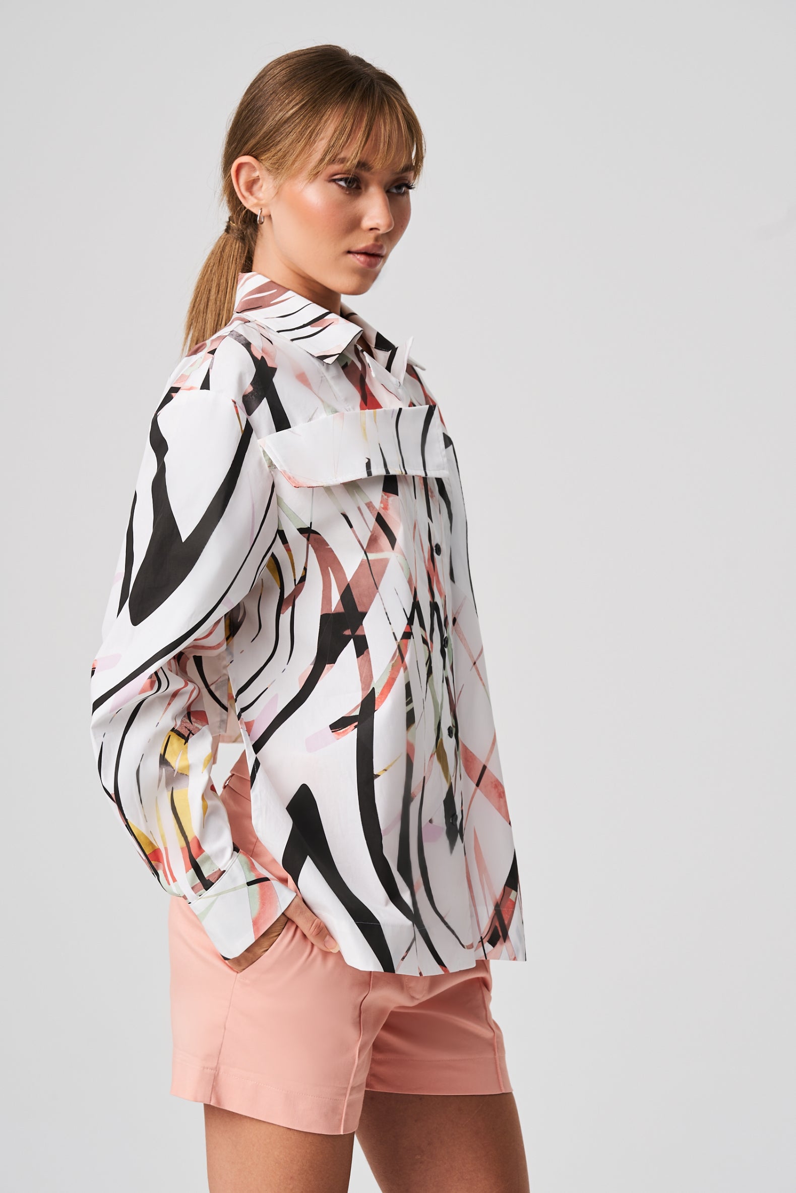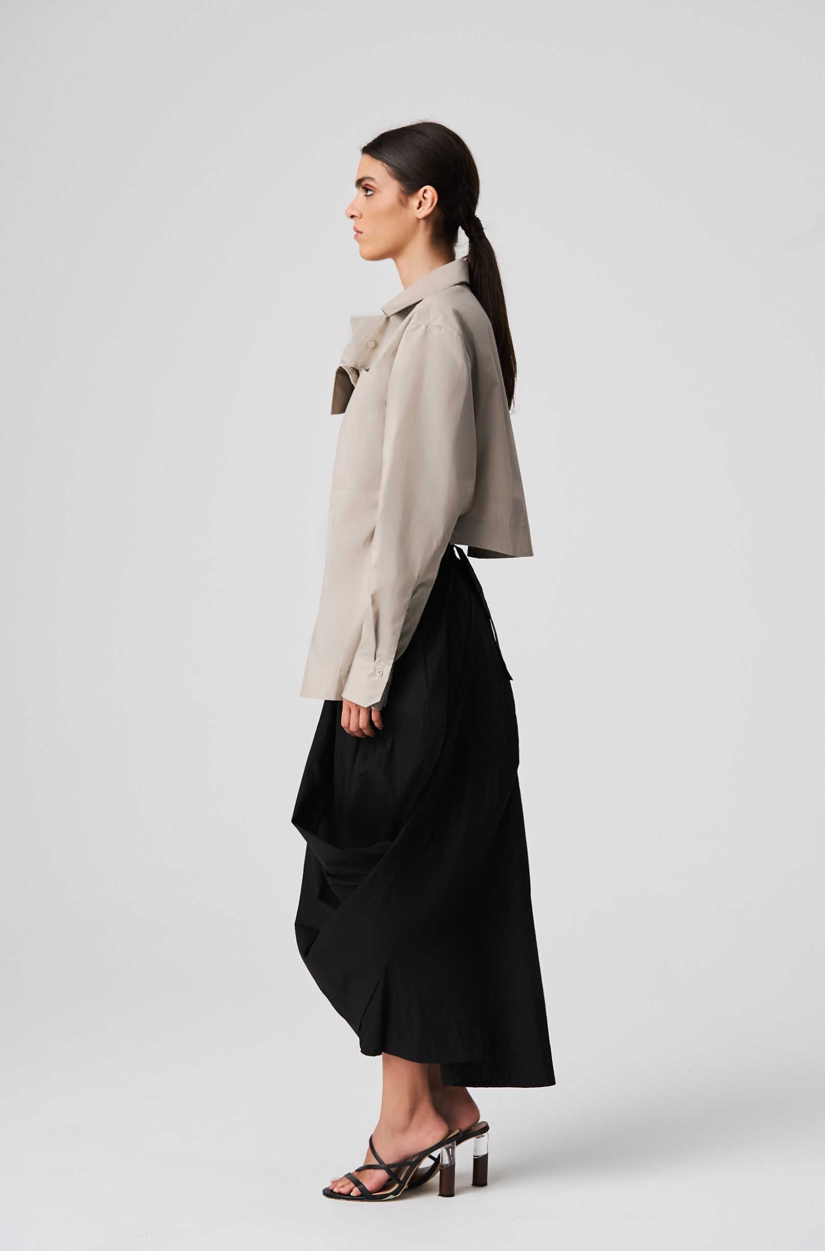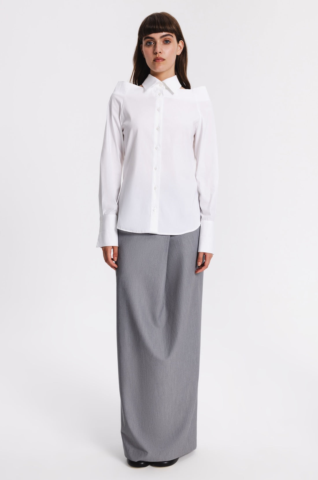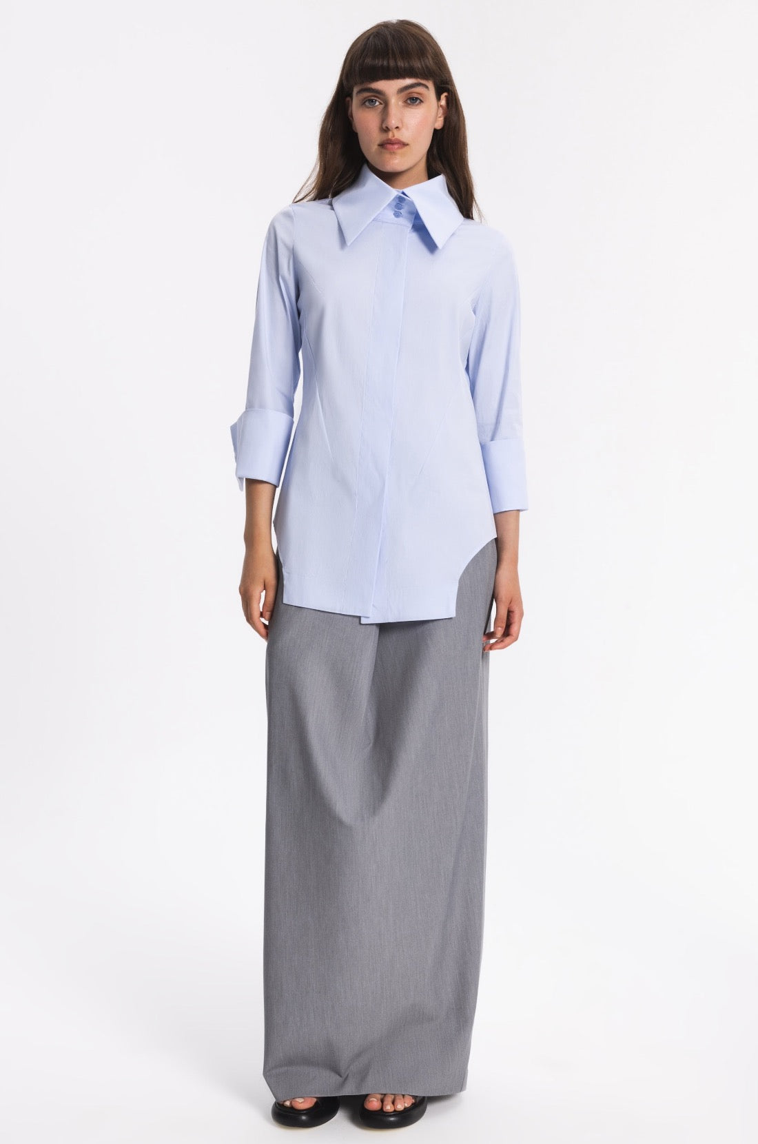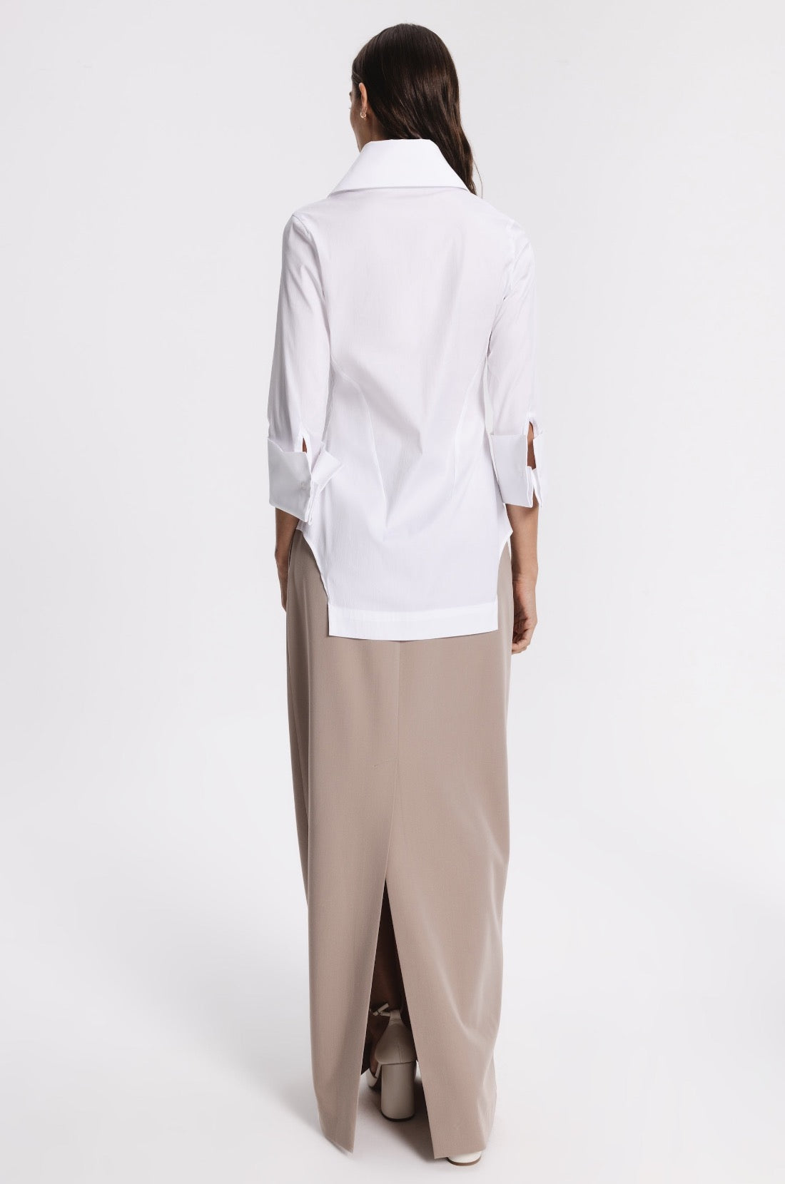 Crafted with impeccable precision, this shirts transforms simplicity into an art form, featuring avant-garde silhouettes that redefine elegance. Its crisp lines, luxurious fabric, and innovative tailoring make it a timeless statement, perfect for the modern women who embraces both versatility and bold style.