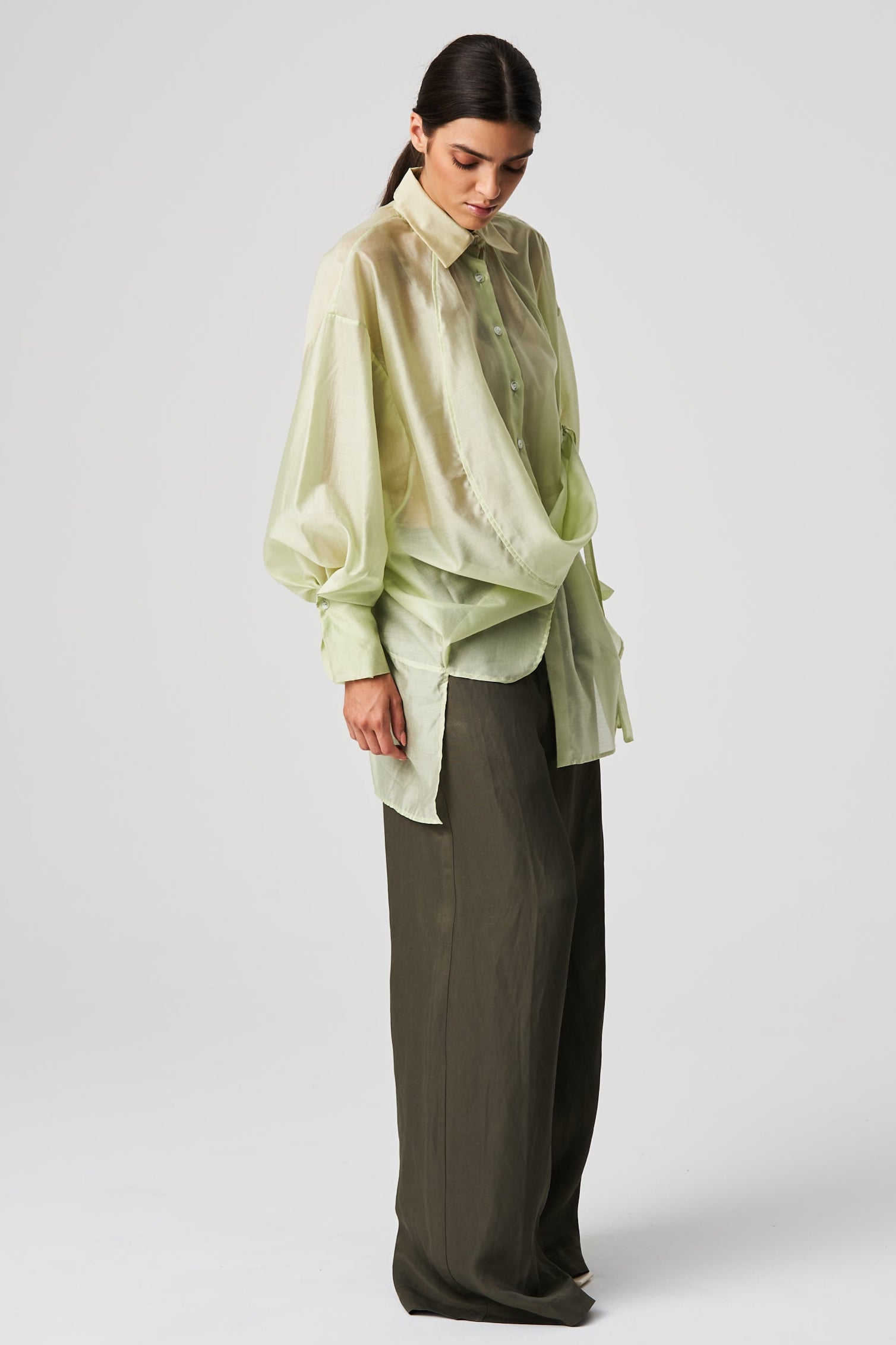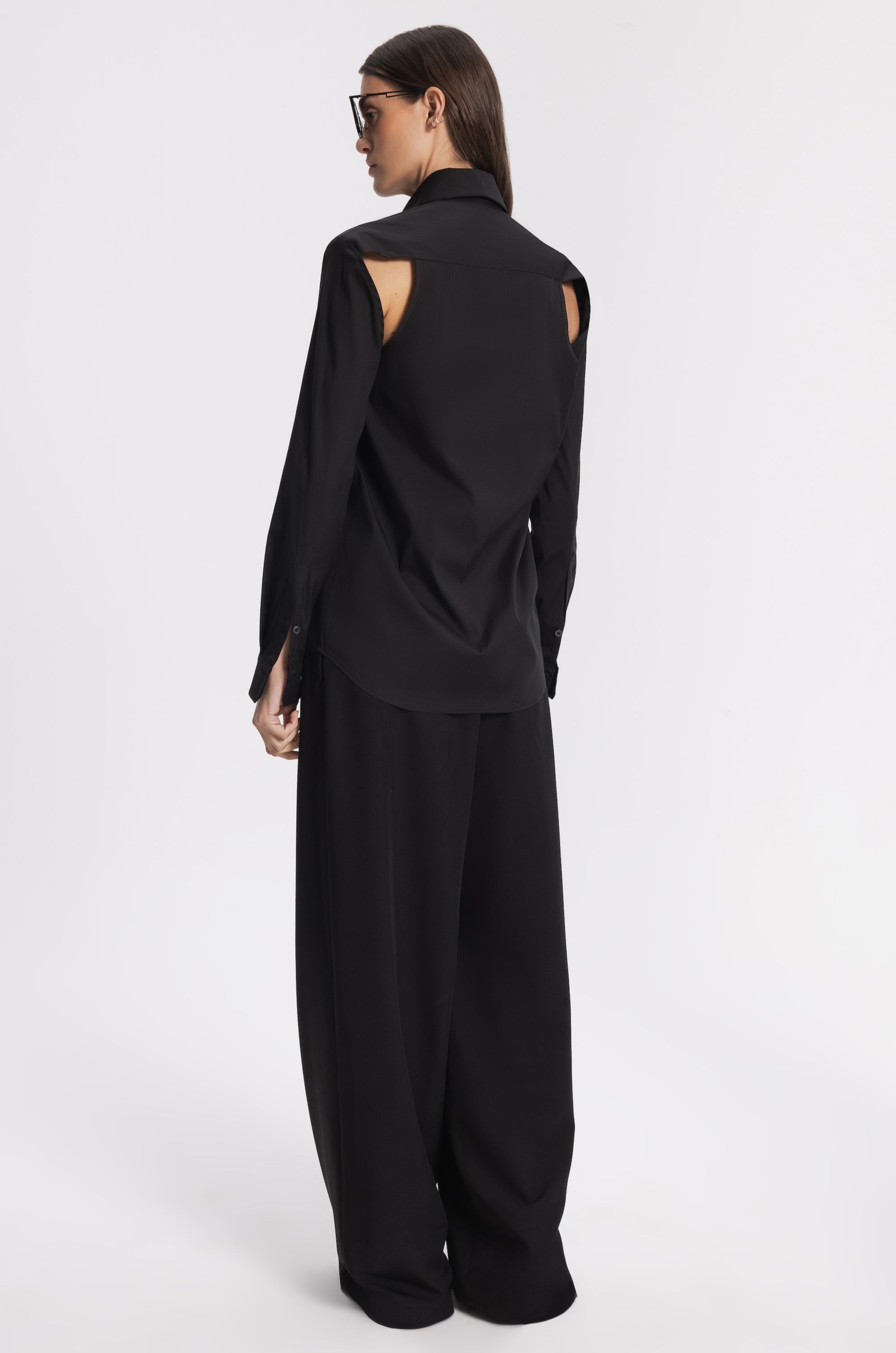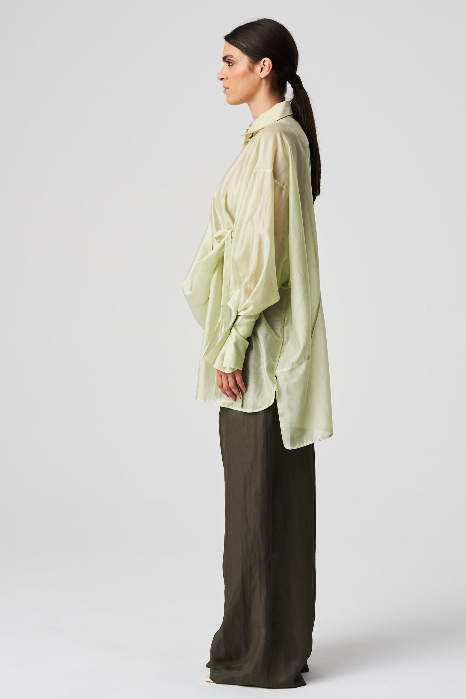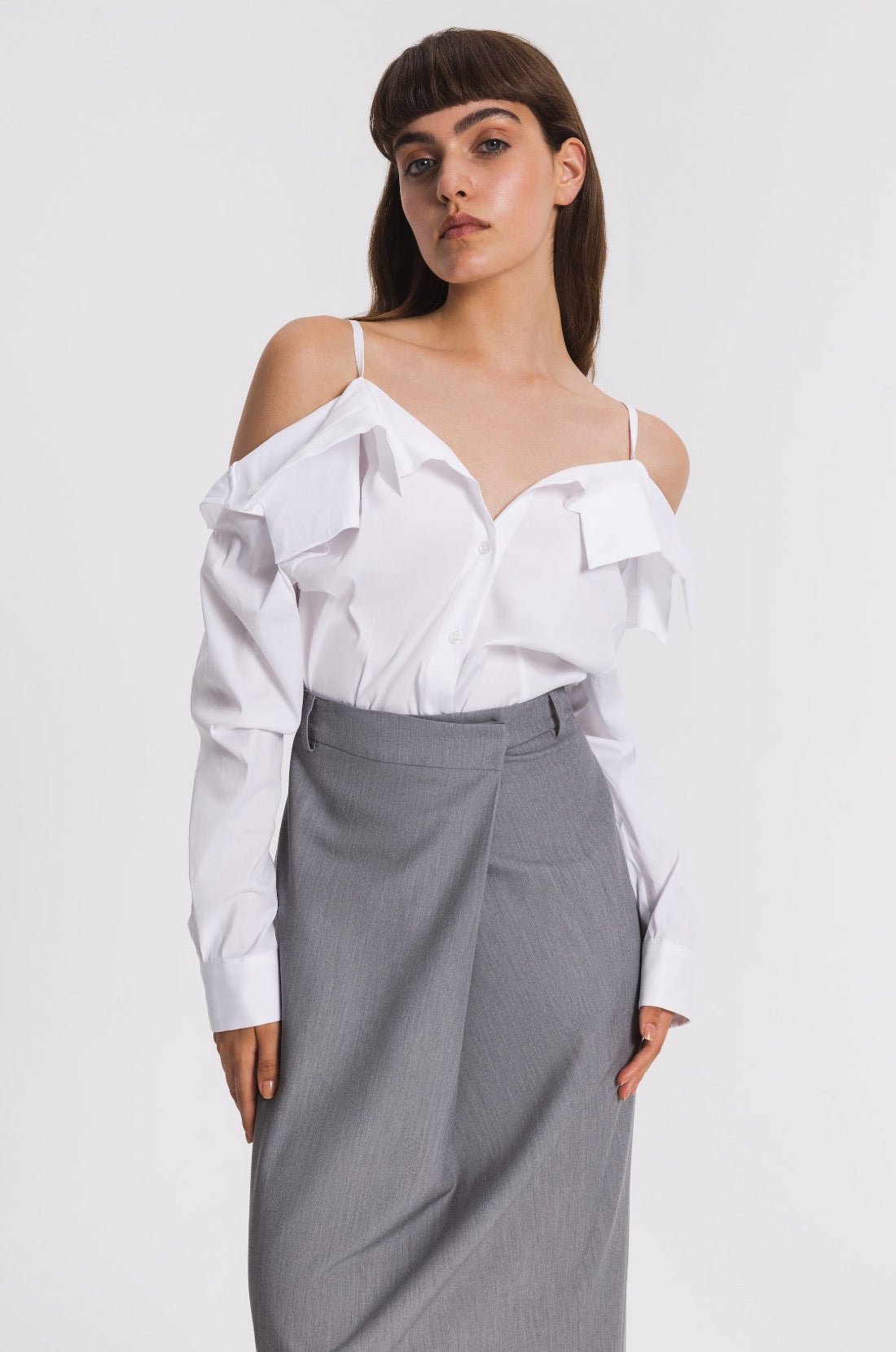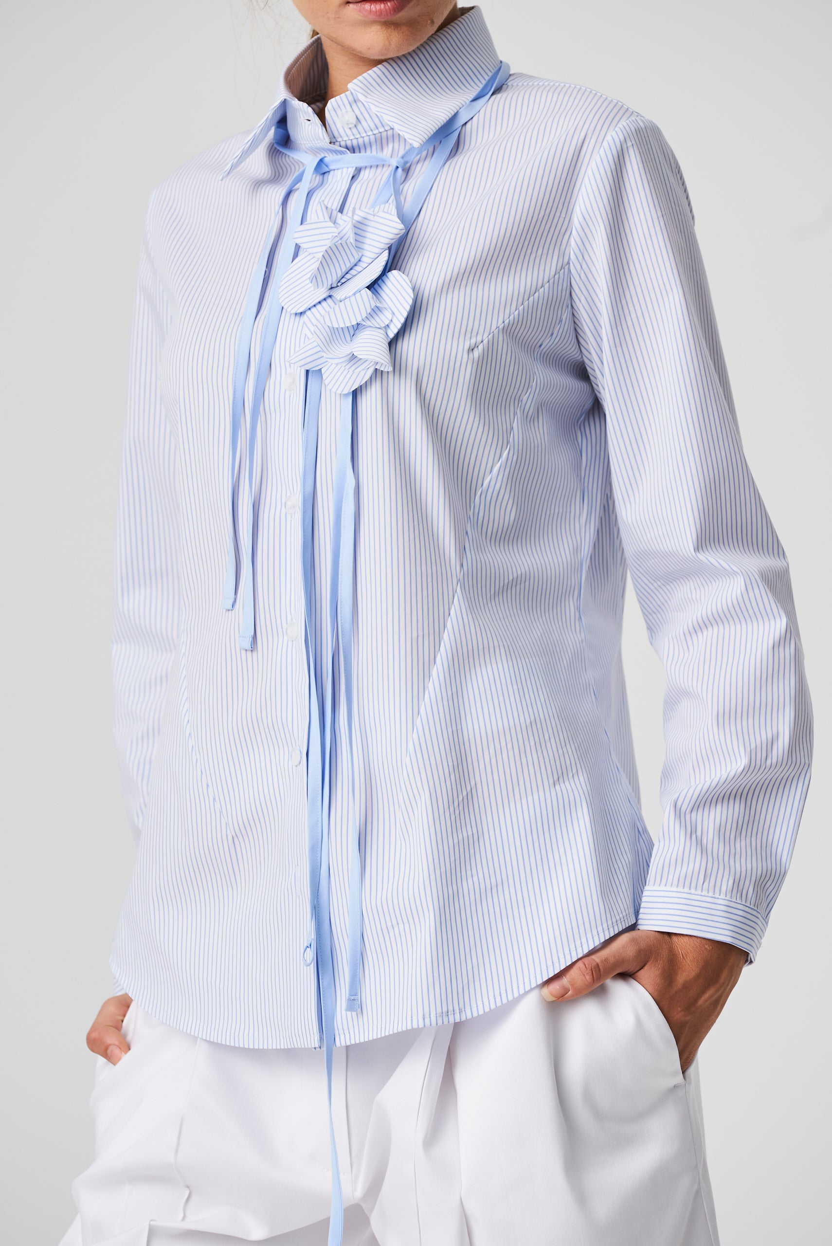 Crafted with impeccable precision, this shirts transforms simplicity into an art form, featuring avant-garde silhouettes that redefine elegance. Its crisp lines, luxurious fabric, and innovative tailoring make it a timeless statement, perfect for the modern women who embraces both versatility and bold style.