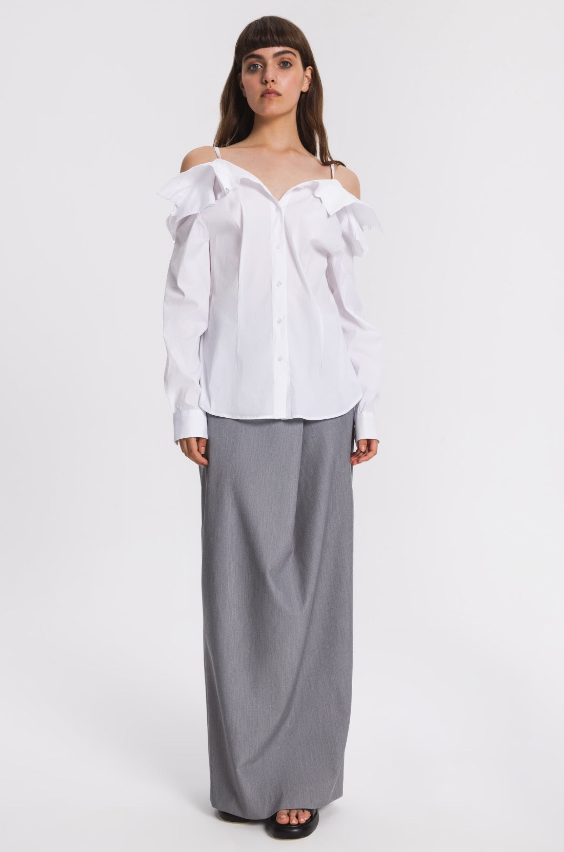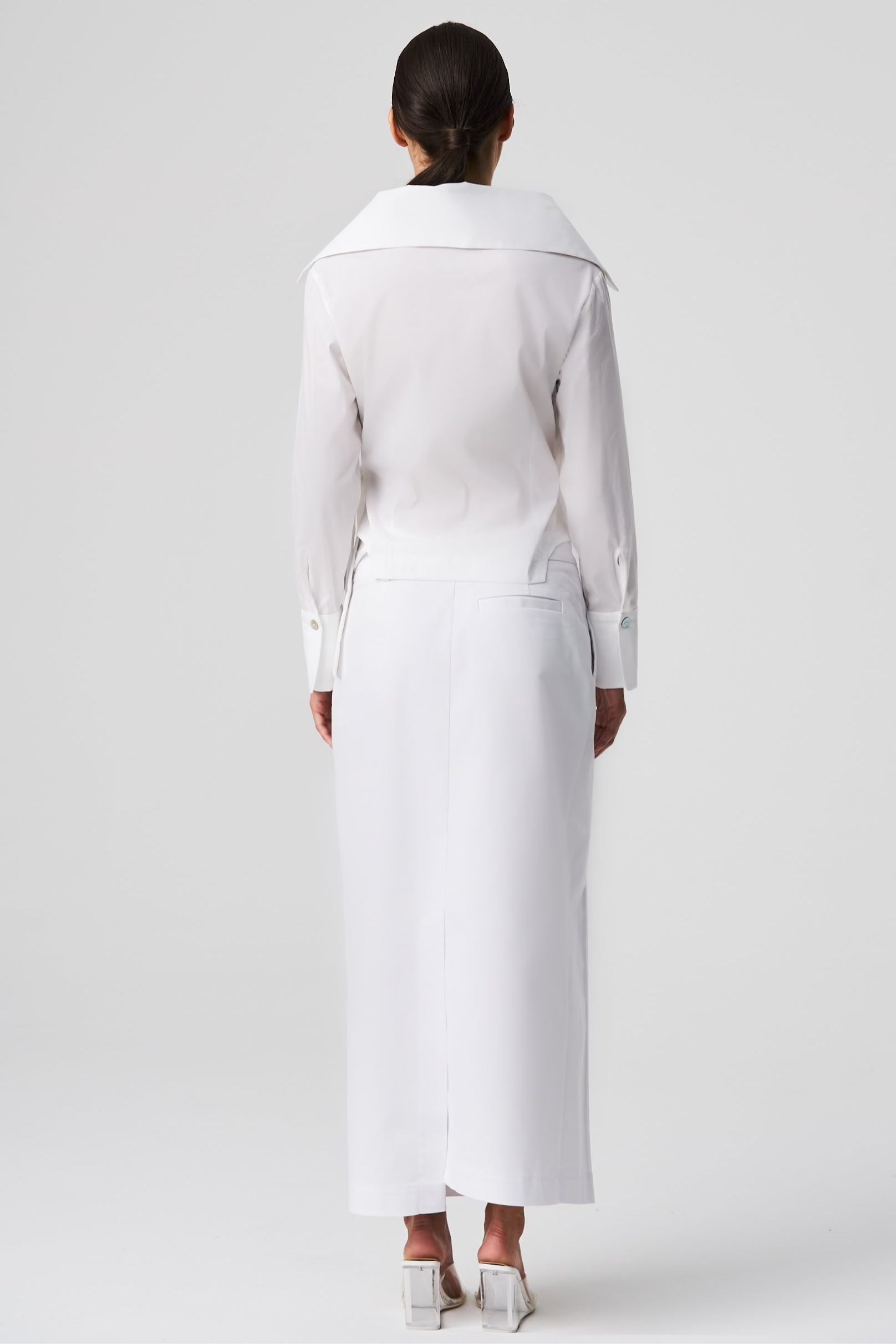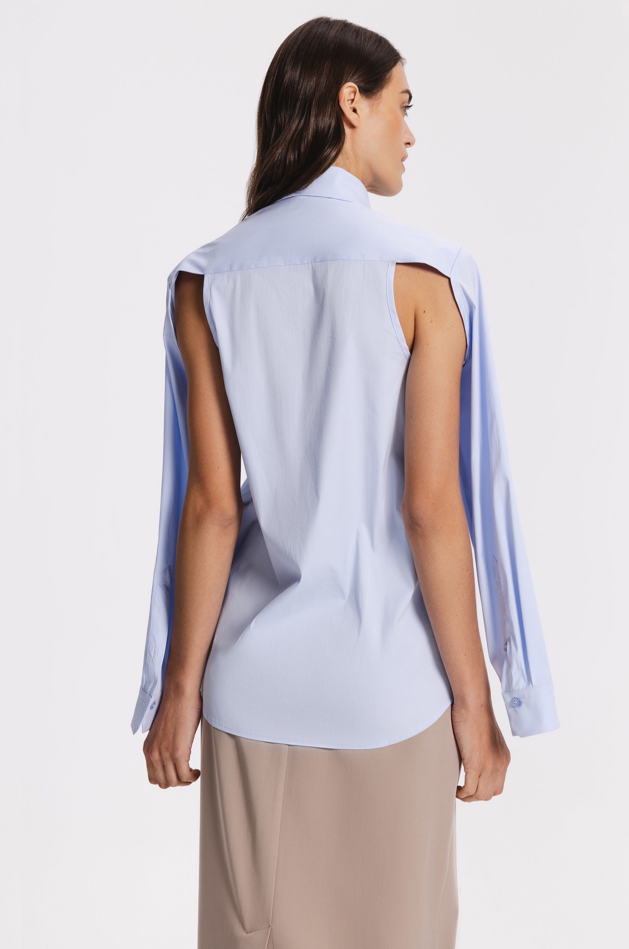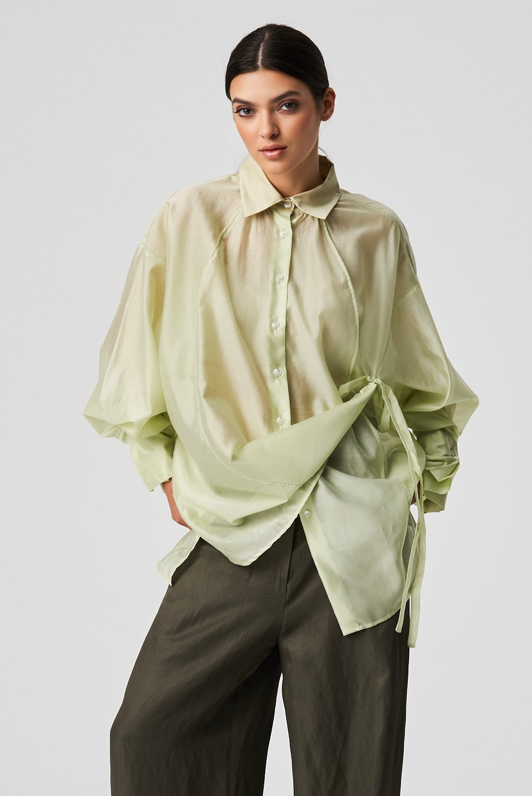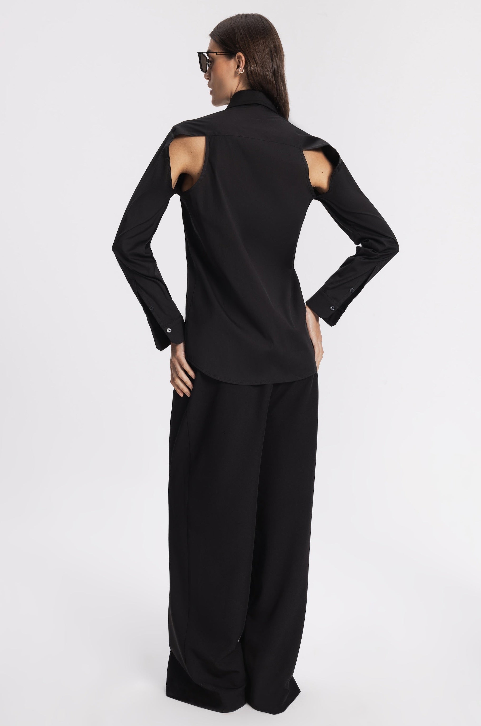 Crafted with impeccable precision, this shirts transforms simplicity into an art form, featuring avant-garde silhouettes that redefine elegance. Its crisp lines, luxurious fabric, and innovative tailoring make it a timeless statement, perfect for the modern women who embraces both versatility and bold style.