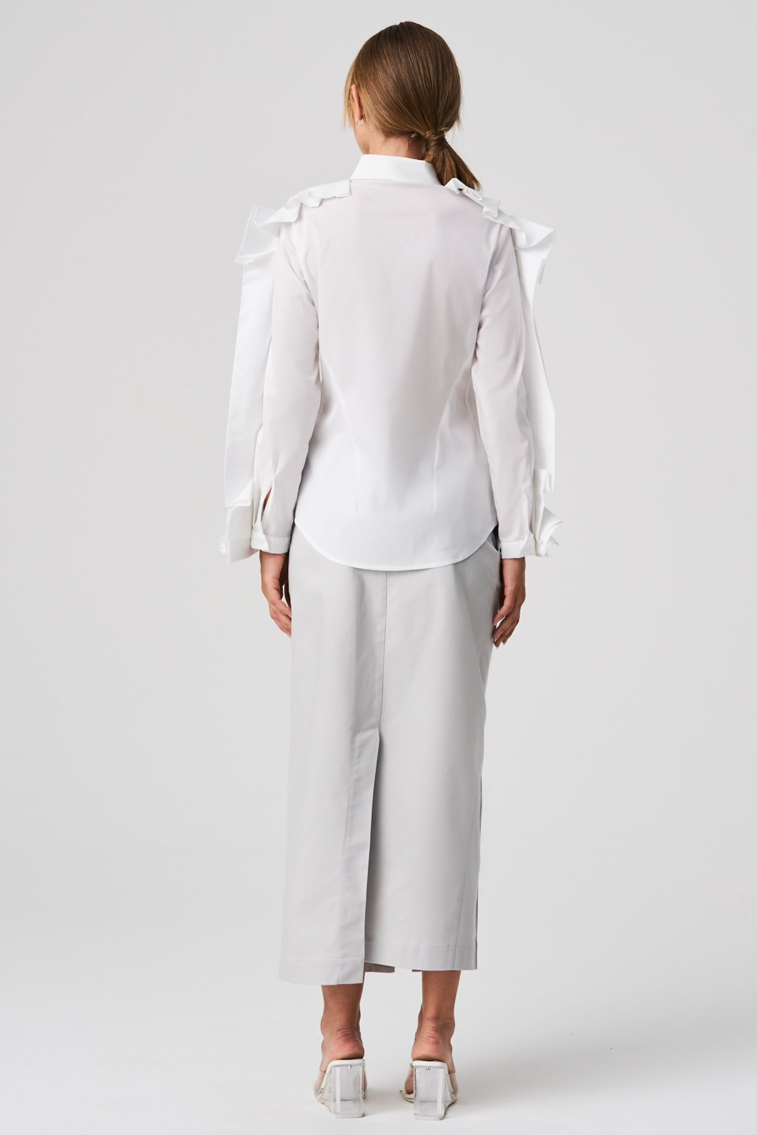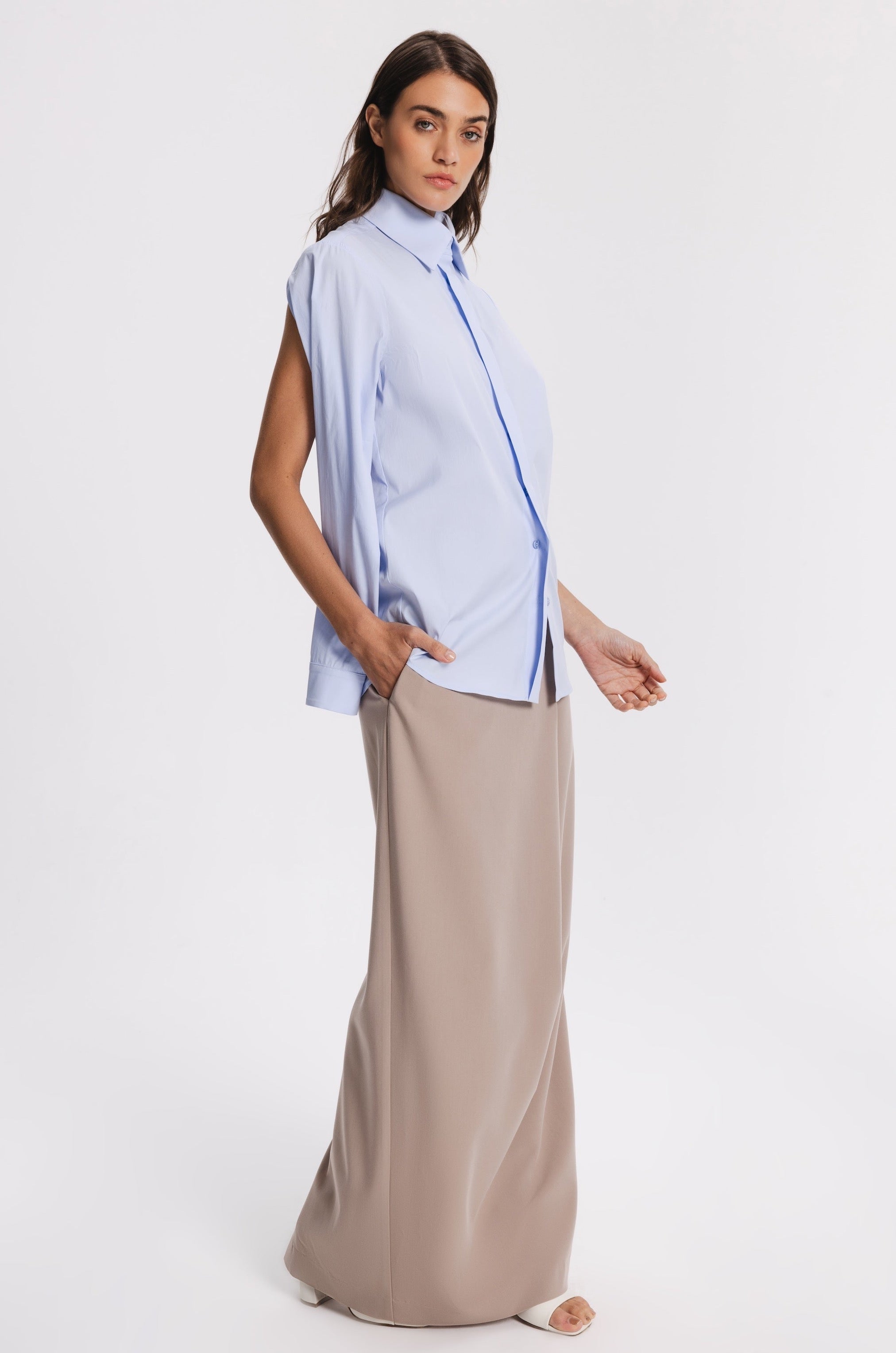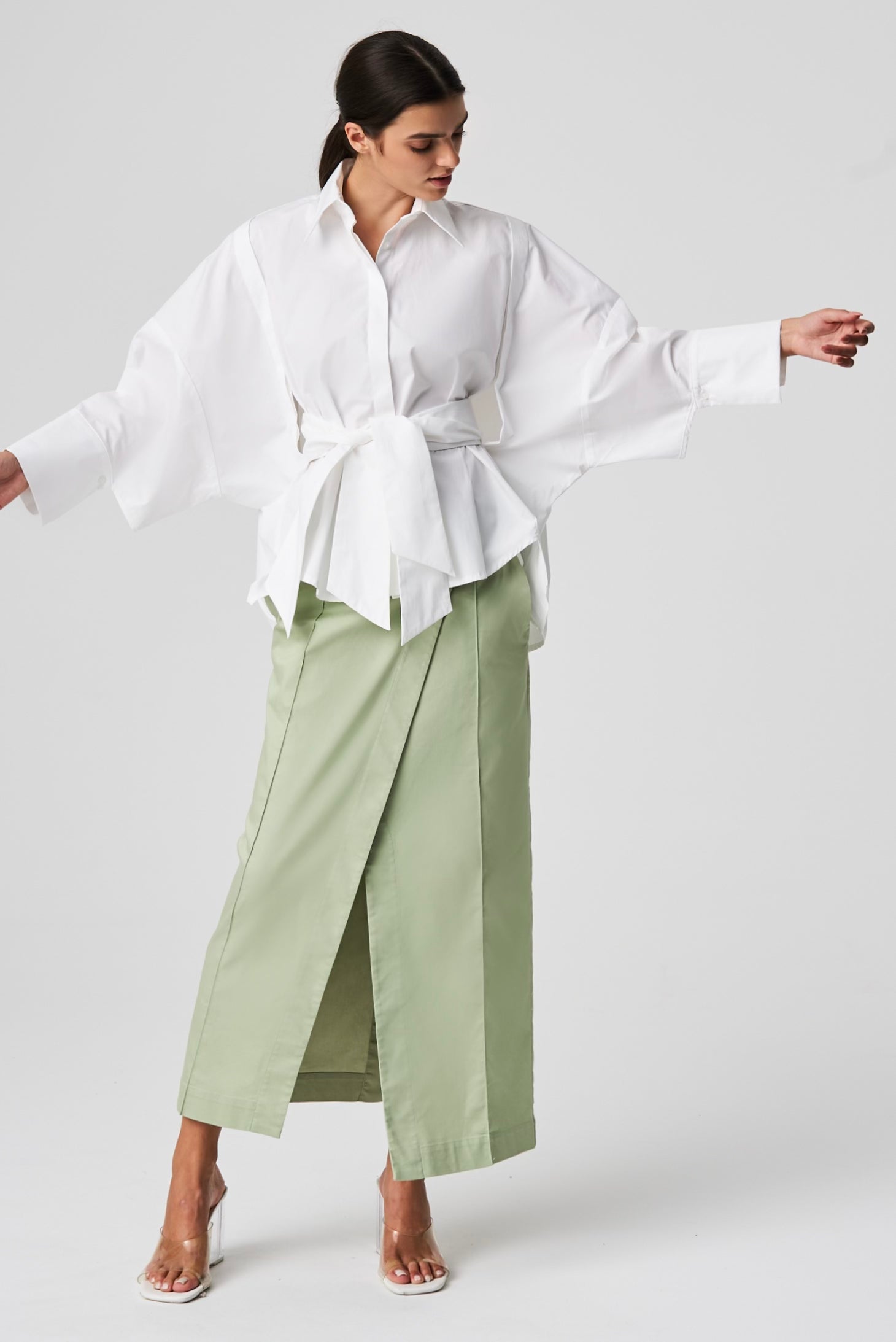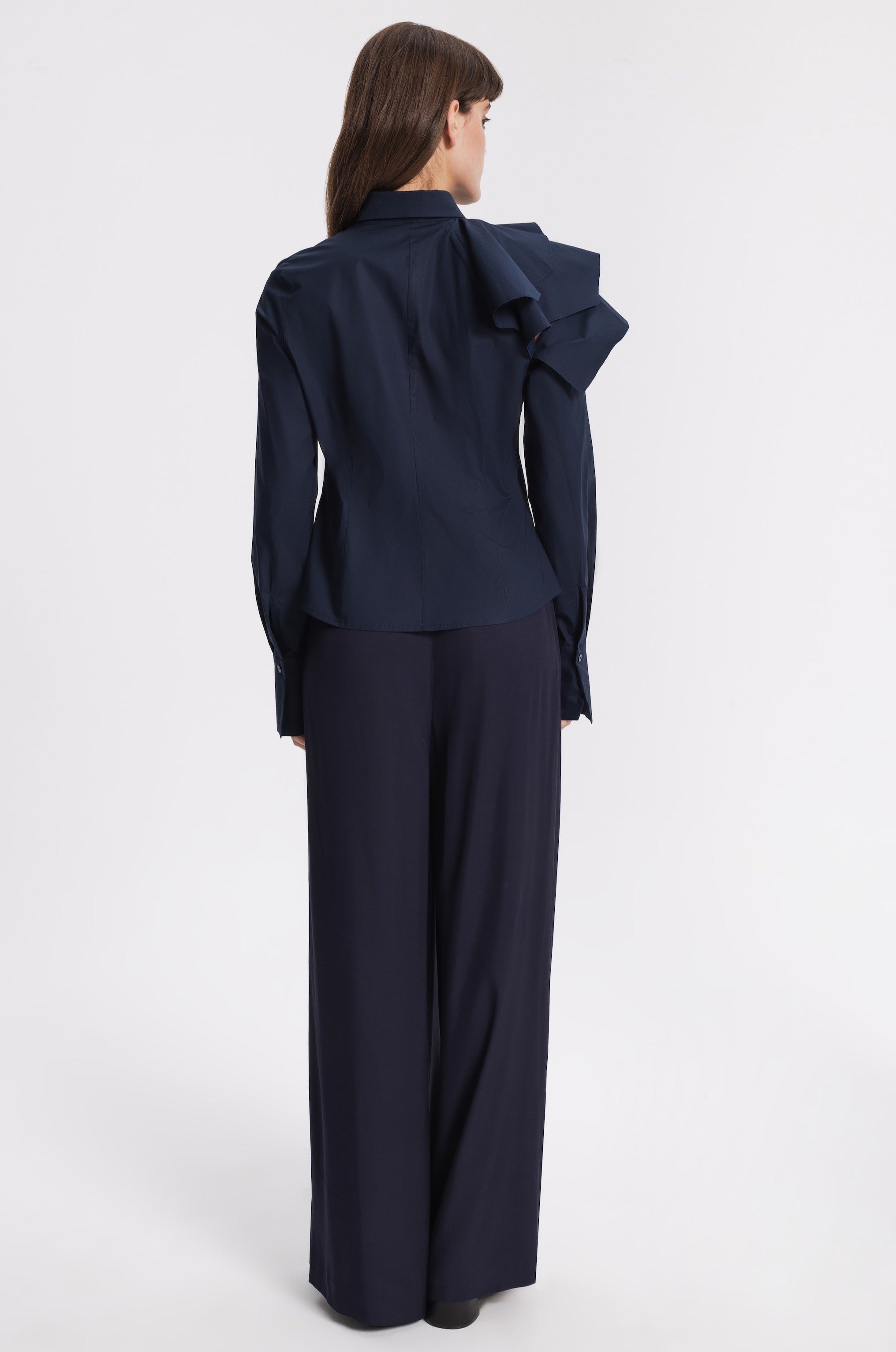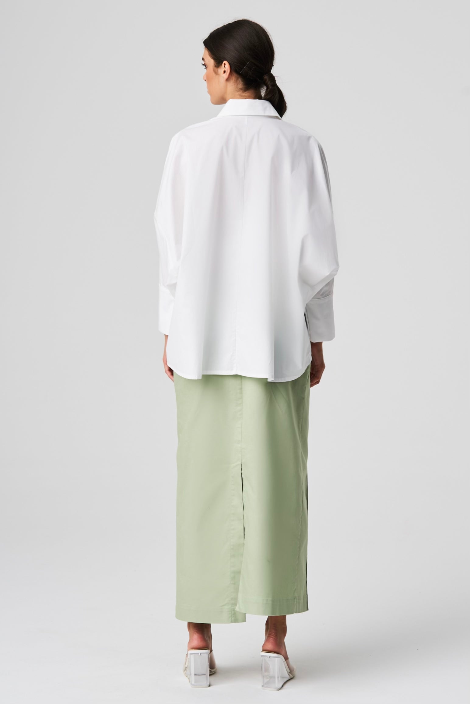 Crafted with impeccable precision, this shirts transforms simplicity into an art form, featuring avant-garde silhouettes that redefine elegance. Its crisp lines, luxurious fabric, and innovative tailoring make it a timeless statement, perfect for the modern women who embraces both versatility and bold style.