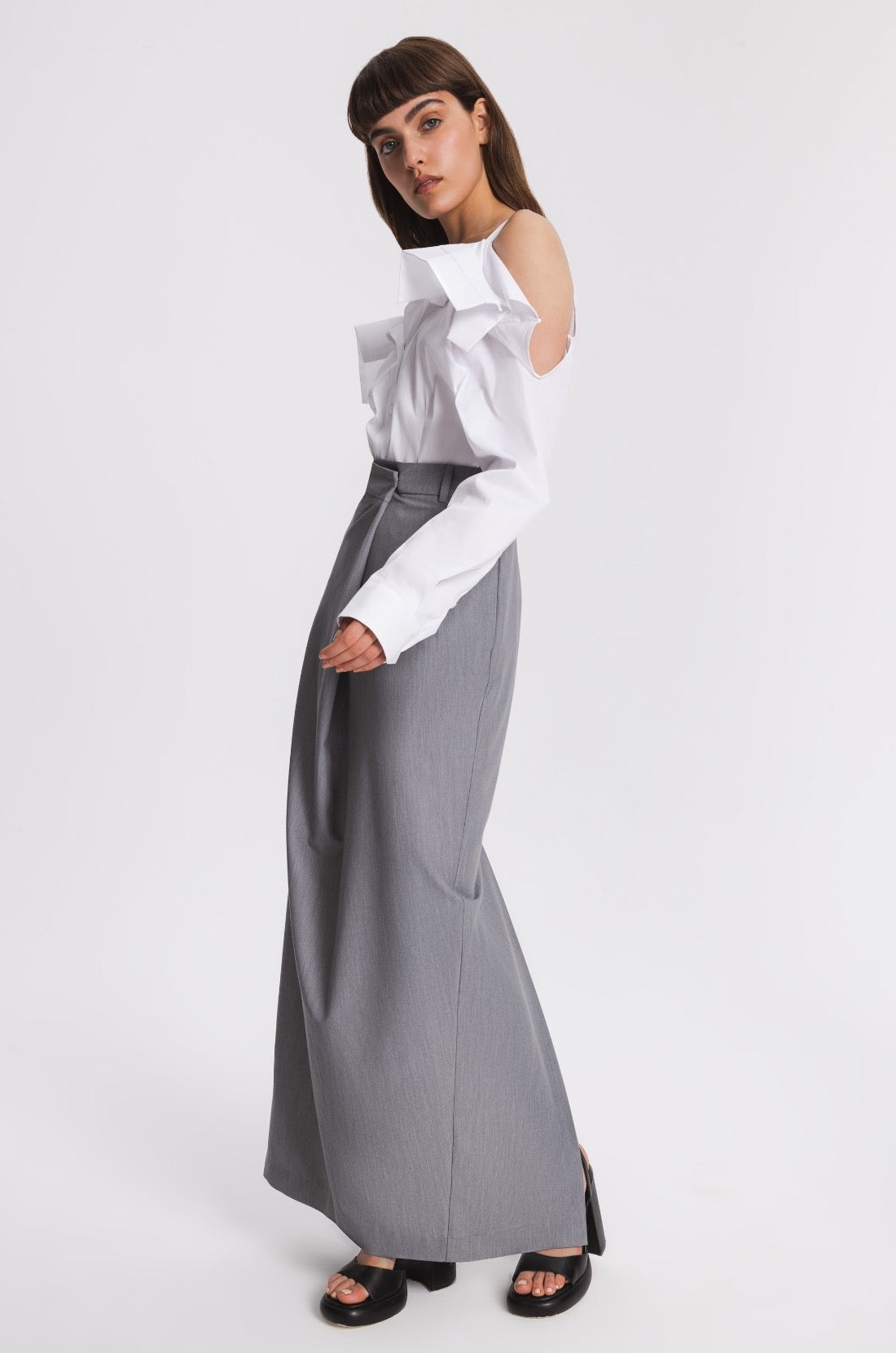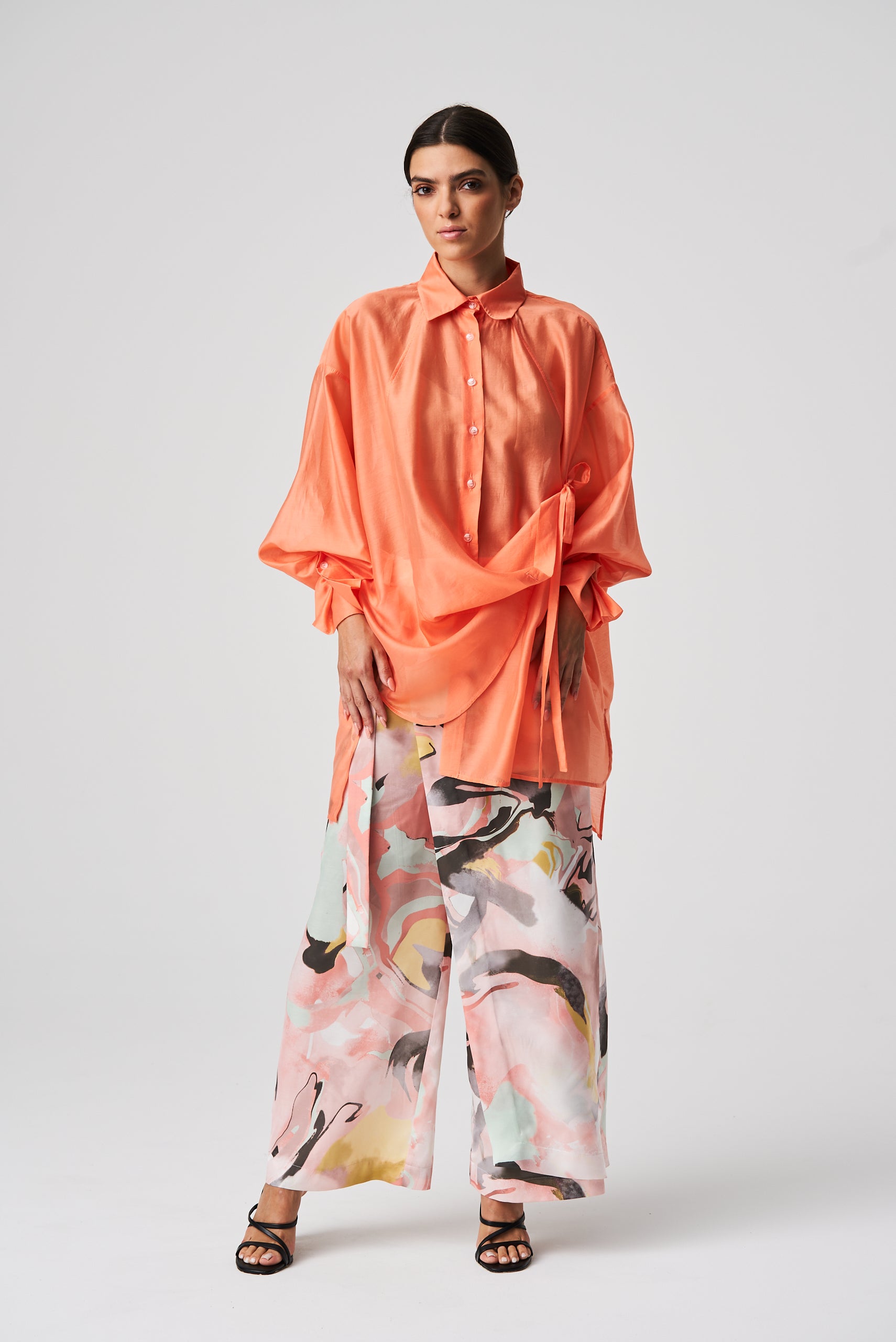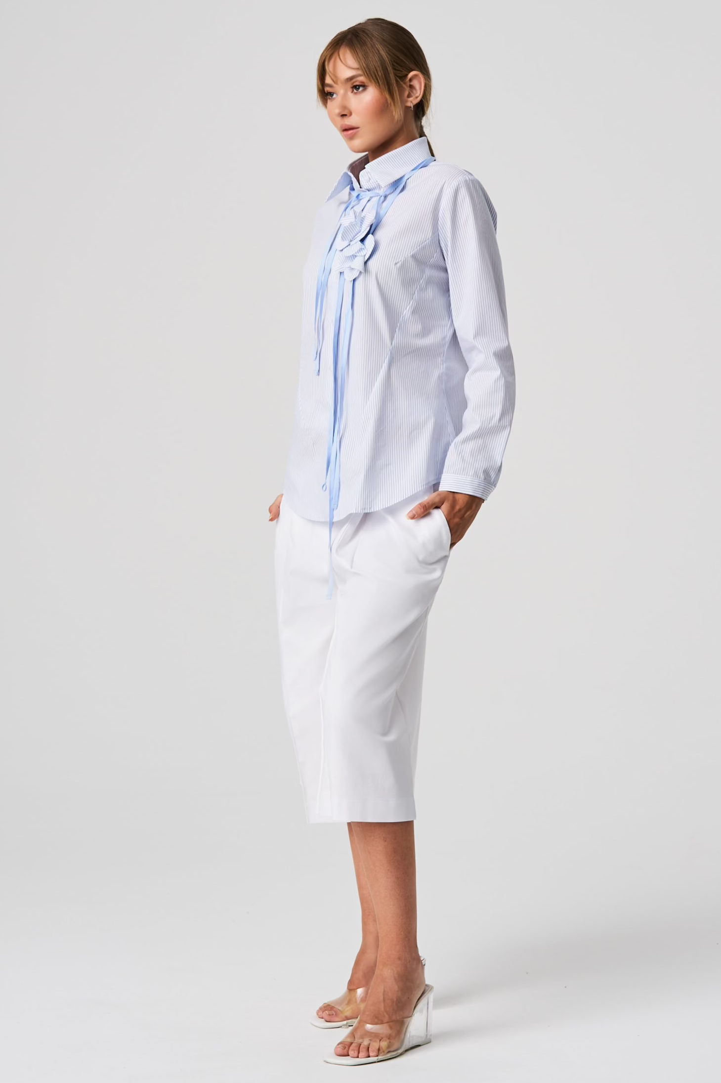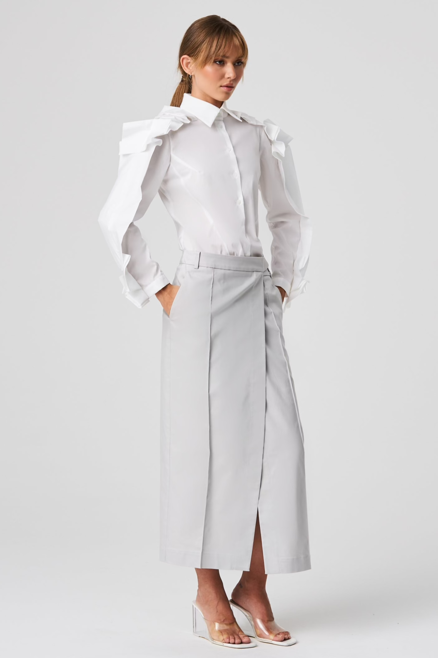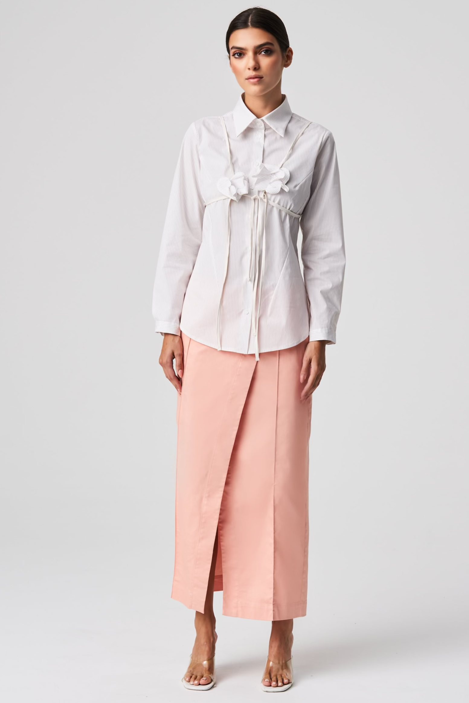 Crafted with impeccable precision, this shirts transforms simplicity into an art form, featuring avant-garde silhouettes that redefine elegance. Its crisp lines, luxurious fabric, and innovative tailoring make it a timeless statement, perfect for the modern women who embraces both versatility and bold style.