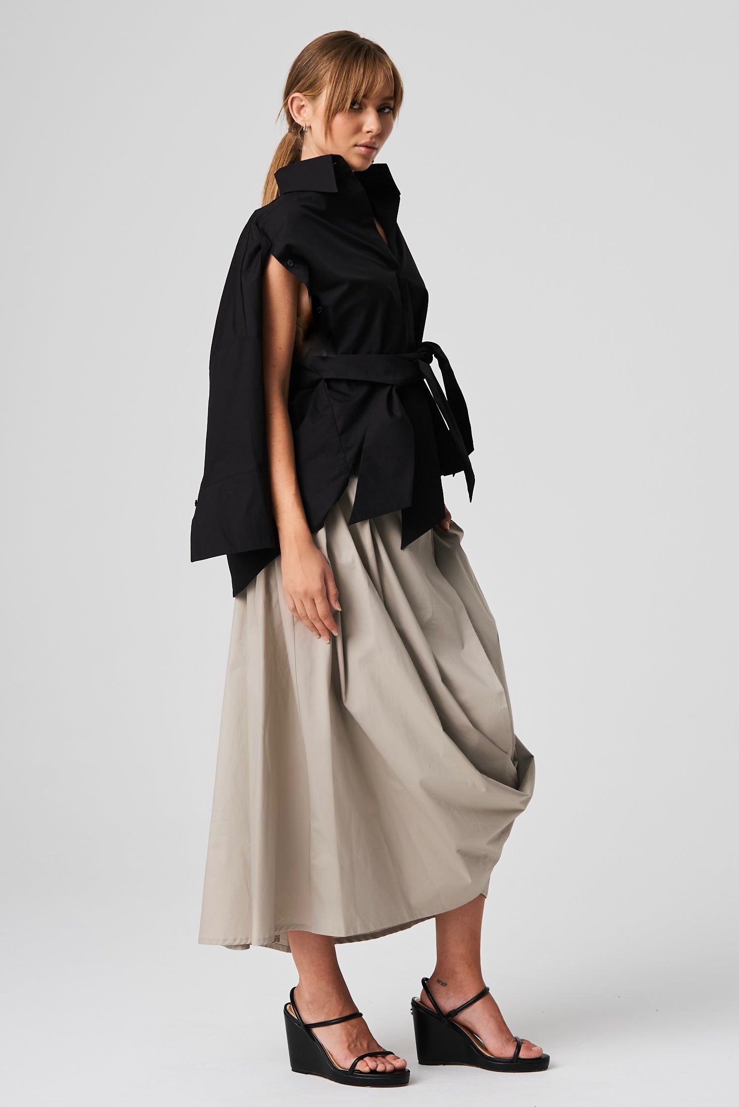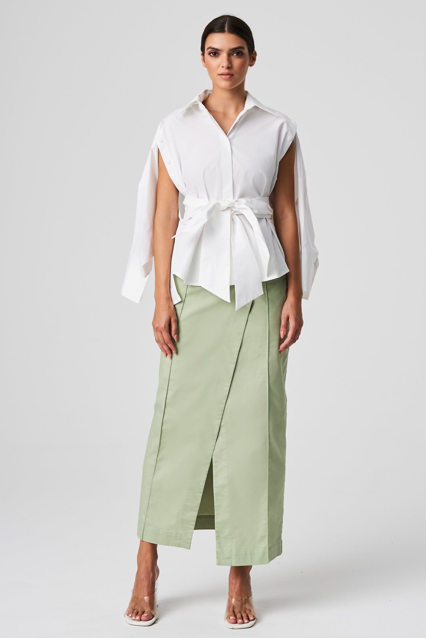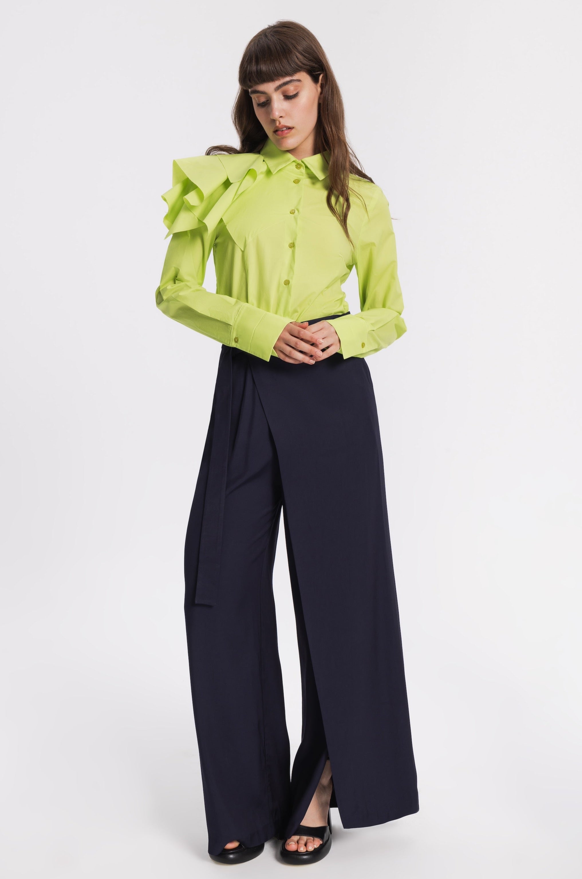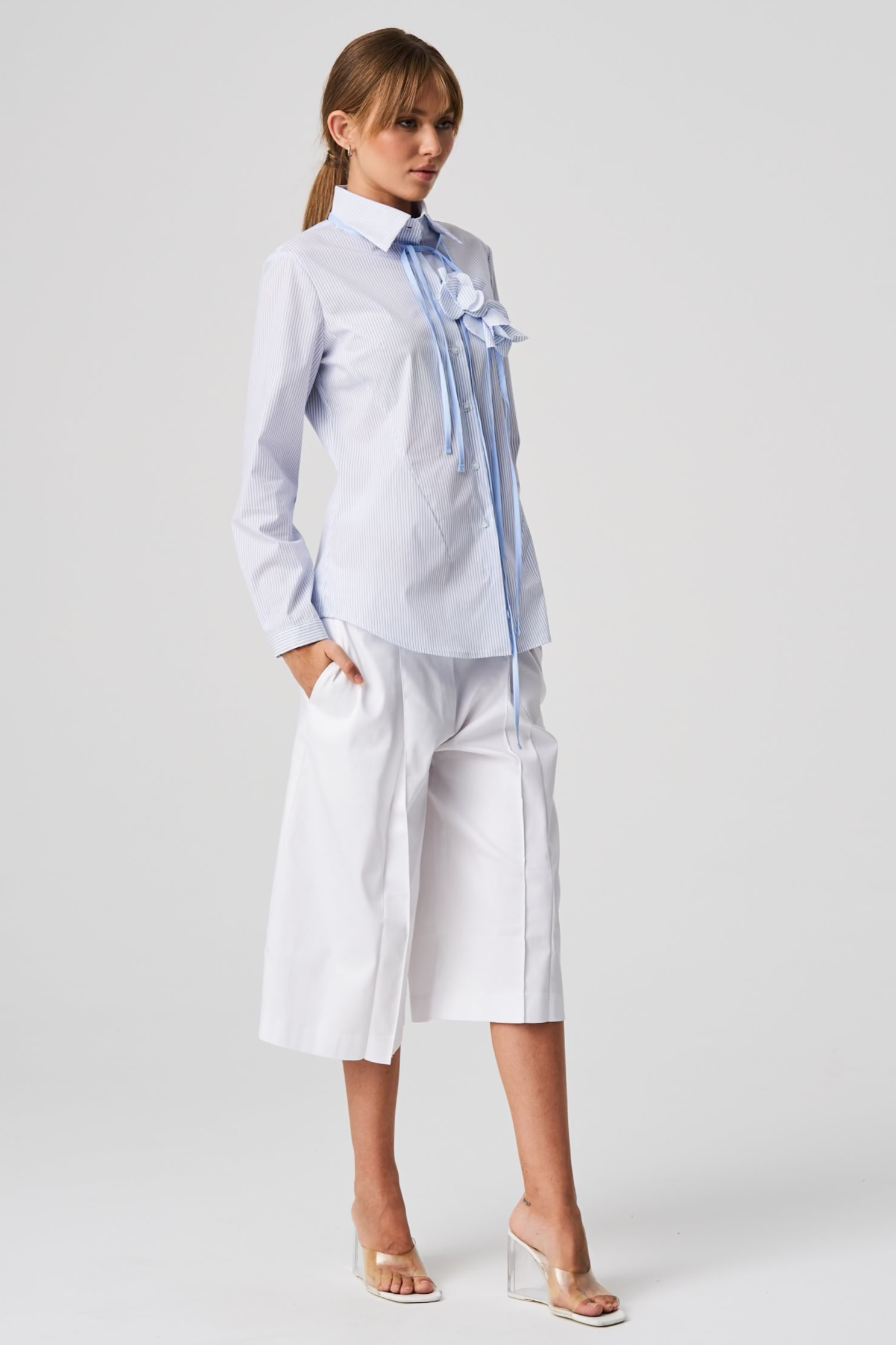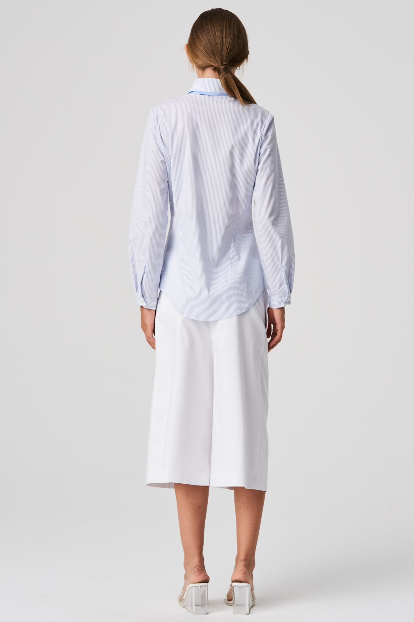 Crafted with impeccable precision, this shirts transforms simplicity into an art form, featuring avant-garde silhouettes that redefine elegance. Its crisp lines, luxurious fabric, and innovative tailoring make it a timeless statement, perfect for the modern women who embraces both versatility and bold style.