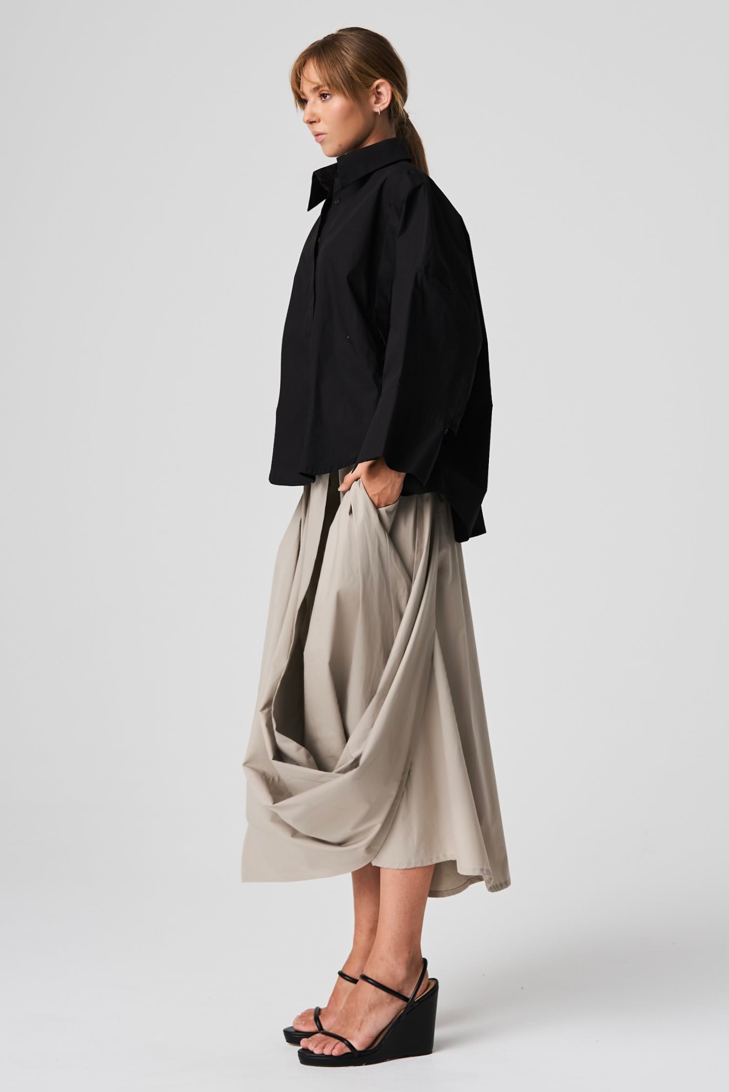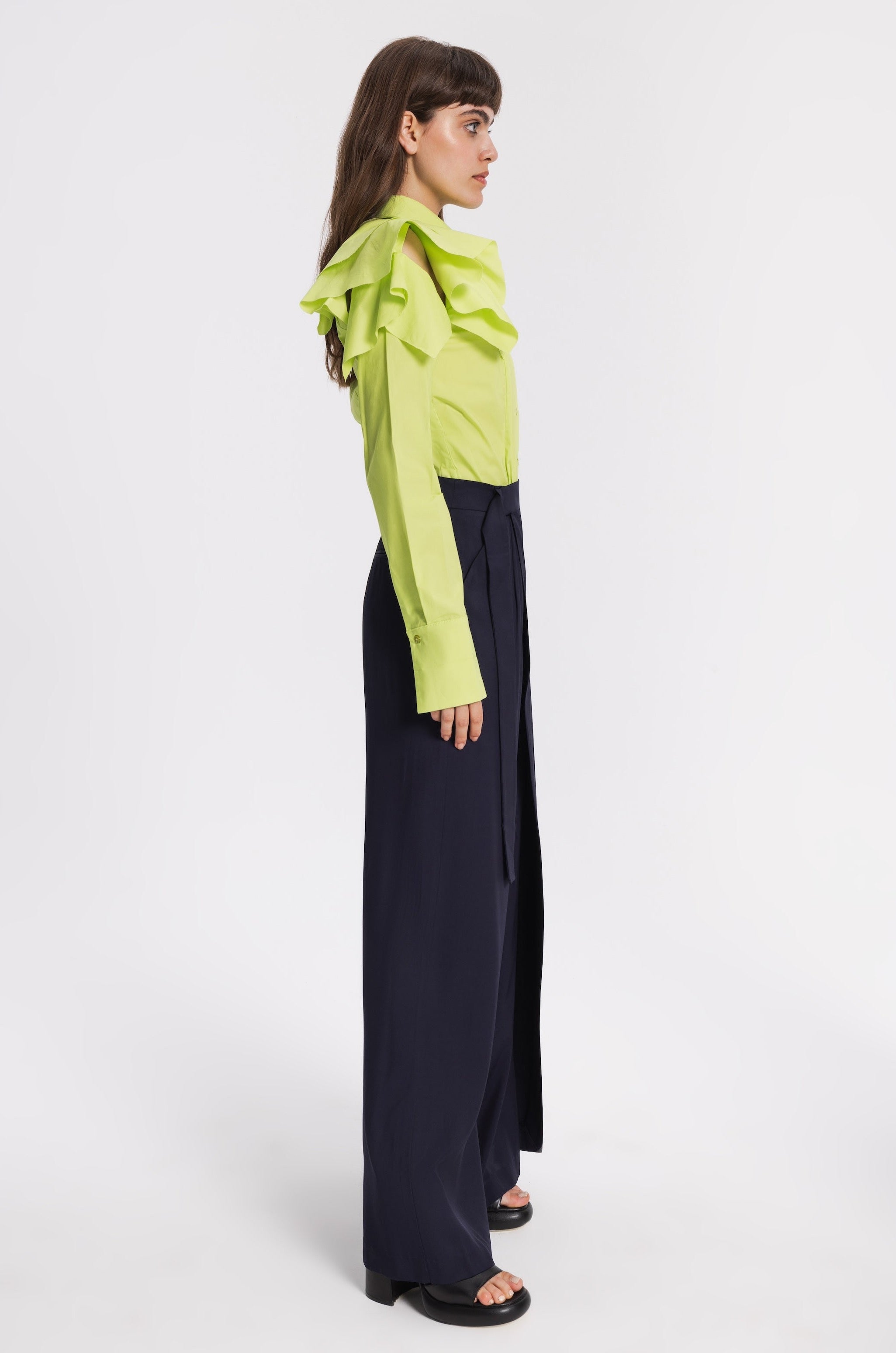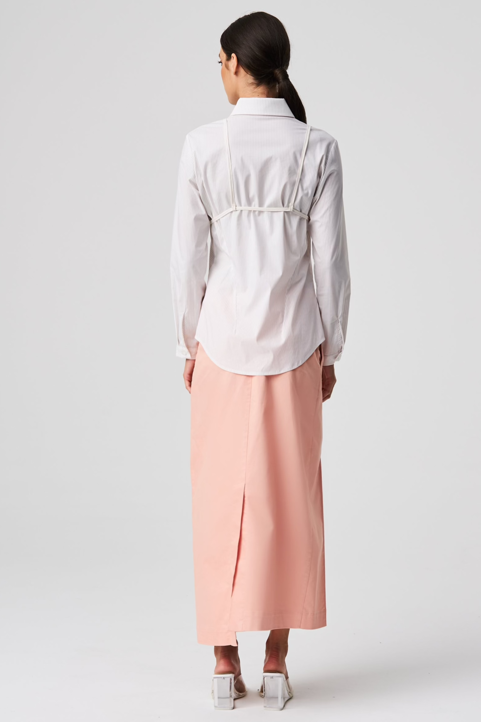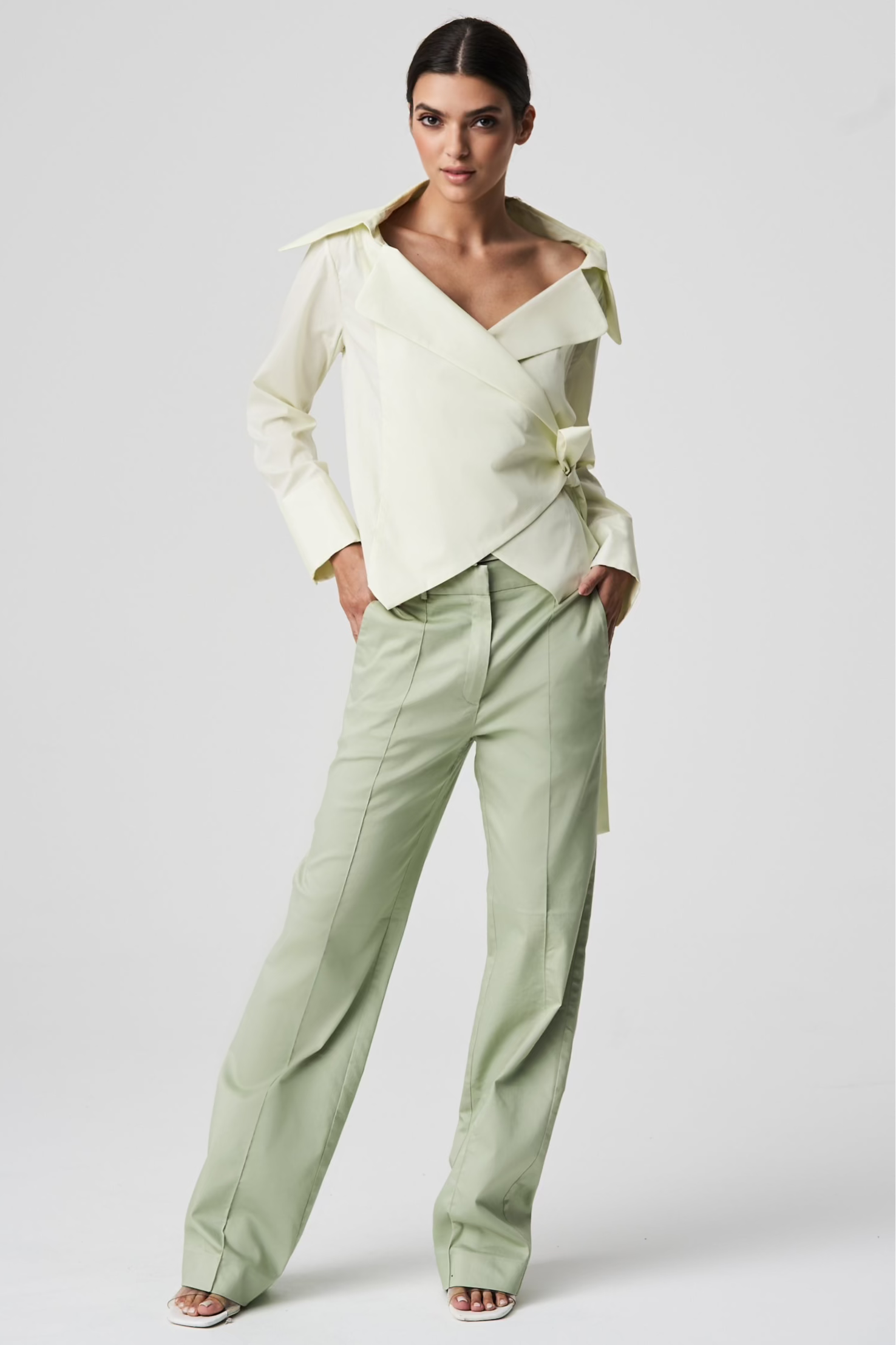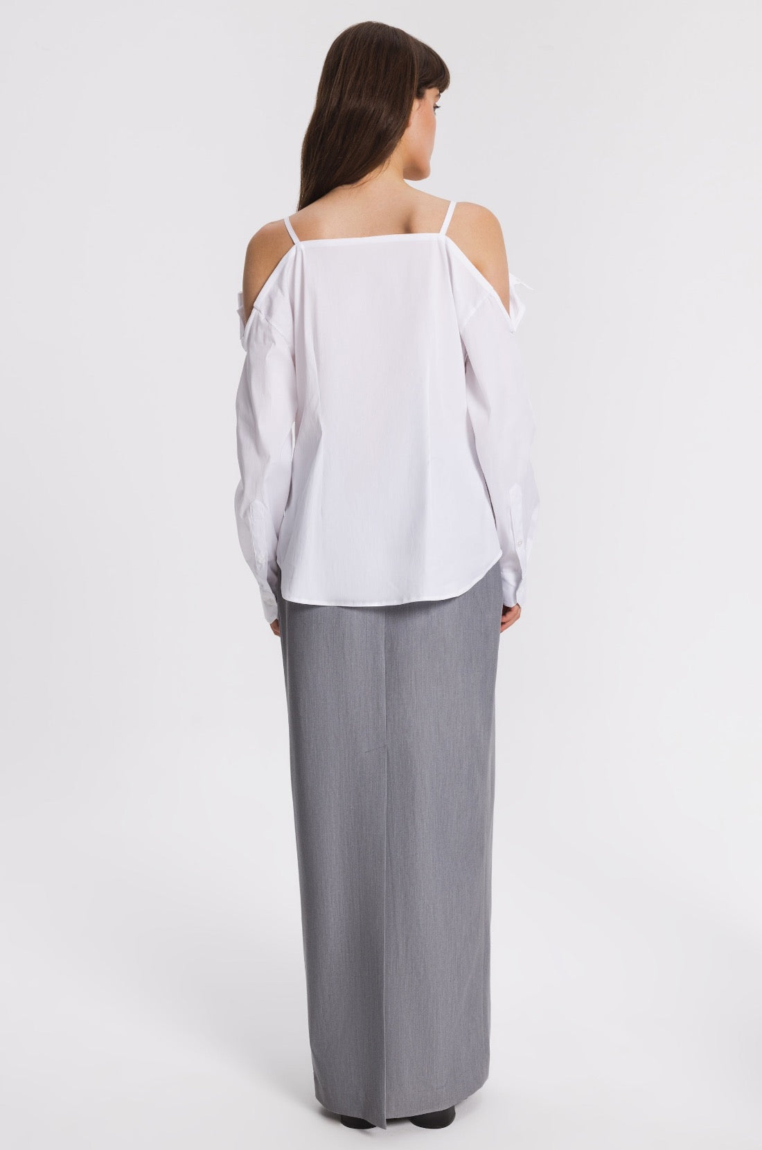 Crafted with impeccable precision, this shirts transforms simplicity into an art form, featuring avant-garde silhouettes that redefine elegance. Its crisp lines, luxurious fabric, and innovative tailoring make it a timeless statement, perfect for the modern women who embraces both versatility and bold style.