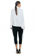 ASYMMETRICAL LONG-SLEEVED SHIRT MADE OF LIGHT STRETCH POPLIN. THE FRONTAL TIP CAN BE UNBUTTONED.