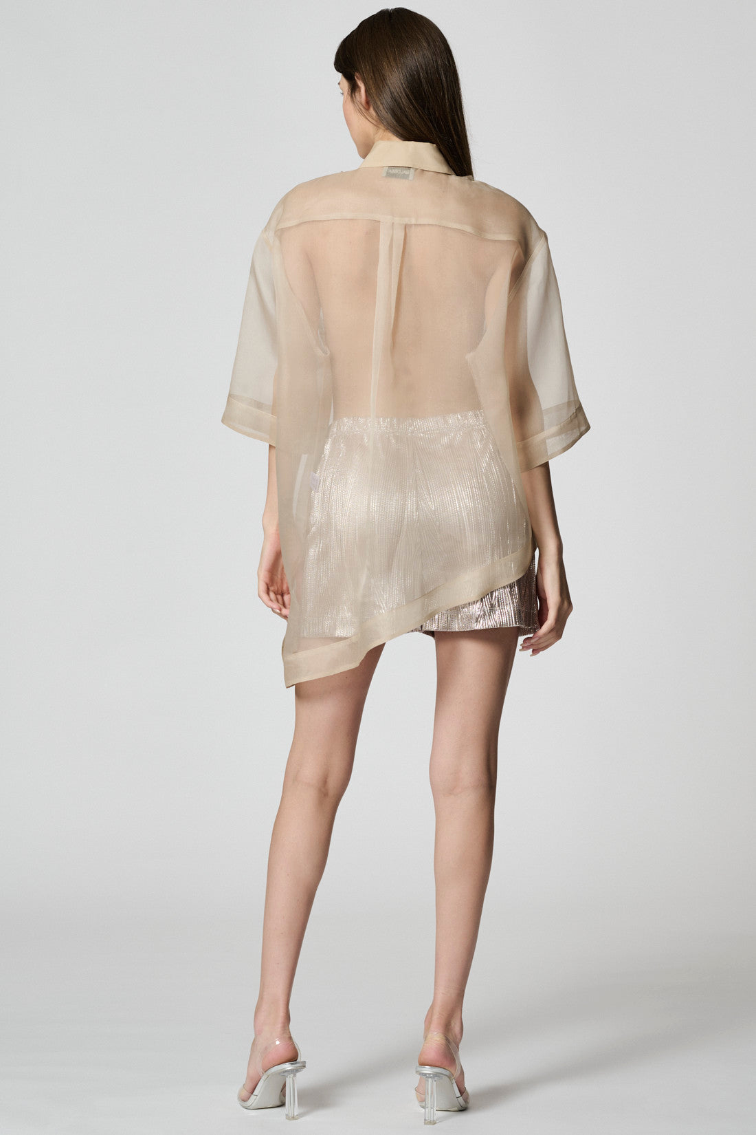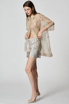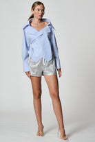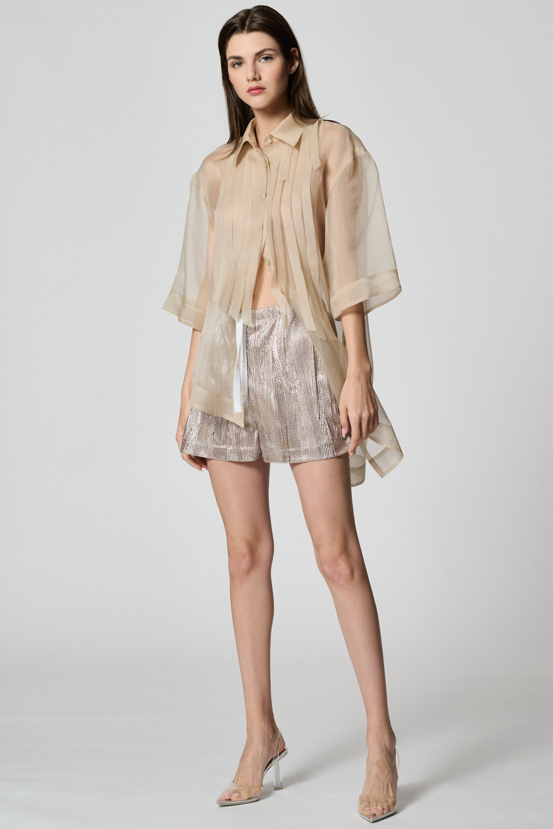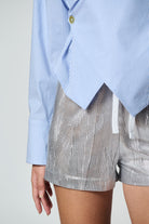 Relaxed cut shorts in a shiny fabric. Elasticated waist band with a decorative lace.