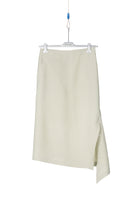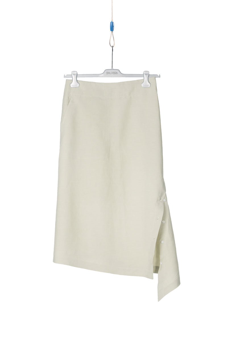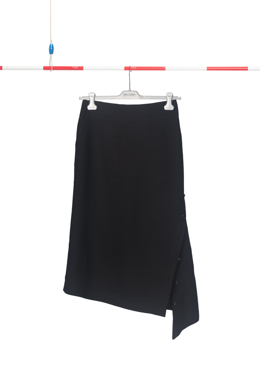 Asymmetric long skirt with cutting and buttoning on the side, one side pocket