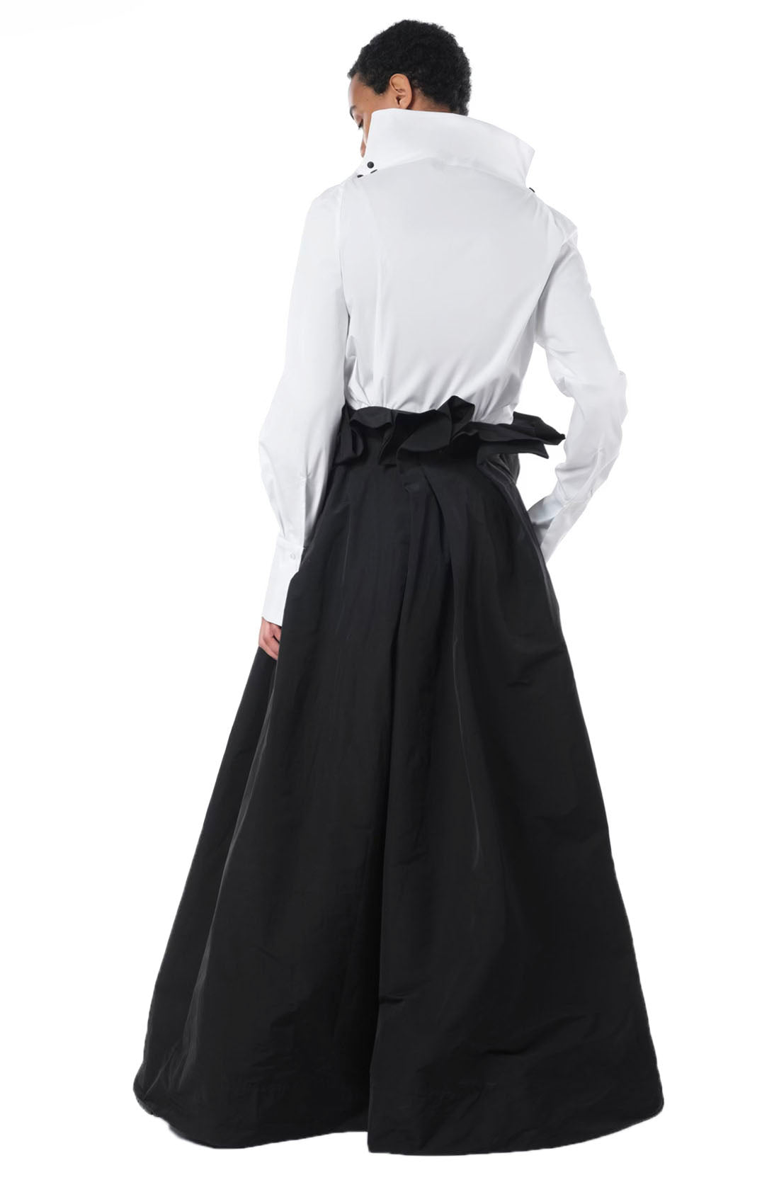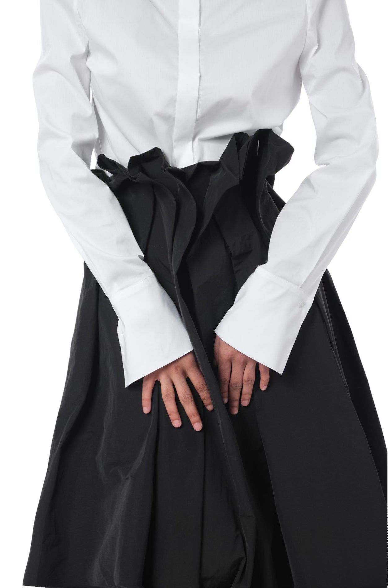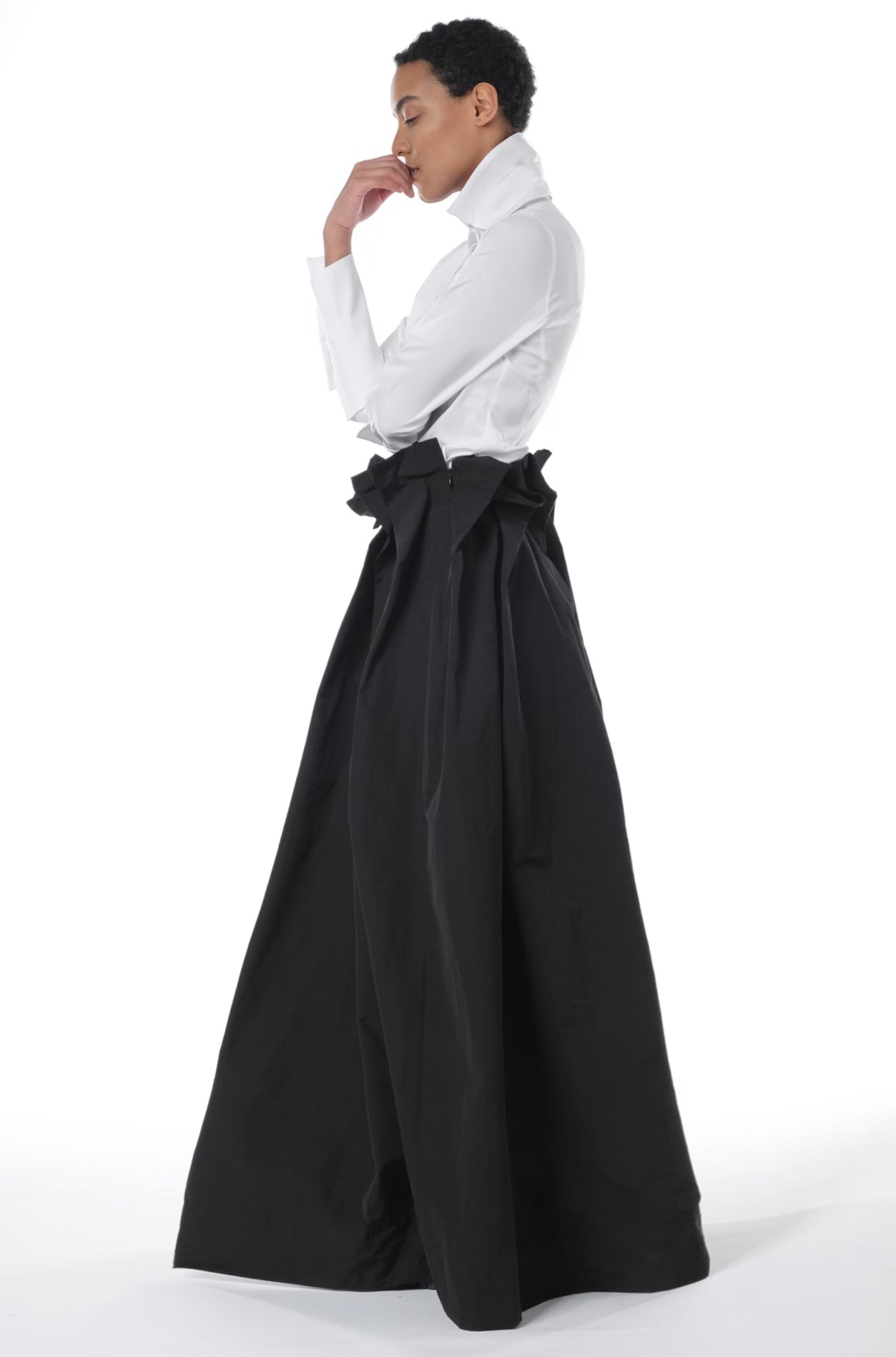 MAXI-LENGTH SKIRT IN TAFFETA-EFFECT COTTON TRENCH FABRIC WITH SIDE CLOSURE AND HIDDEN ZIP, LARGE PLEATED WAIST, TWO SIDE POCKETS. IDEAL FOR A NIGHT OUT OR MATCHED WITH SHIRT FOR A SPECIAL EVENTS.