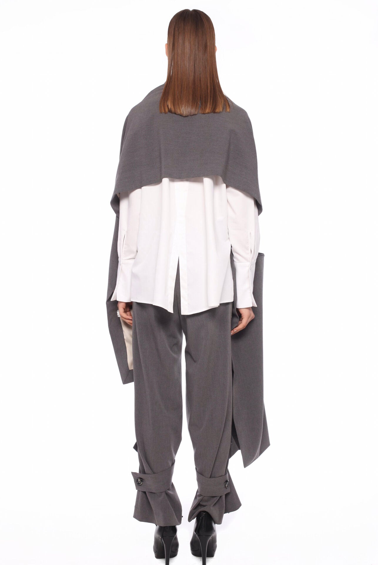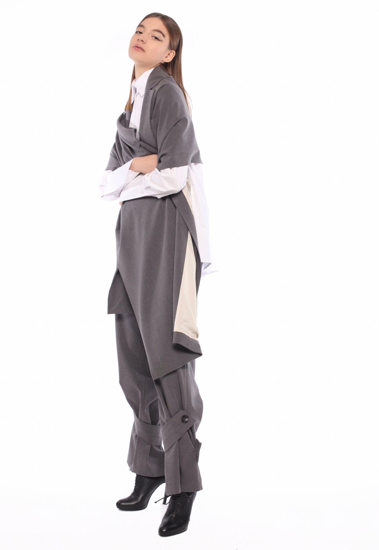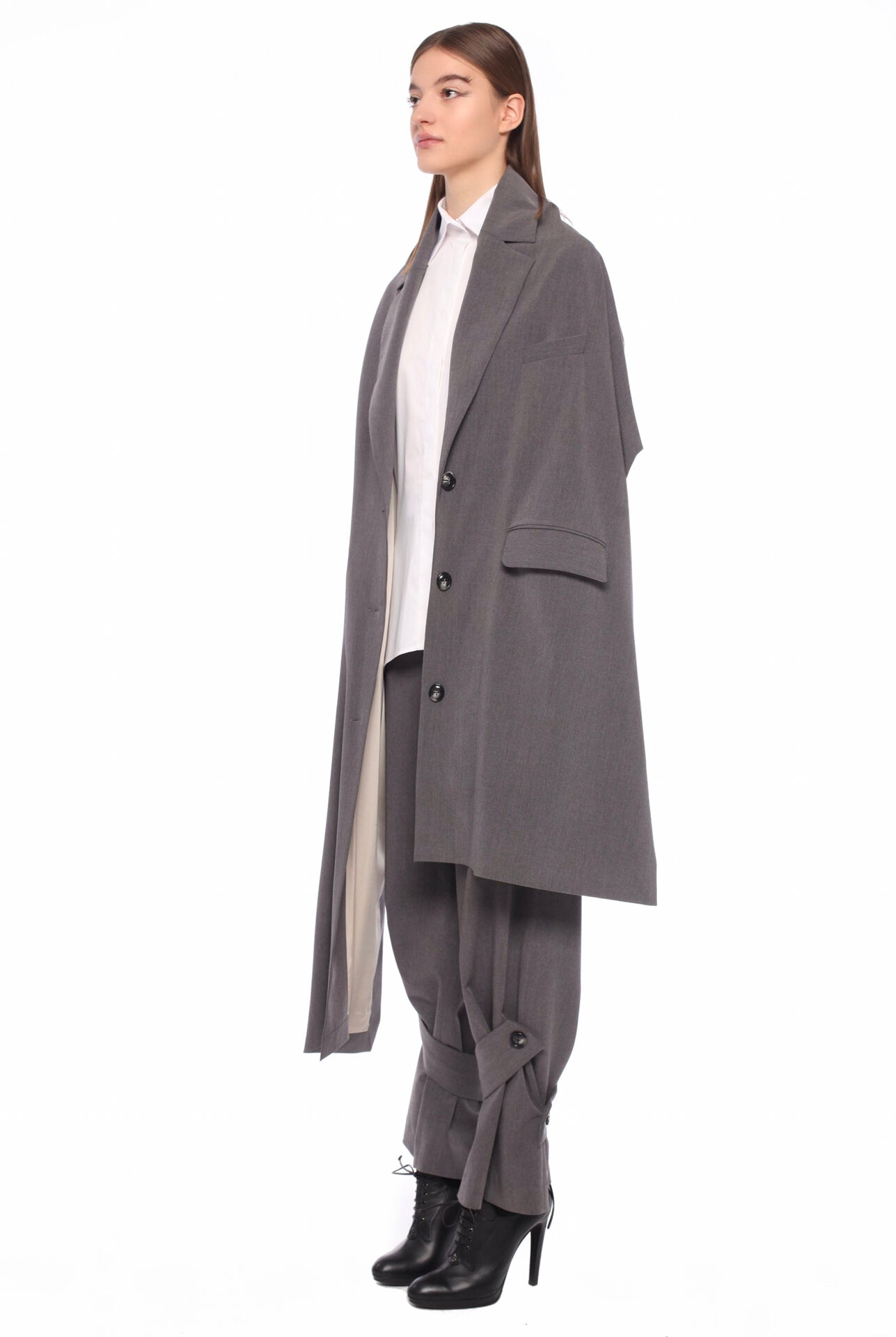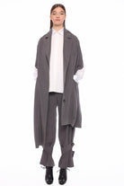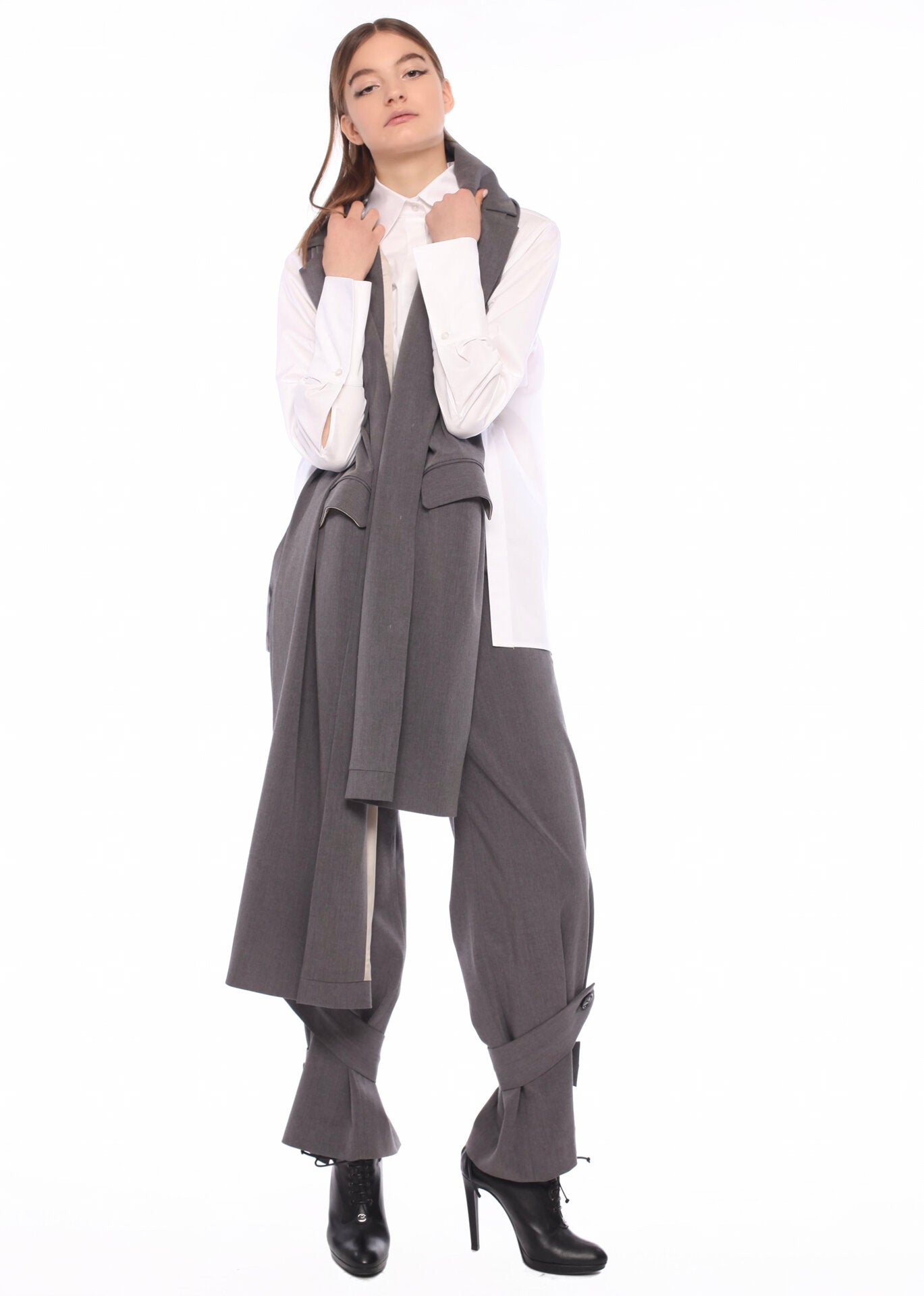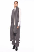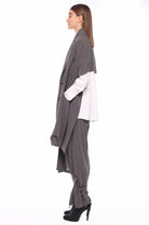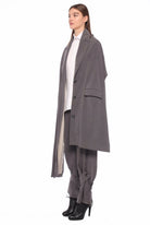 LONG VEST/SHOWL IN CONTRAST-LINED STRETCH COMFORT FABRIC, TWO FRONT POCKETS, CLASSIC JACKET COLLAR.