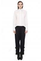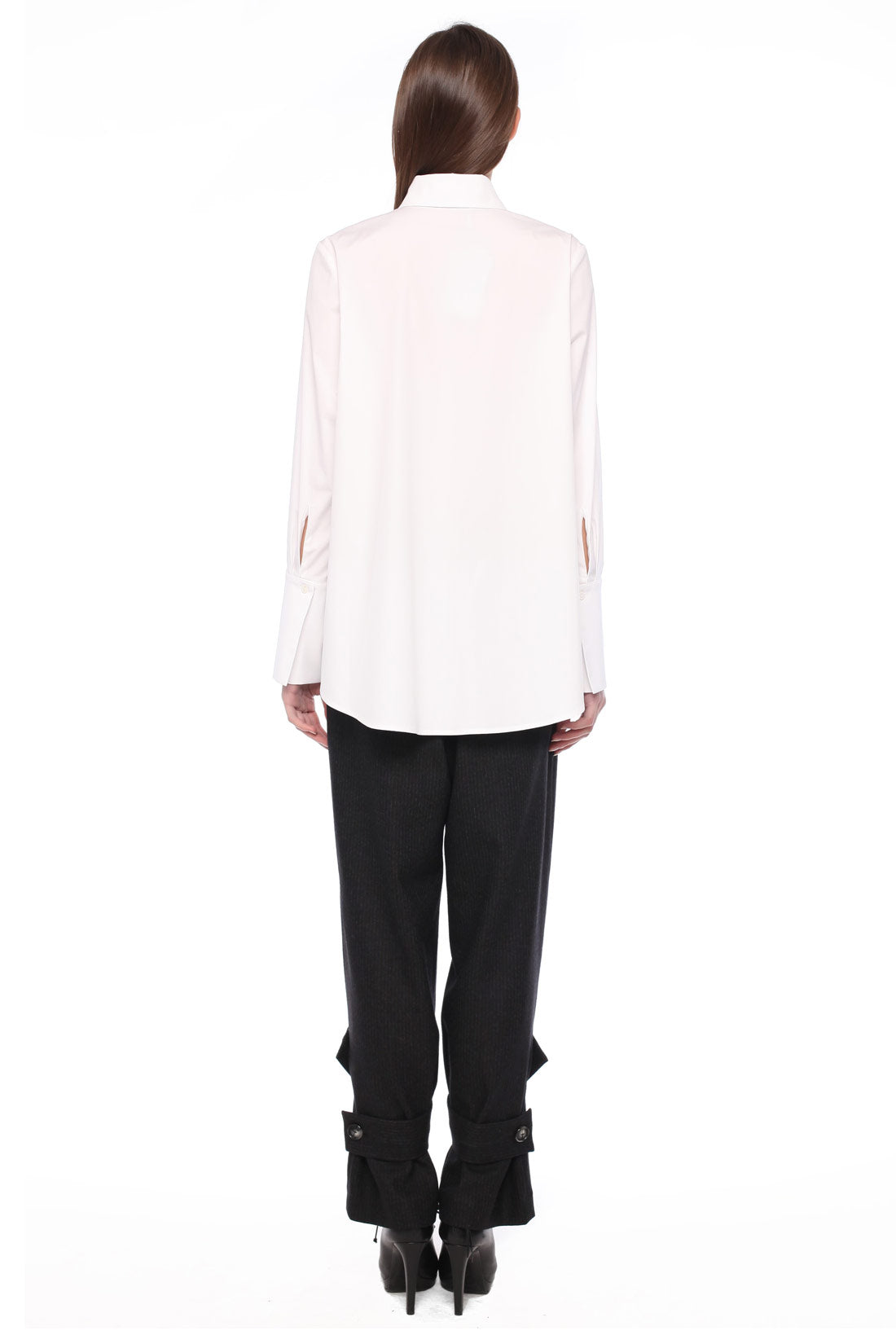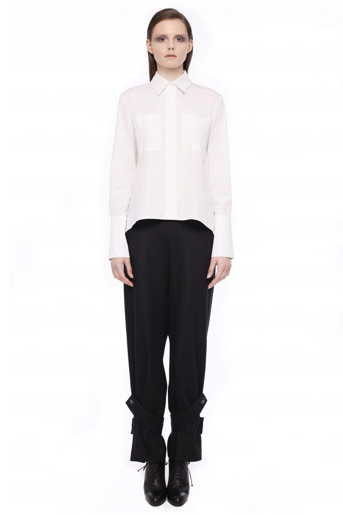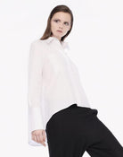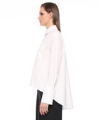 A SHAPE STRETCH COTTON SHIRT. TWO FRONT POCKETS, BACK LONGER THAN FRONT.