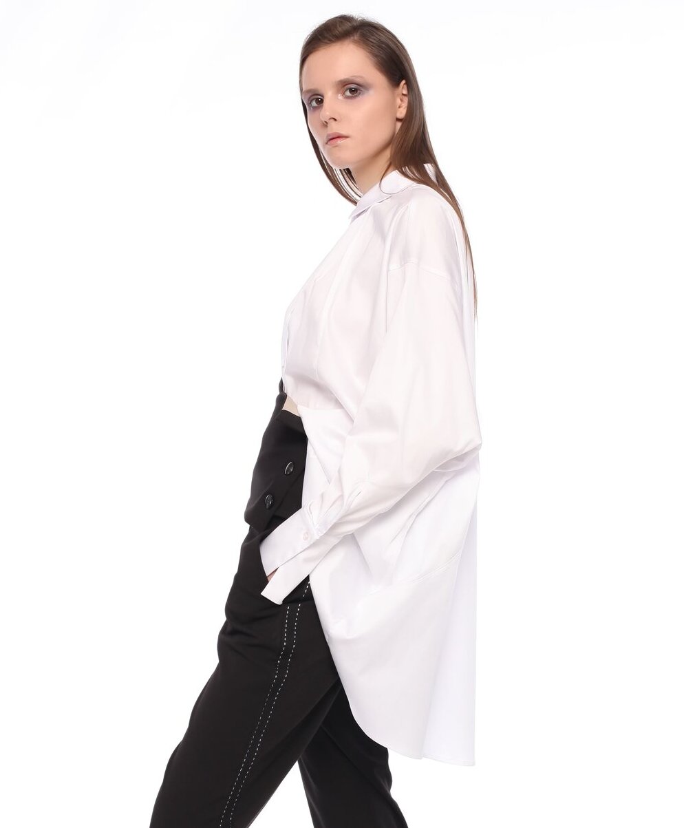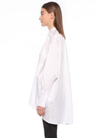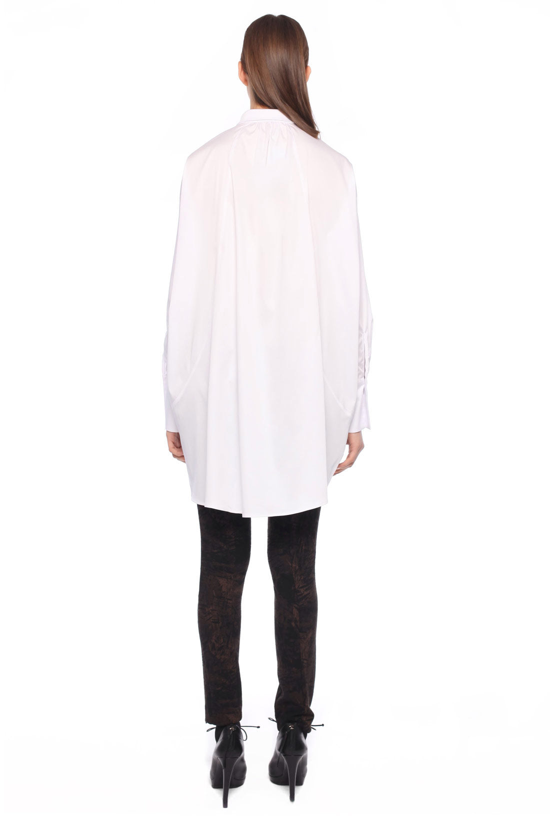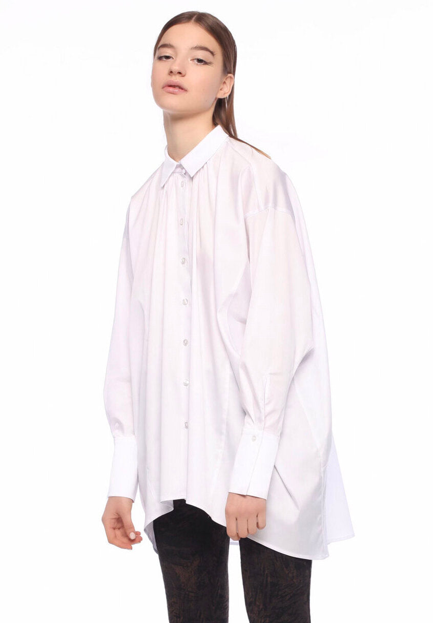 KIMONO OVERSIZED COTTON POPLIN SHIRT WITH LARGE CUFFS. BACK SLIGHTLY LONGER THAN FRONT.