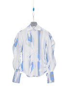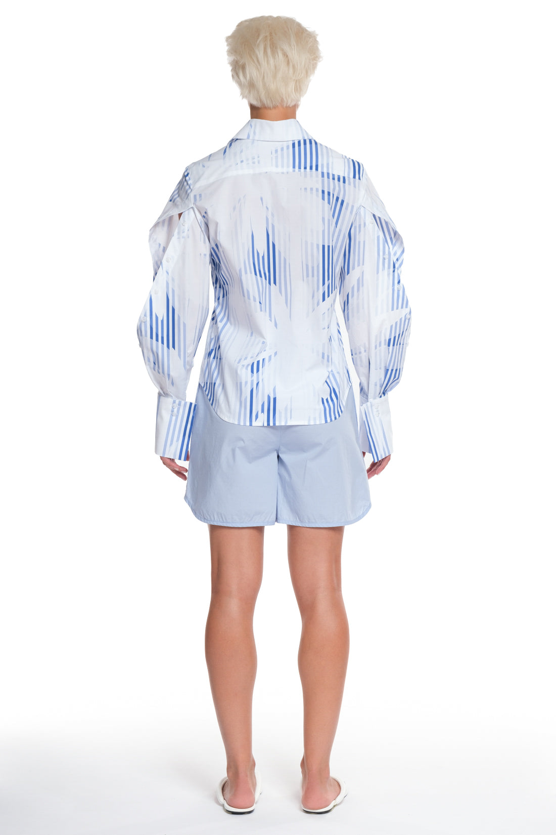 Printed long sleeve shirt with cutting and buttoning on the sleeves
