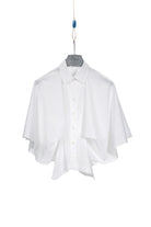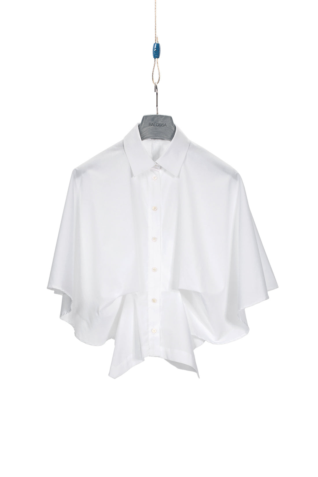 Mid sleeve cotton poplin shirt, buttoning in the front, folded in the front and back
