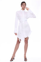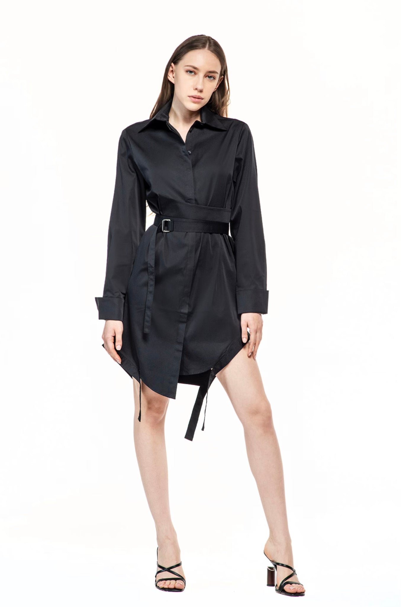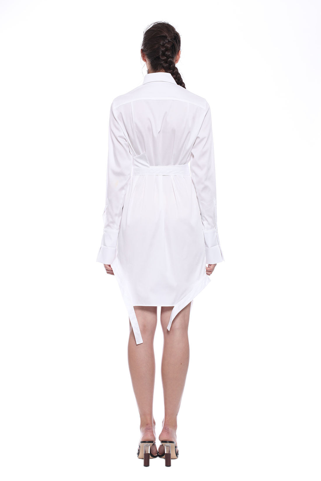 LONG SHIRT IN EXTRA ELASTIC POPLIN COTTON WITH DETACHABLE BELT AND DETAILING ON THE HEM. CAN BE WORN AS A DRESS OR WITH A SKIRT OR TROUSERS.