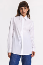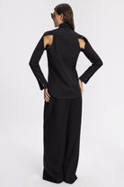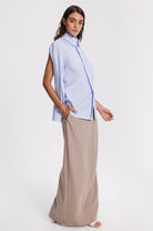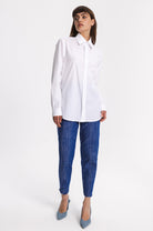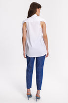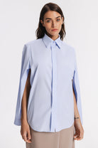 Regular-fit poplin shirt with classic collar and cuffs. The particularity of this shirt is a openings on the shoulder back part which allows wearing the shirt with or without the sleeves.
