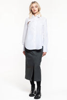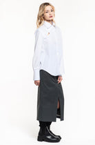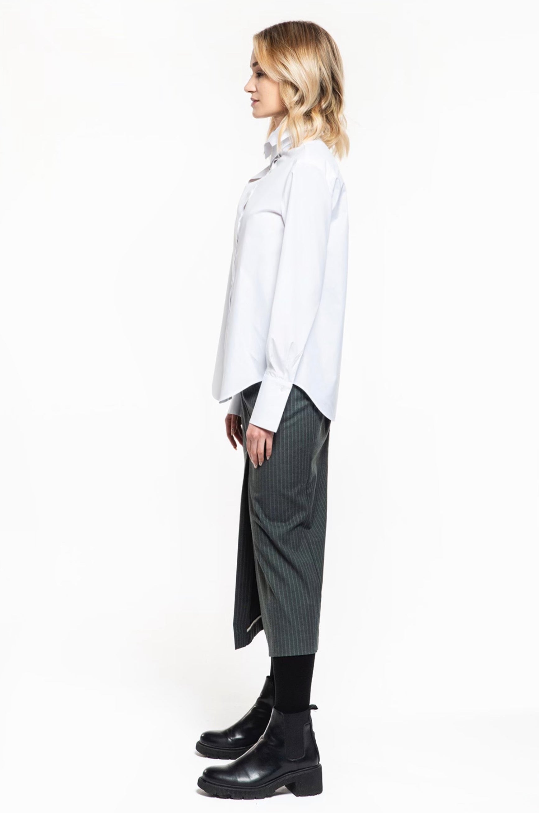 Regular-fit cotton shirt with a special detail in the neck area. Large cuffs.