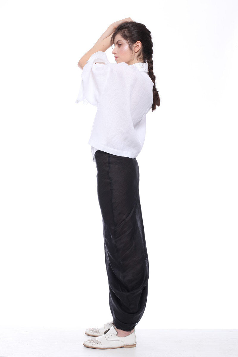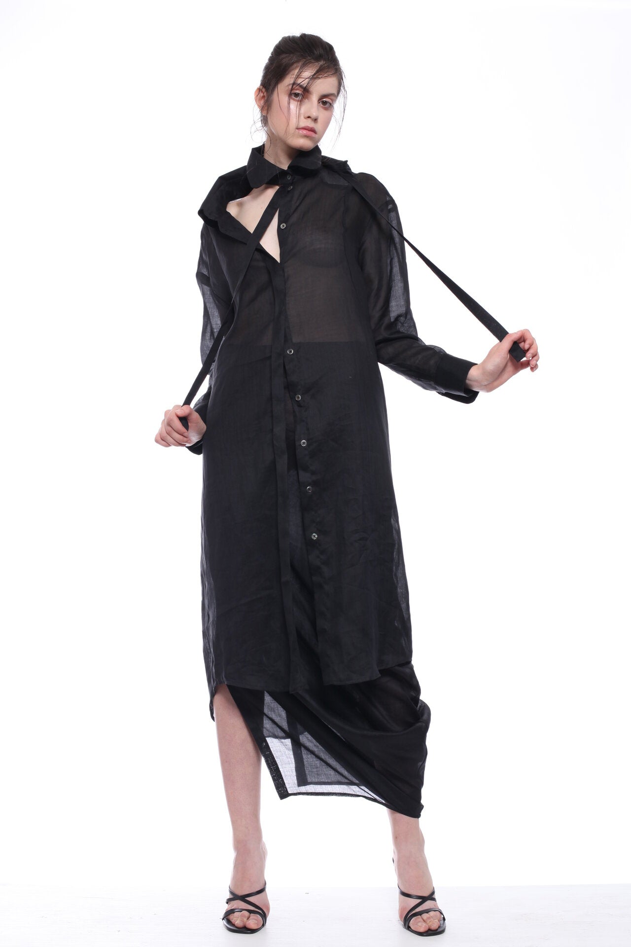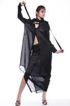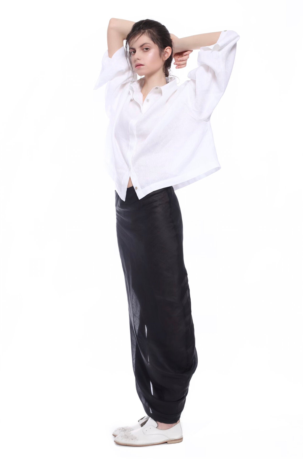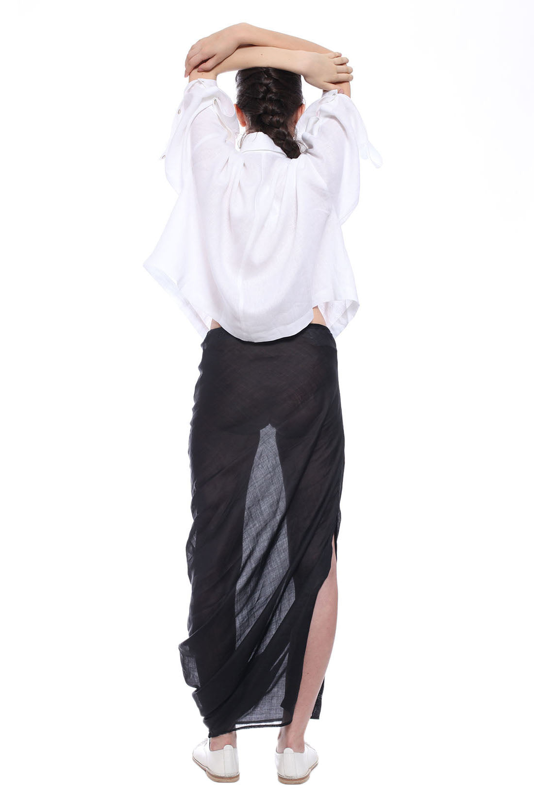 LONG SKIRT IN TRANSPARENT RAMIE WITH LEFT SIDE SLIT AND PERSONALISED 'BALOSSA' ELASTIC LACE. THE SKIRT IS DESIGNED TO BE WORN UNDER LONG SHIRT OR OVER BIKINI.
