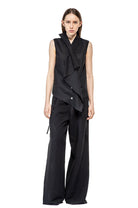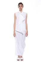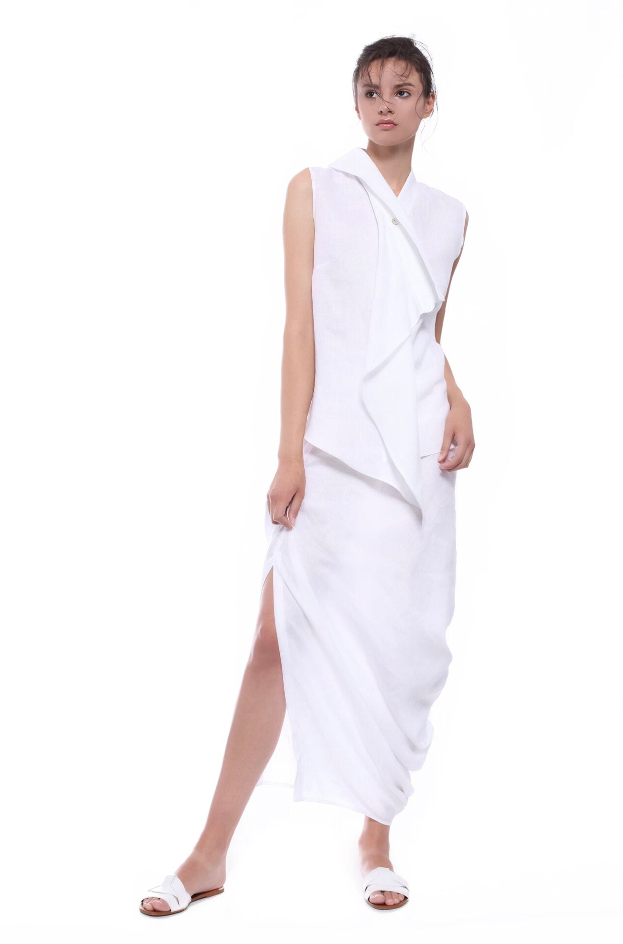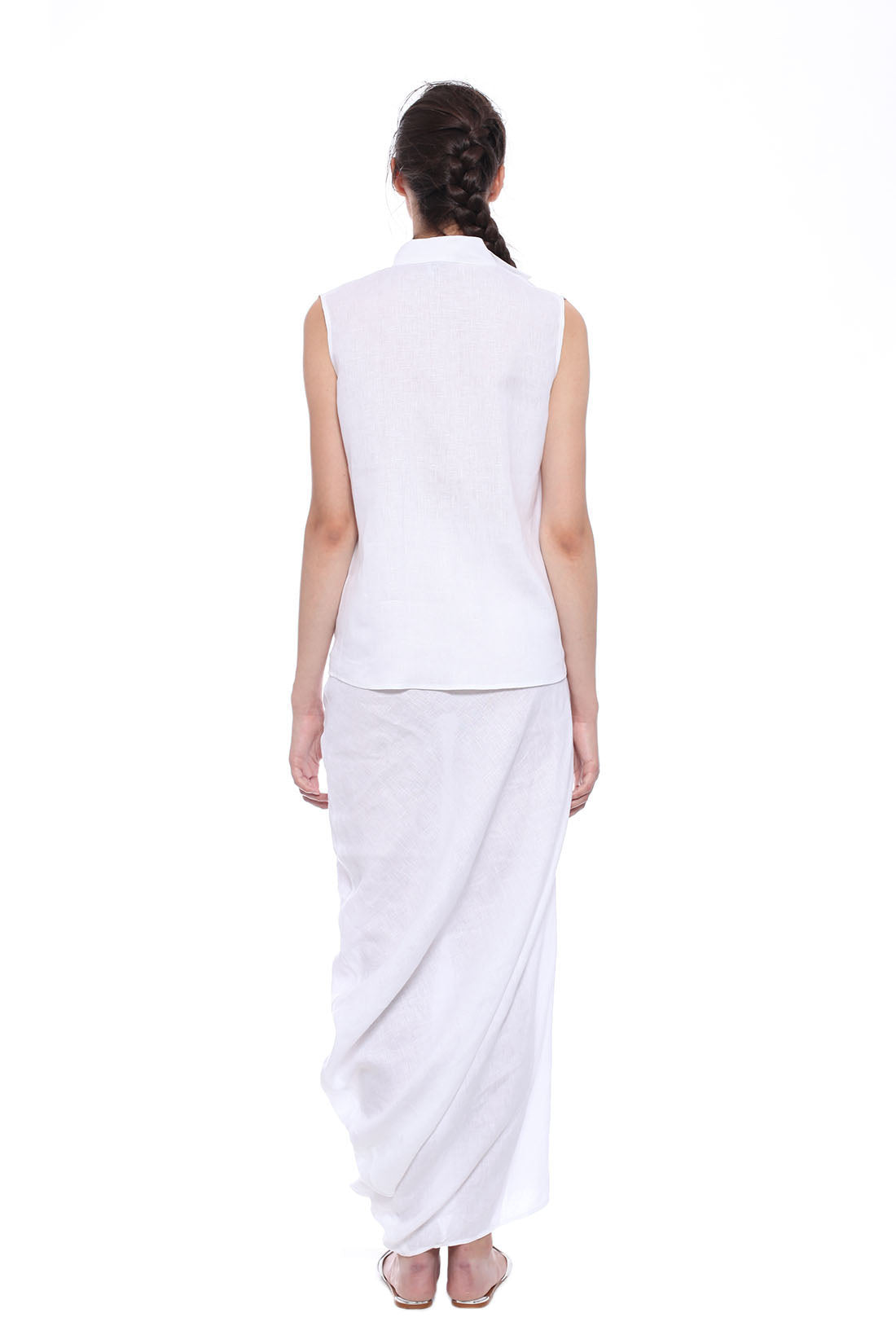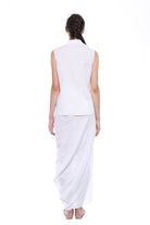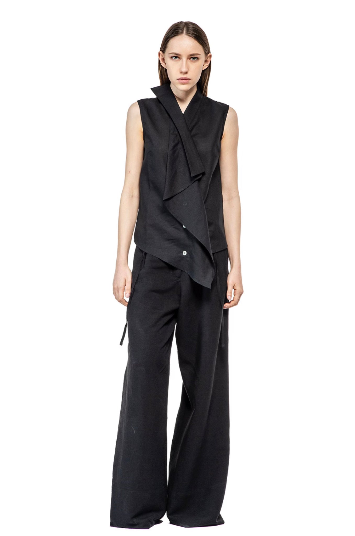 DECONSTRUCTED SLIM FIT SLEEVELESS VEST TOP IN ORGANIC LINEN AND COTTON WITH MOTHER-OF-PEARL BUTTONS.