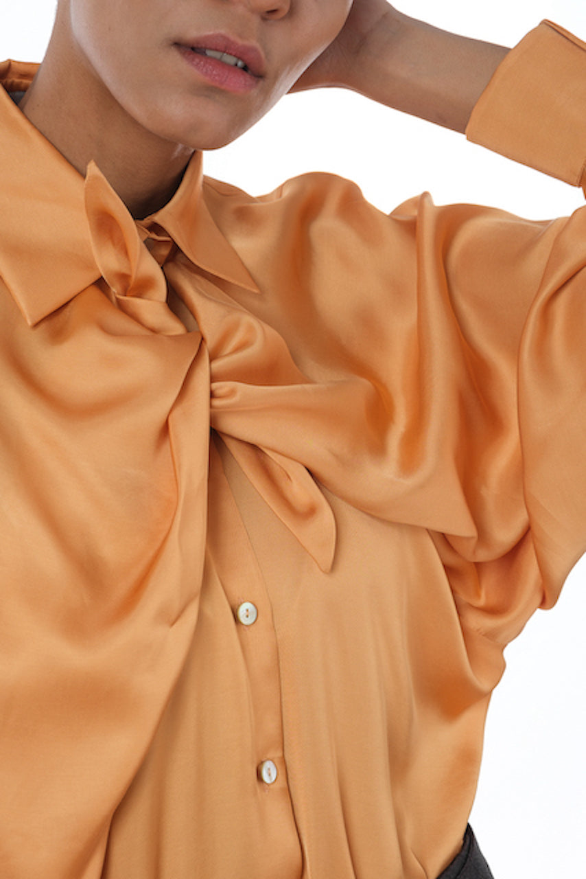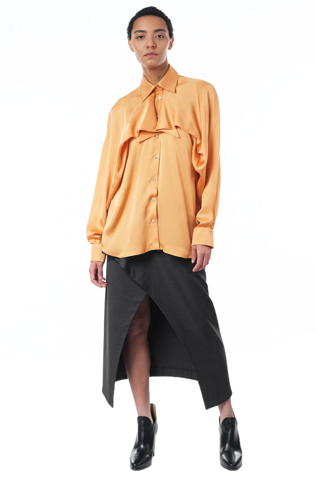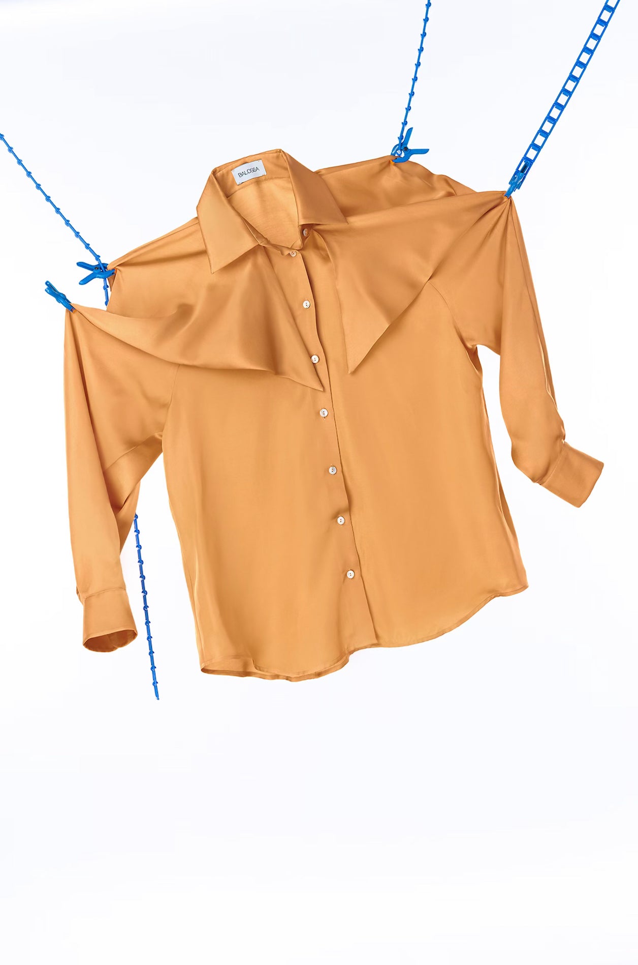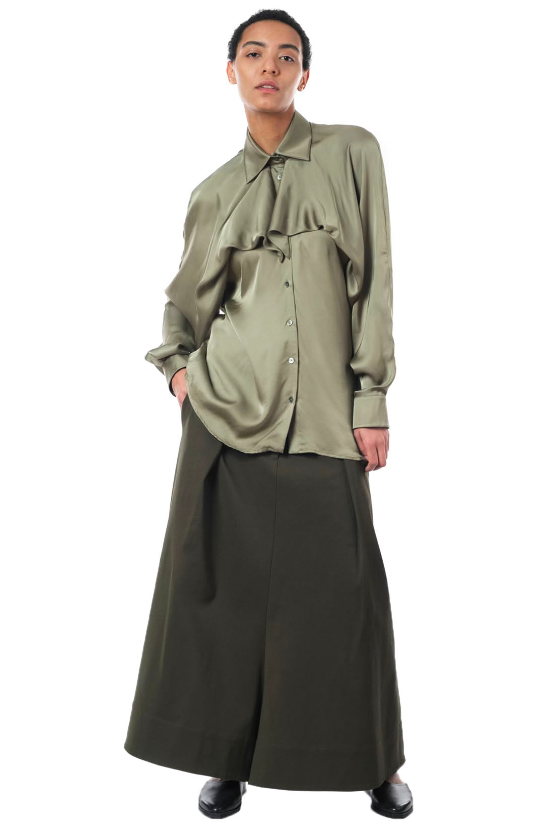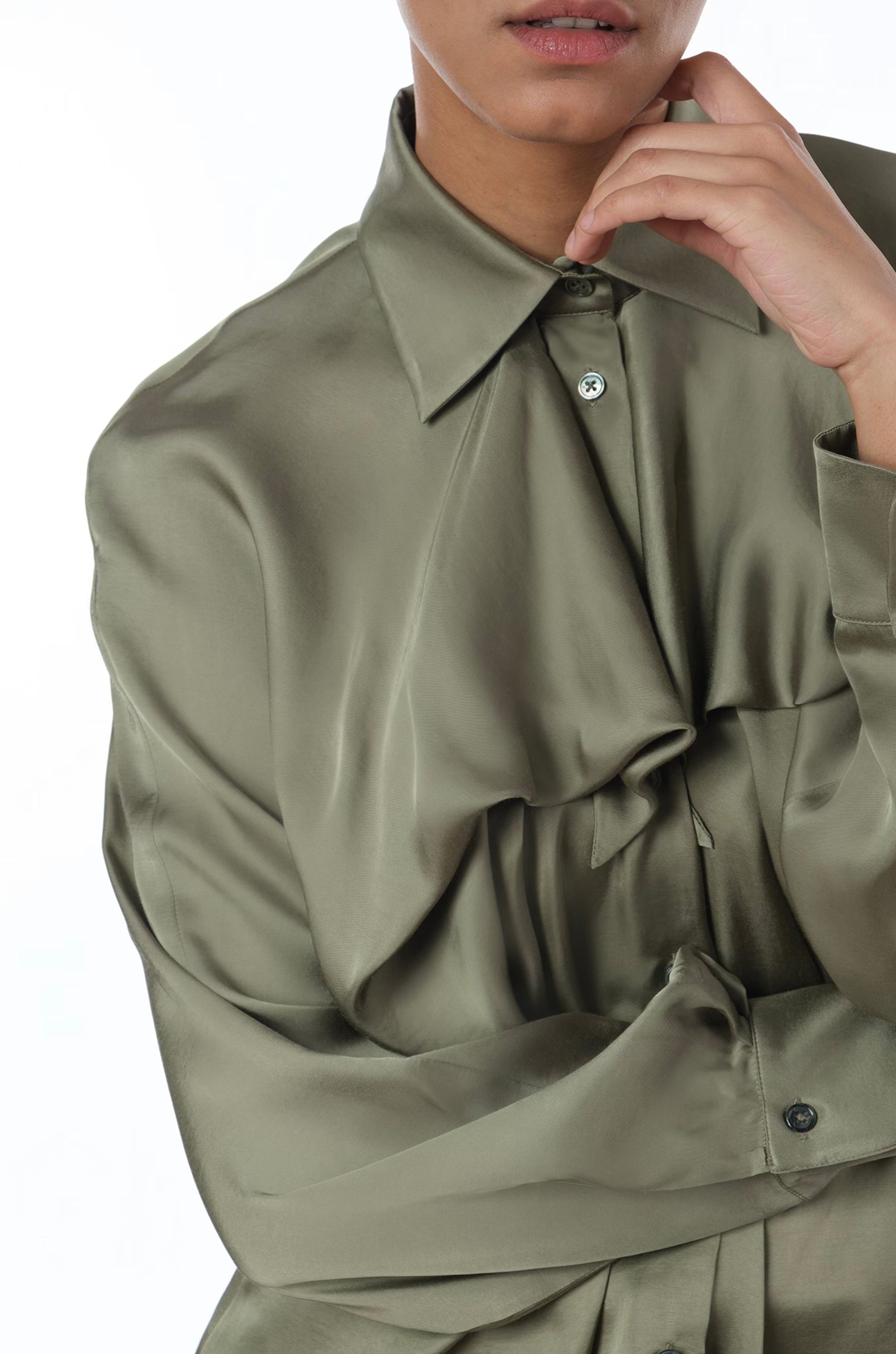 ELEGANT VISCOSE SHIRT WITH A TOUCH OF SILK, RUFFLED CUT AND FRONT BUTTONING WITH MOTHER-OF PEARL BUTTONS. CLASSIC COLLAR.