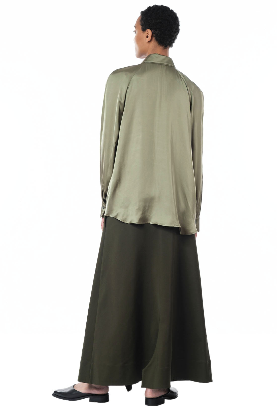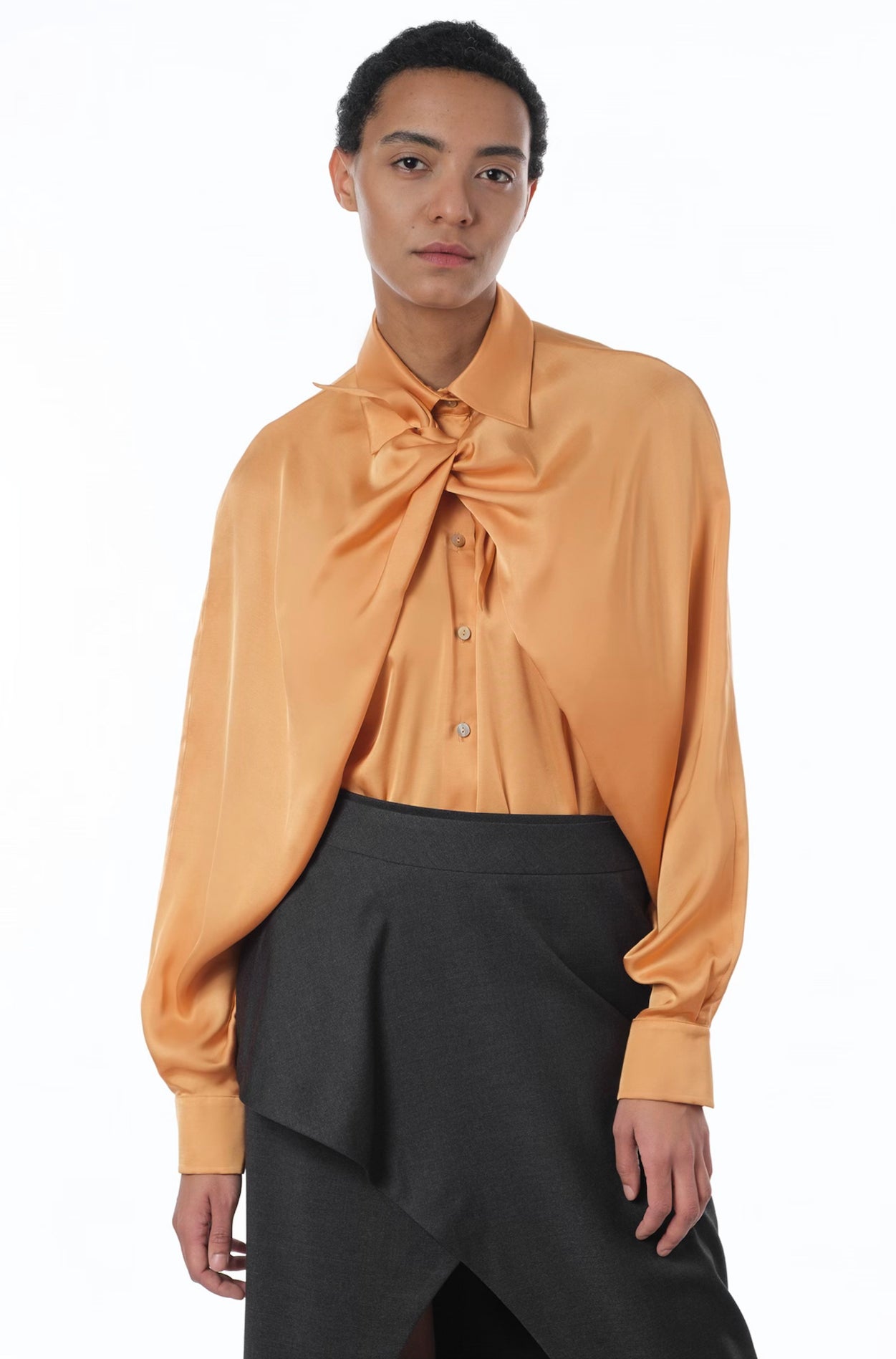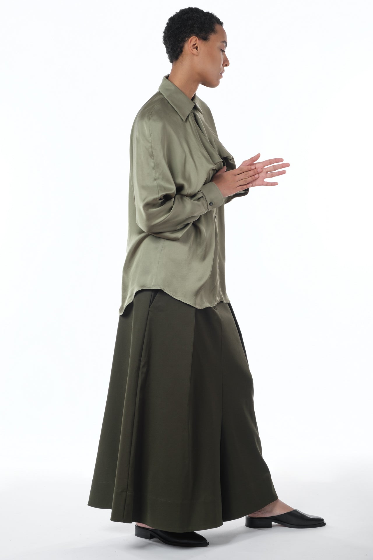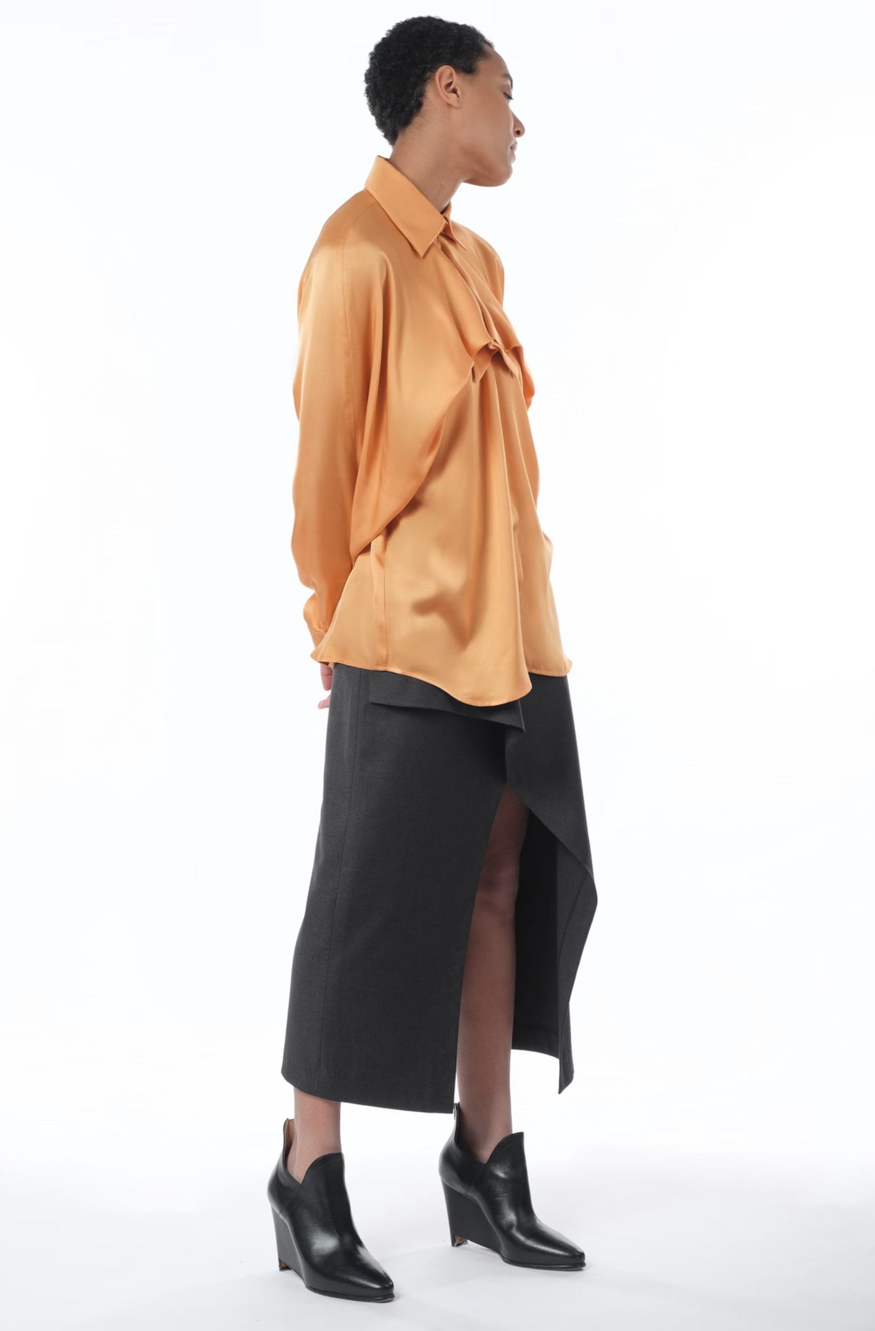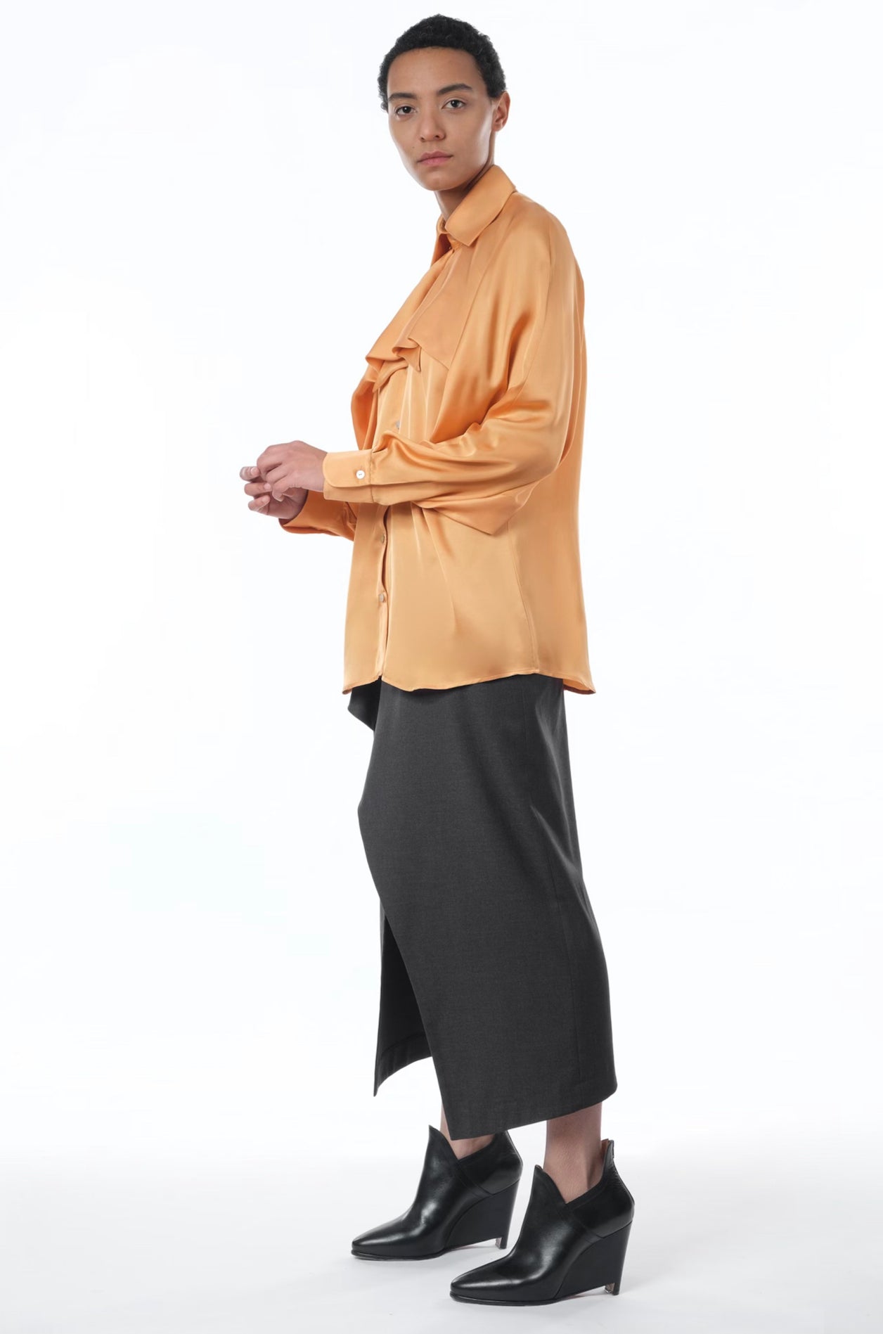 ELEGANT VISCOSE SHIRT WITH A TOUCH OF SILK, RUFFLED CUT AND FRONT BUTTONING WITH MOTHER-OF PEARL BUTTONS. CLASSIC COLLAR.