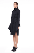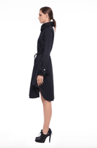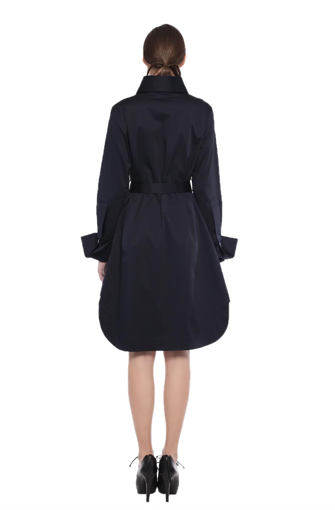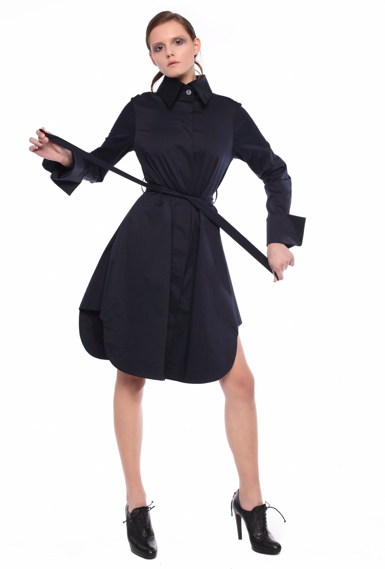 LONG SHIRT-TRENCH IN ELASTIC COTTON WITH ROUNDED HEM CUT AND BELT.