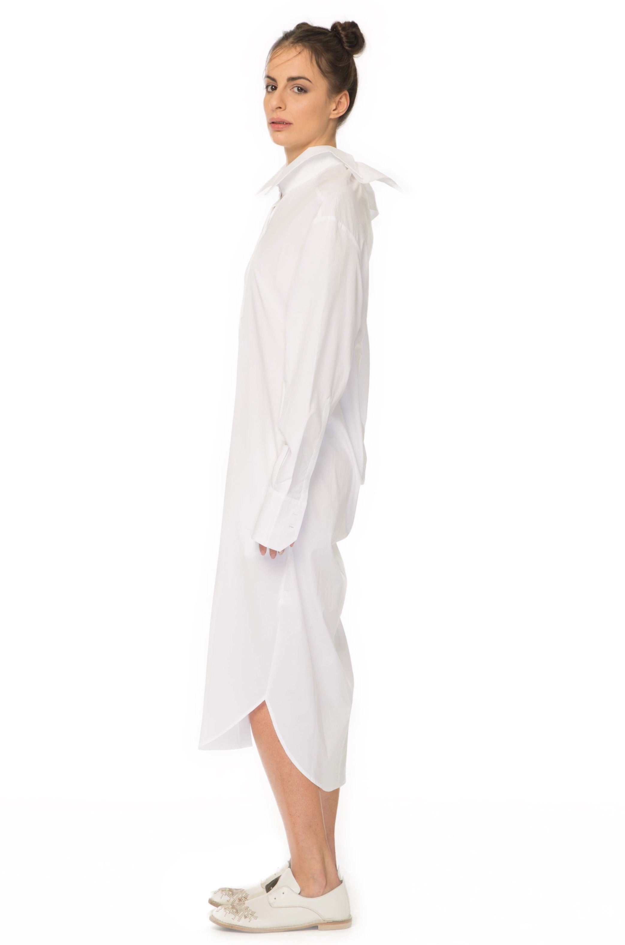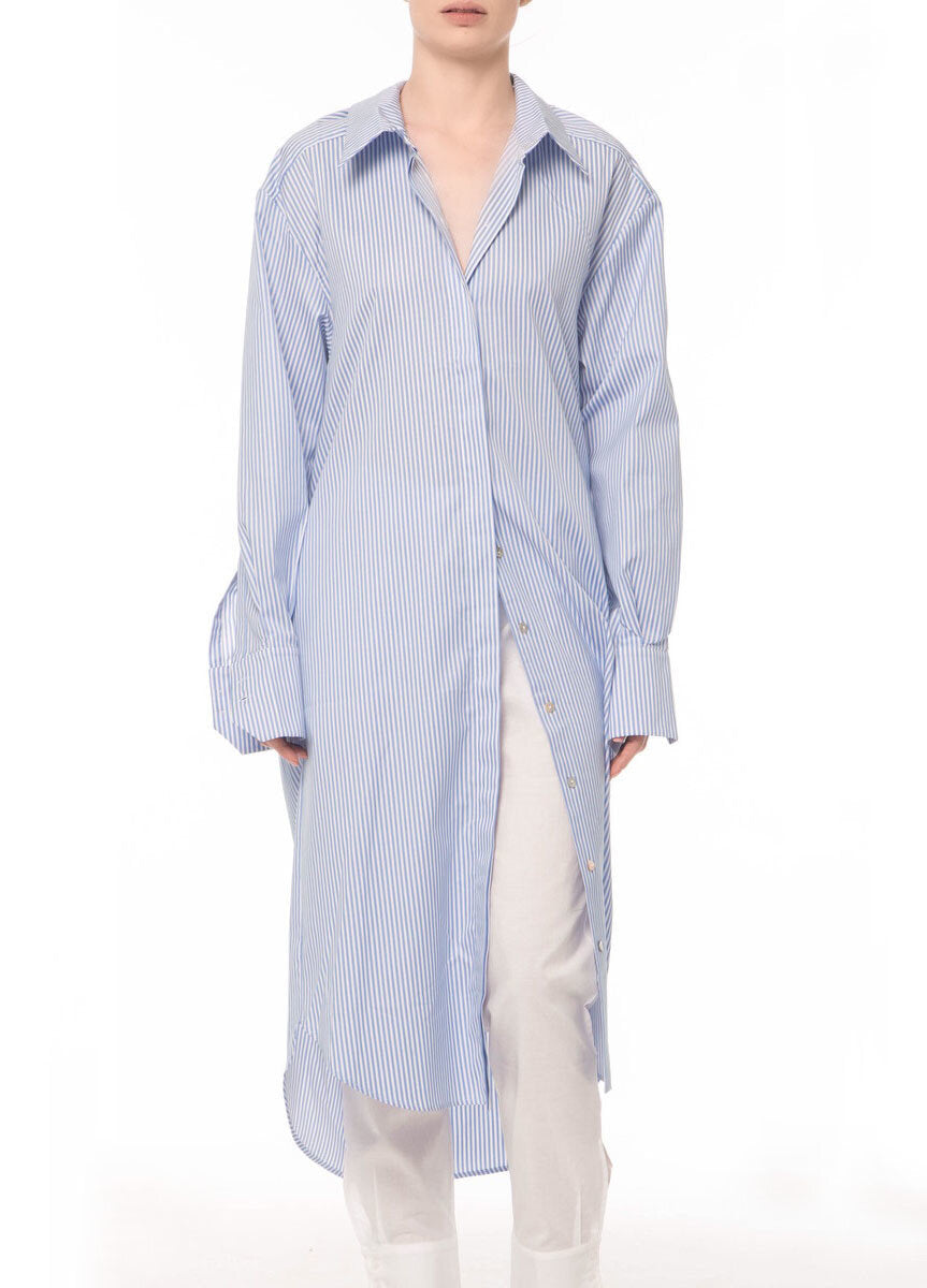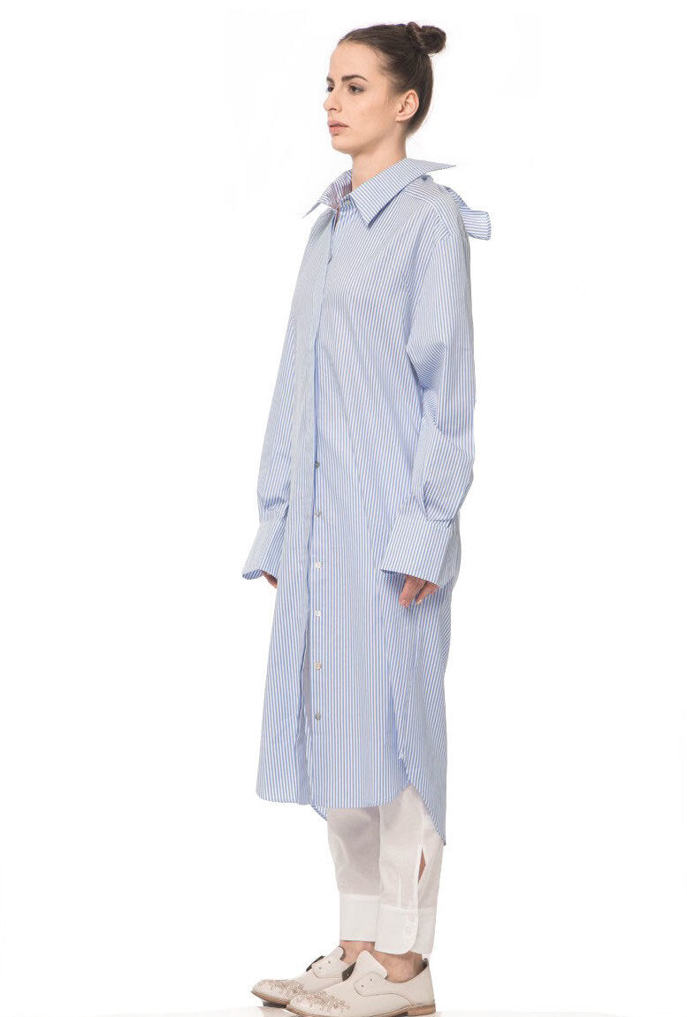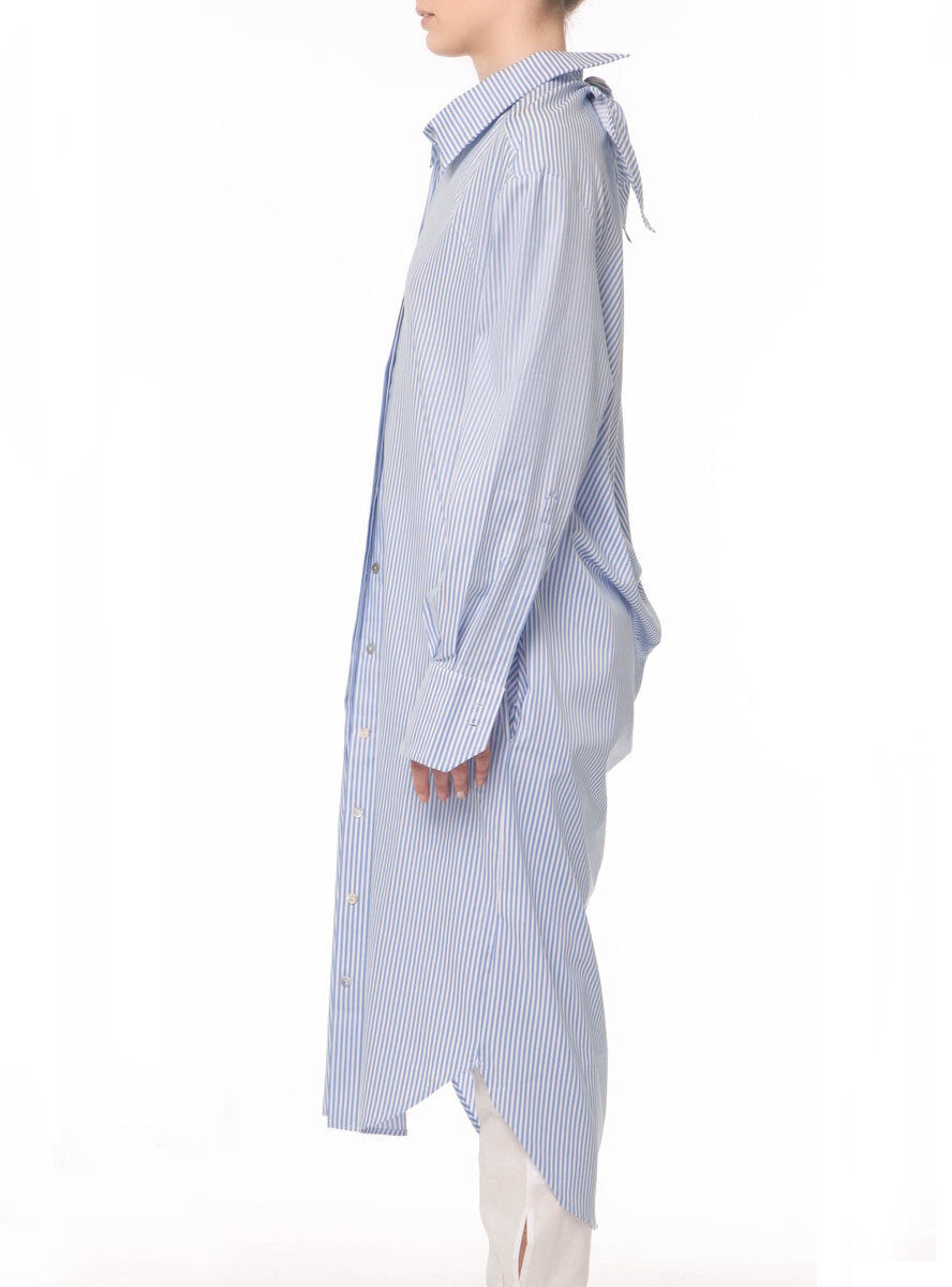 LONG OVERSIZE SHIRT. WIDE OPENING AND KNOTABLE COLLAR ON THE BACK SIDE.