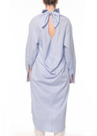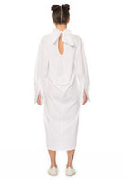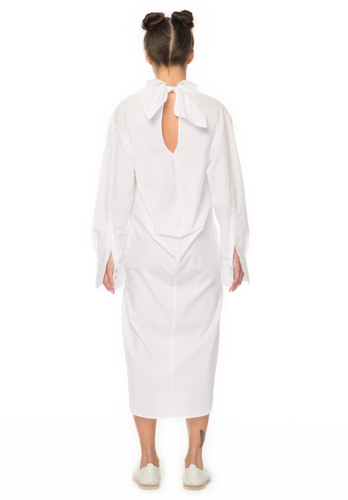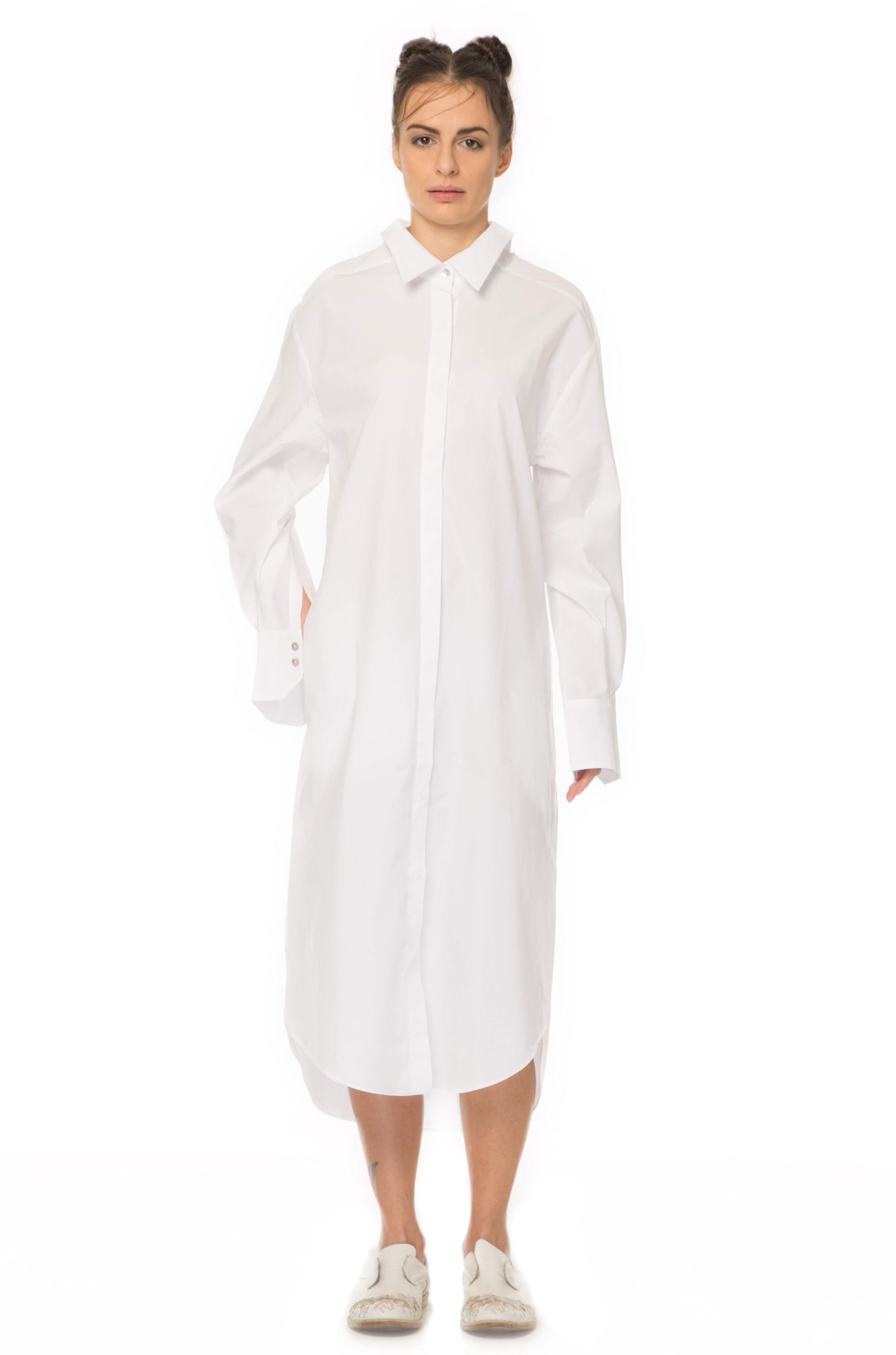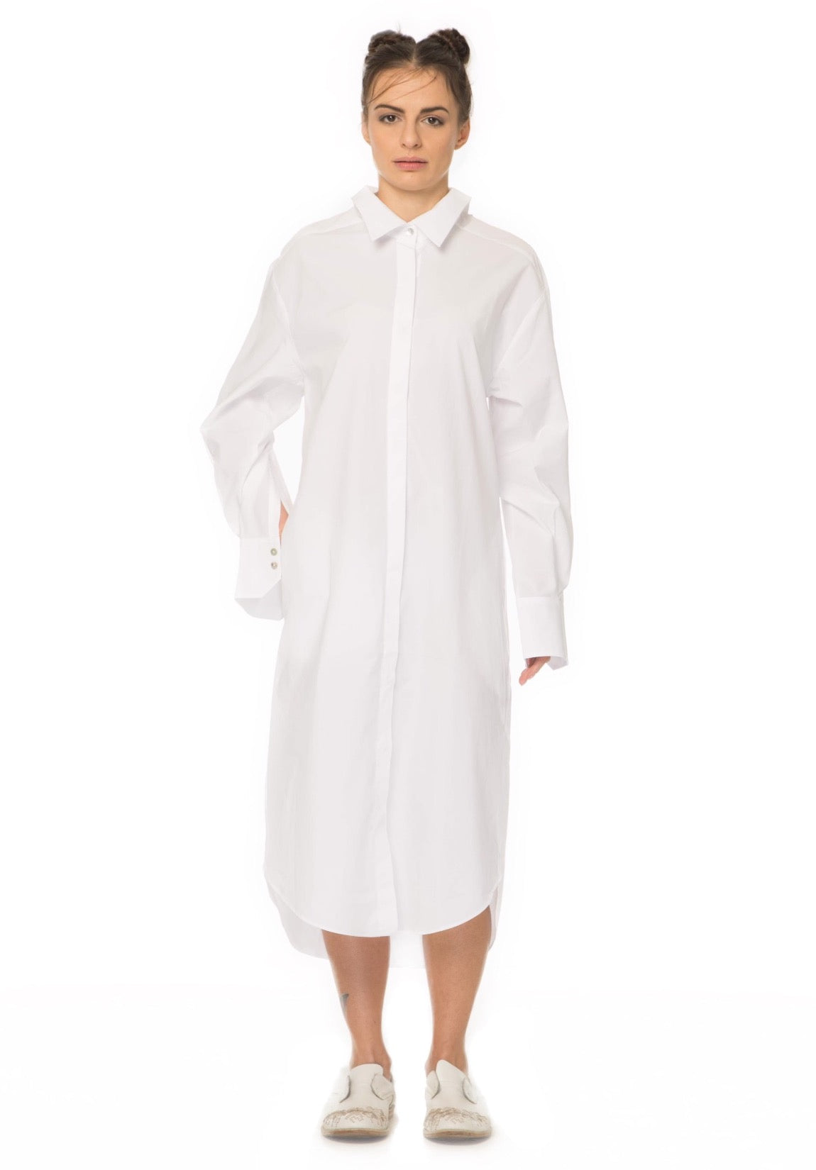 LONG OVERSIZE SHIRT. WIDE OPENING AND KNOTABLE COLLAR ON THE BACK SIDE.