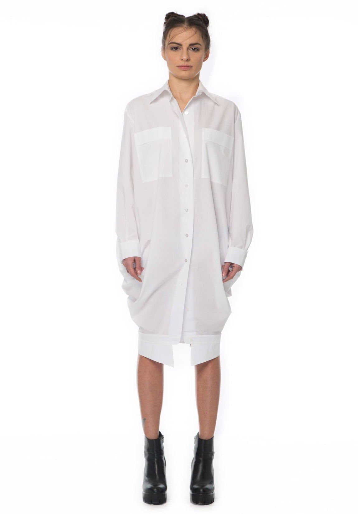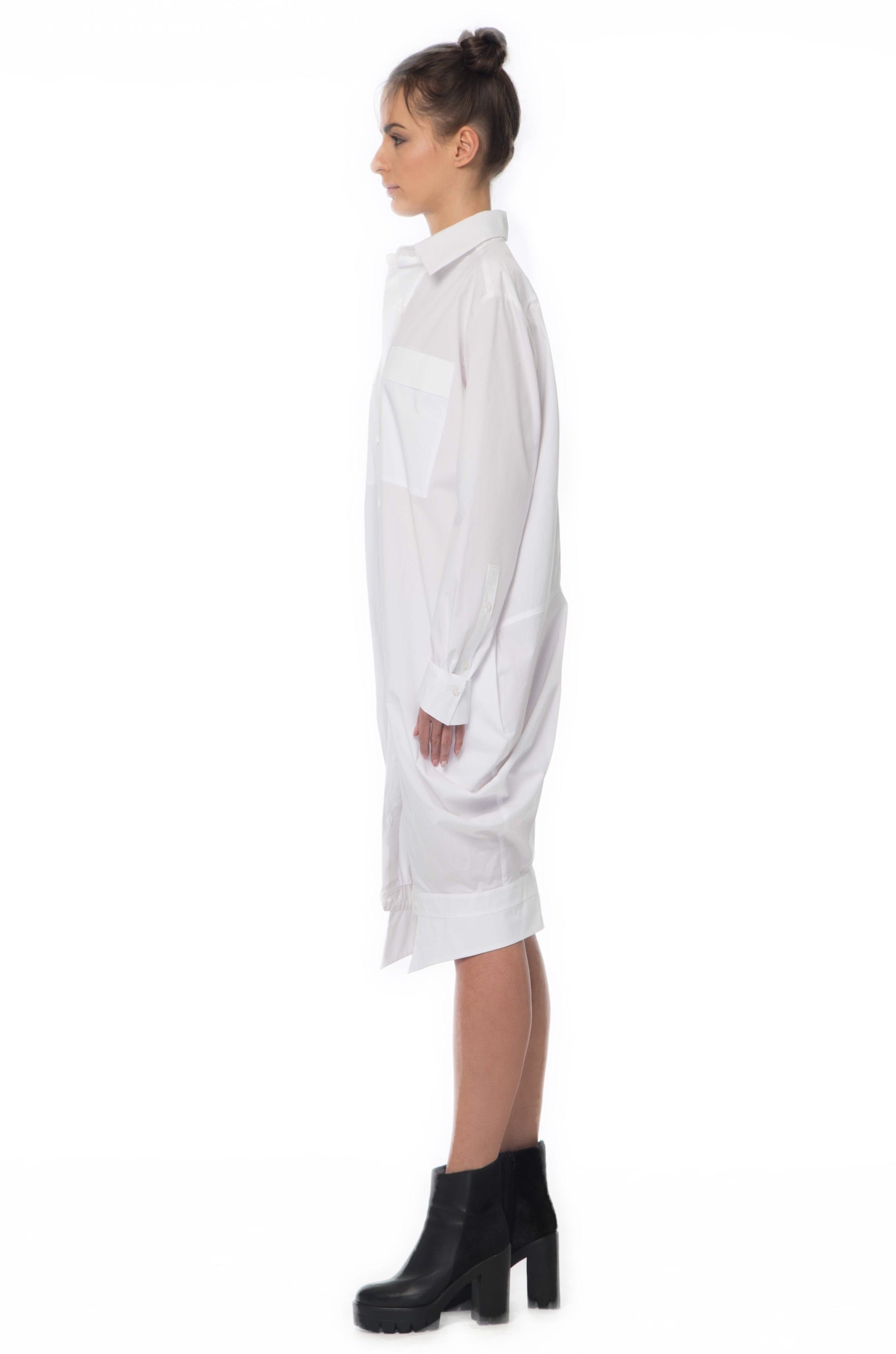 OVERSIZE LONG SHIRT, TWO POCKETS ON THE FRONT SIDE, COLLAR DETAIL ON THE EDGE.