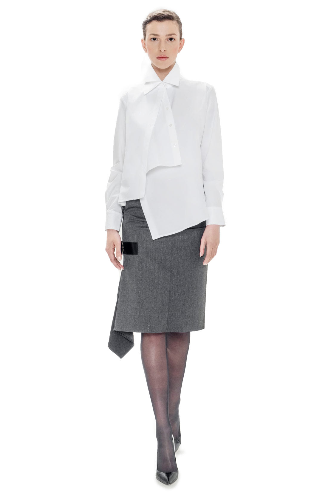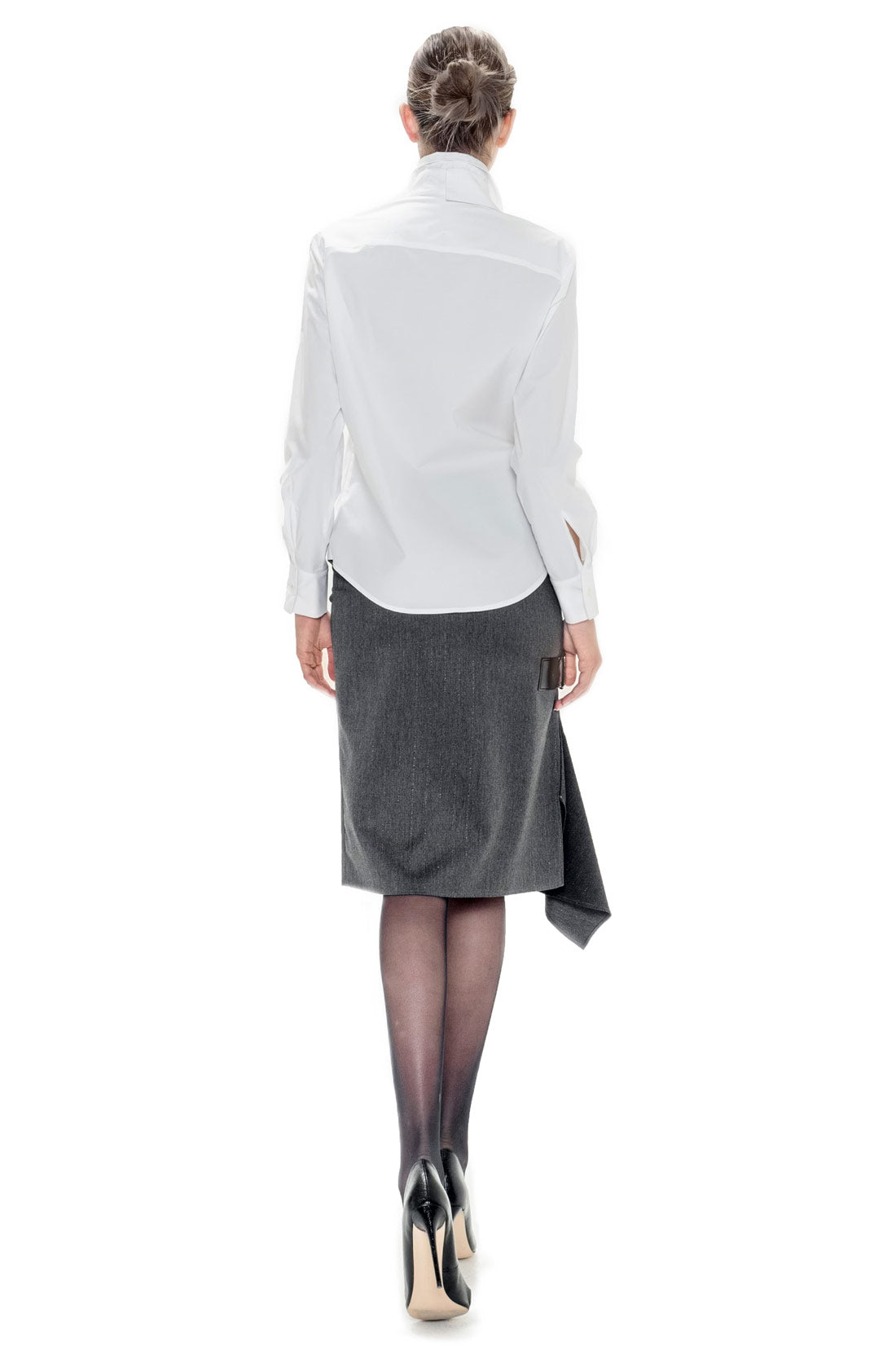 STRETCH COTTON POPLIN SHIRT WITH OVERLAPPING PANELS, CLOSURE WITH LACES ON ONE SIDE INSIDE AND BUTTON ON THE COLLAR.