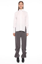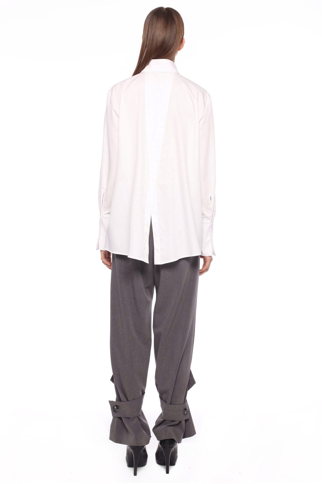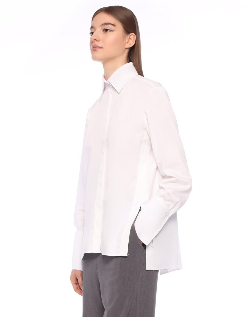 POPLIN SHIRT, SIDE CUTS, OVERLAP DETAIL ON THE BACK.