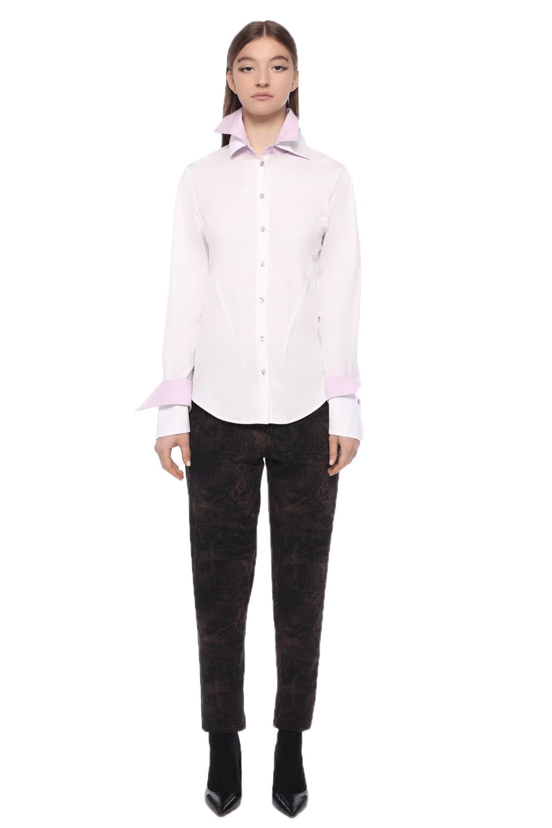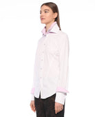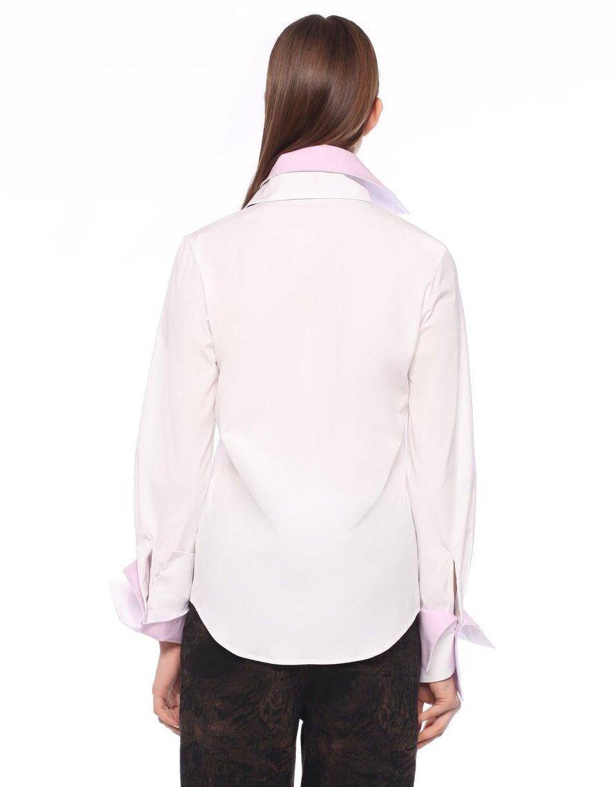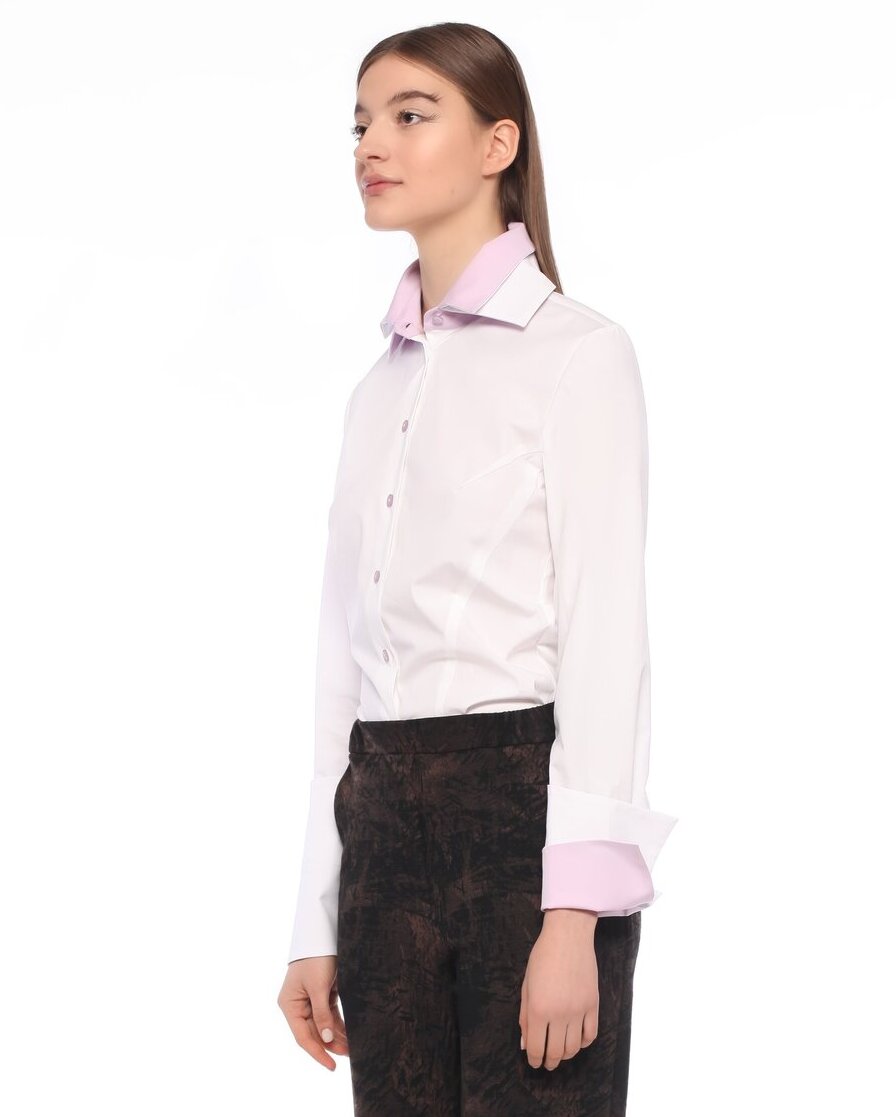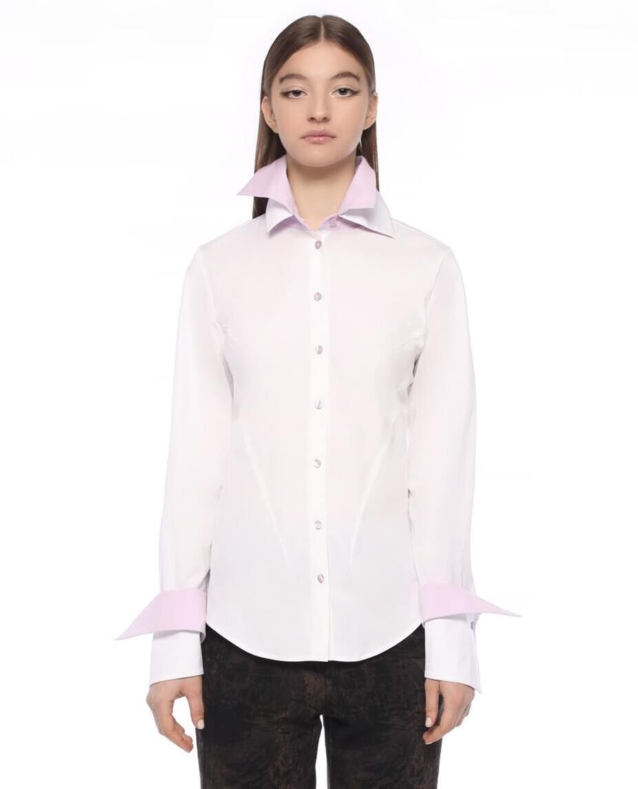 Regular fit stretch shirt with a double collar and double decorative cuffs in contrasting colors.