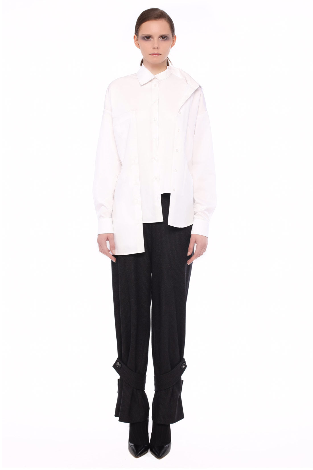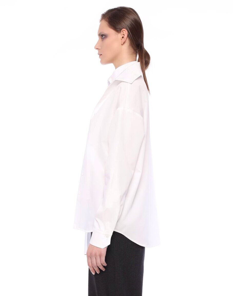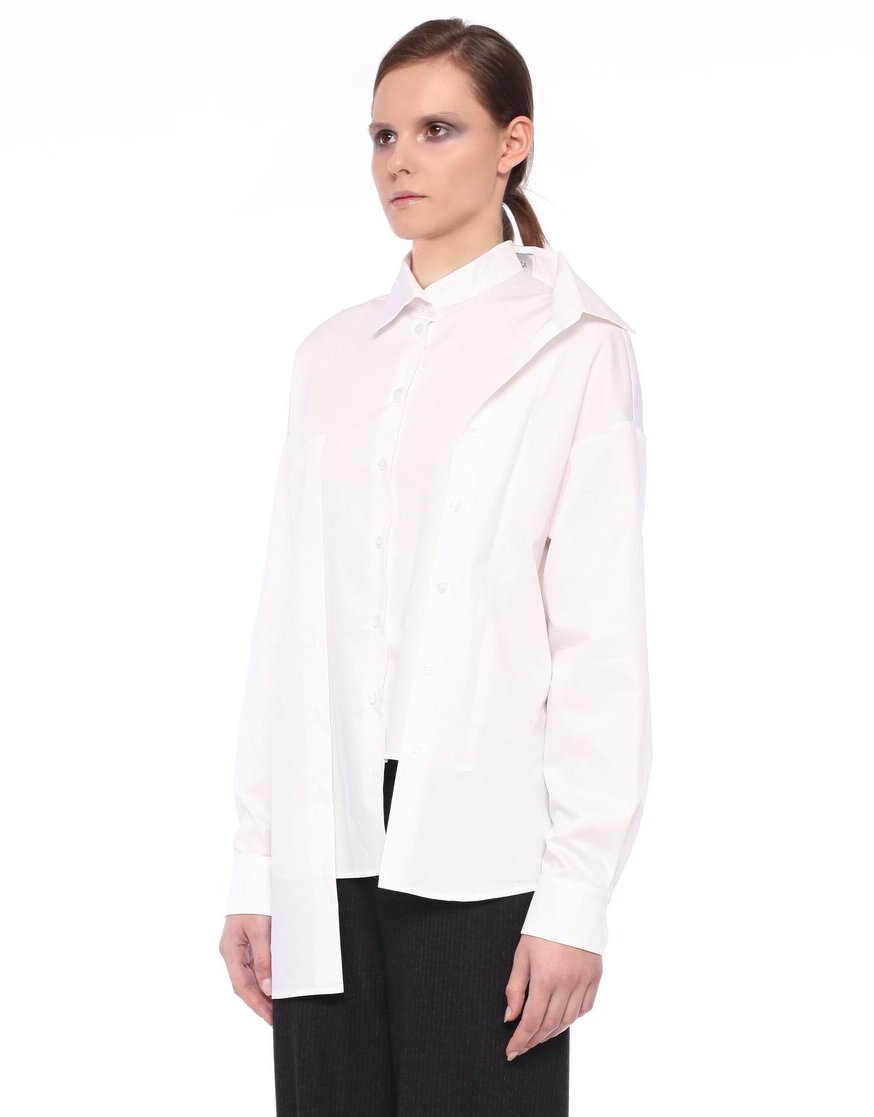 COTTON POPLIN SHIRT WITH LONG SLEEVES, PANEL DETAILS OF DIFFERENT LENGTH, ASYMMETRIC COLLAR, CLASSIC CUFFS, CENTRAL BUTTONING.