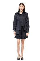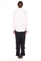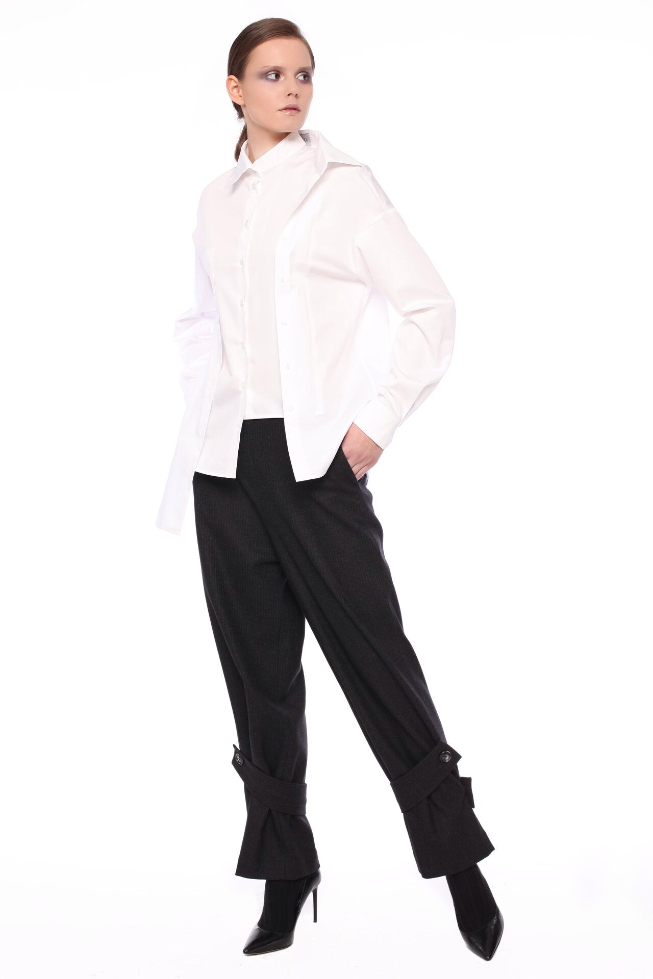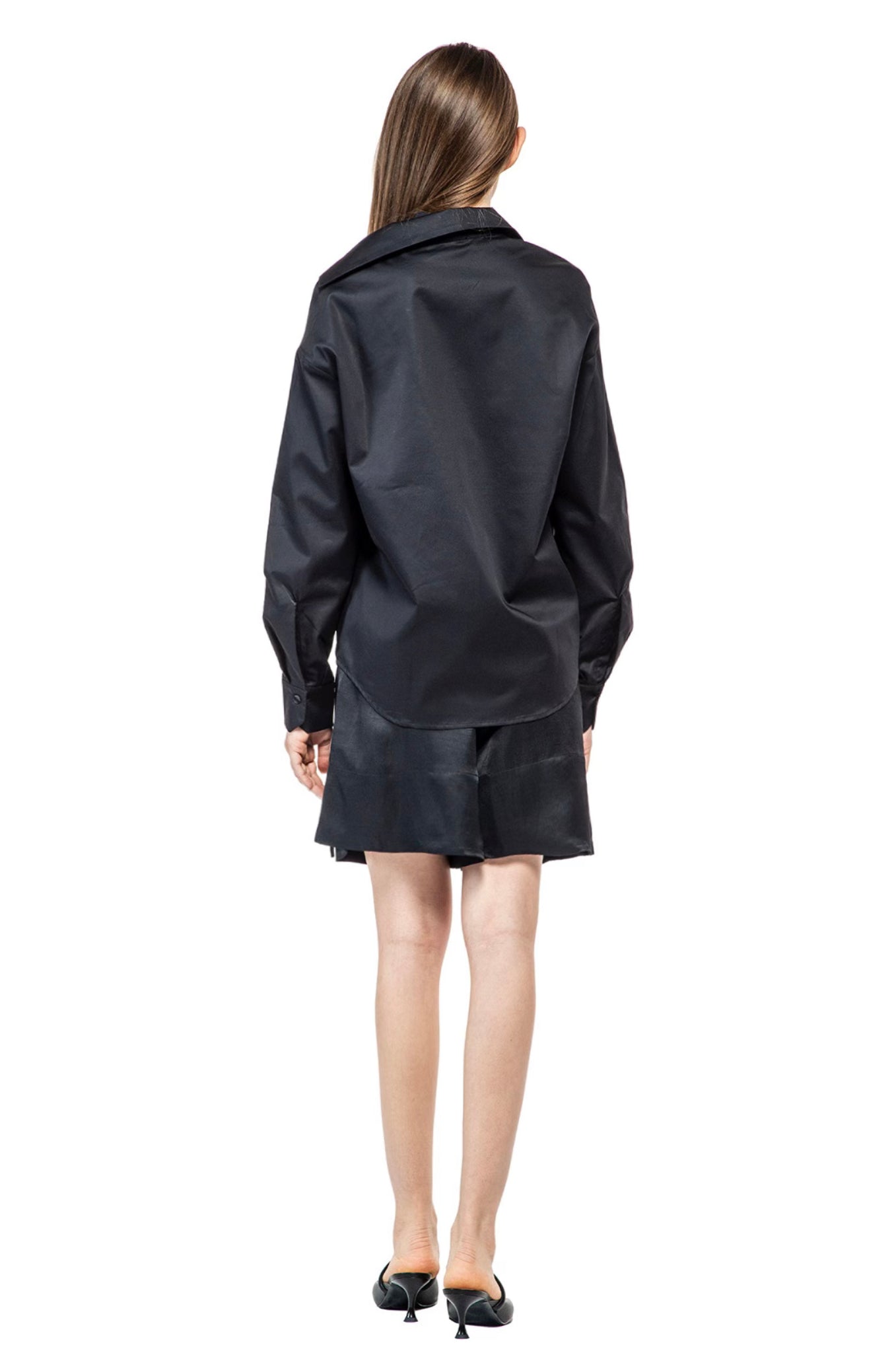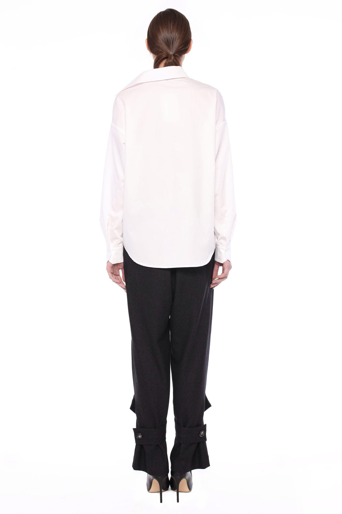 COTTON POPLIN SHIRT WITH LONG SLEEVES, PANEL DETAILS OF DIFFERENT LENGTH, ASYMMETRIC COLLAR, CLASSIC CUFFS, CENTRAL BUTTONING.