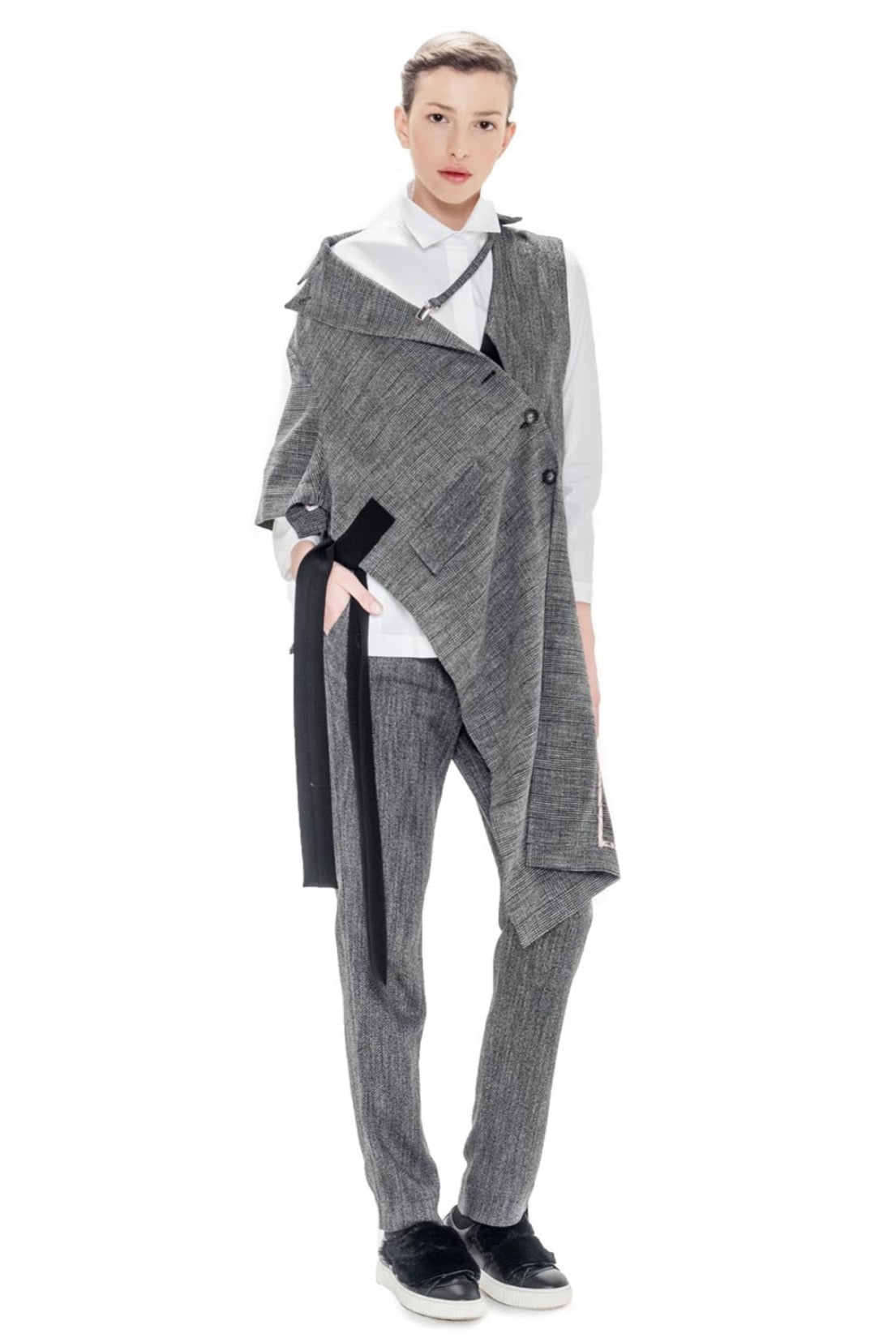 DECONSTRUCTED JACKET, RIVER COLLAR, FRONT BUTTONING