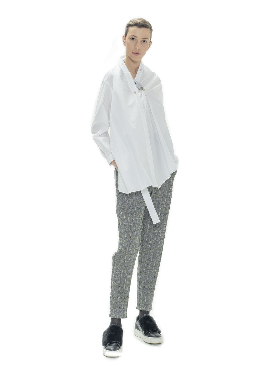 COTTON LONG SLEEVED SHIRT WITH V COLLAR AND BALOSSA LOGGED CLIP.