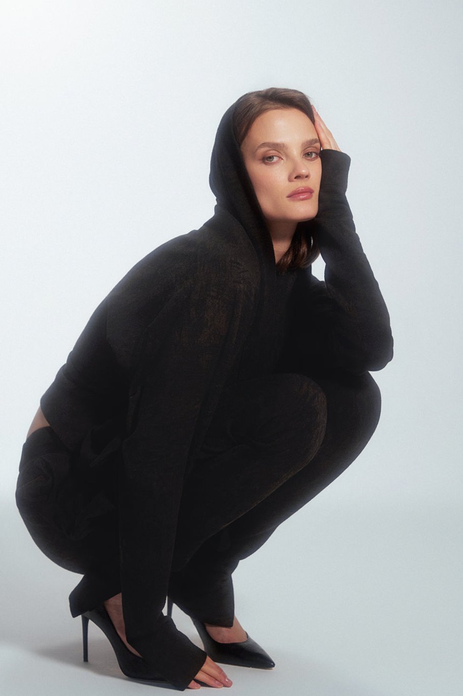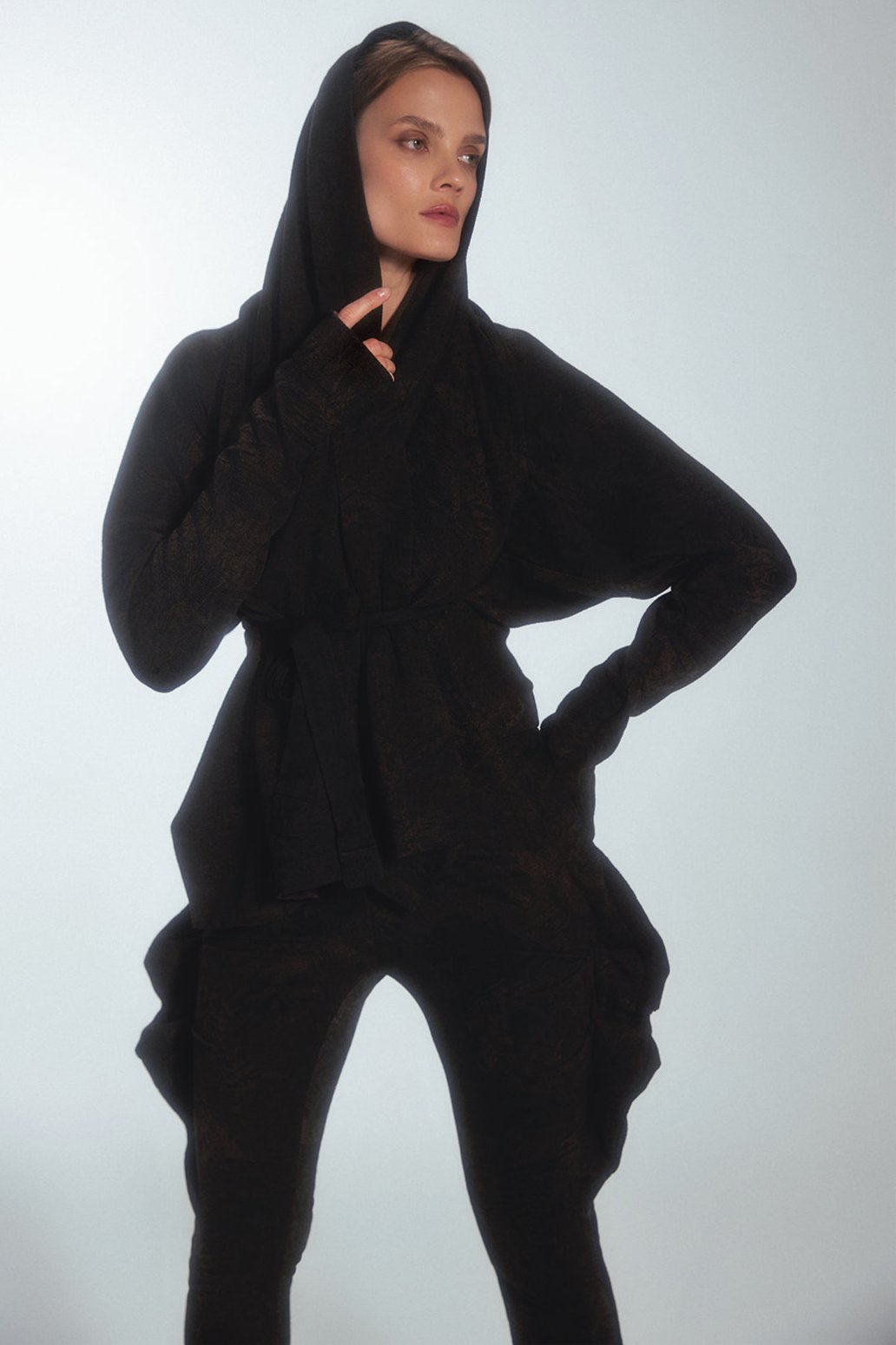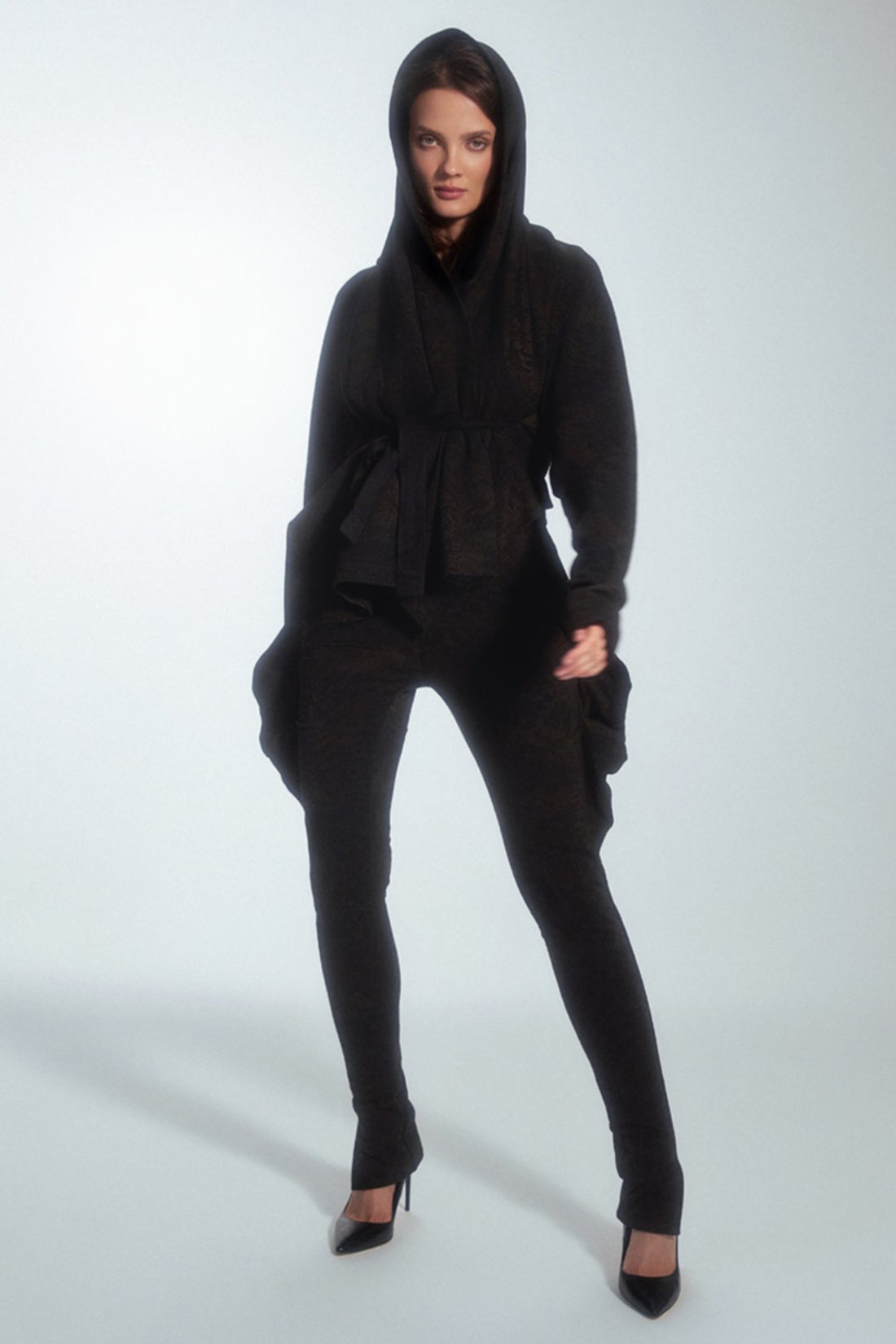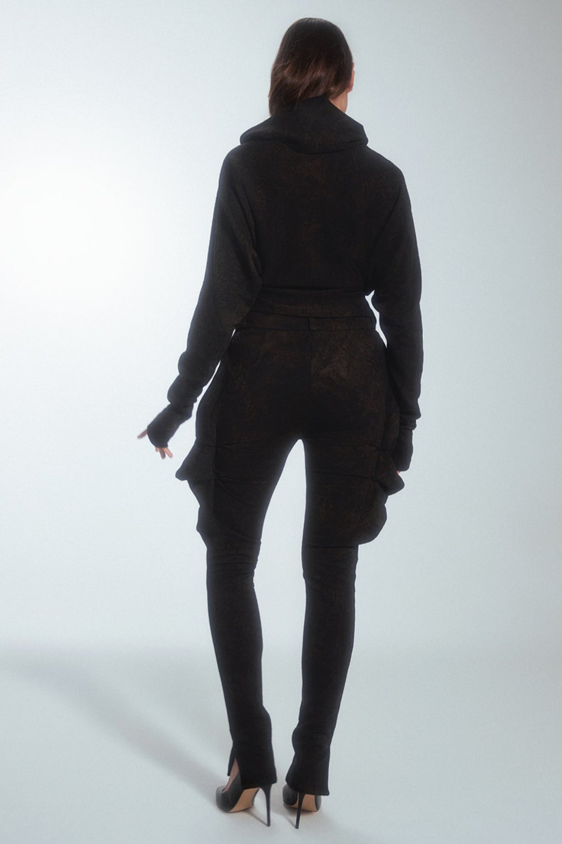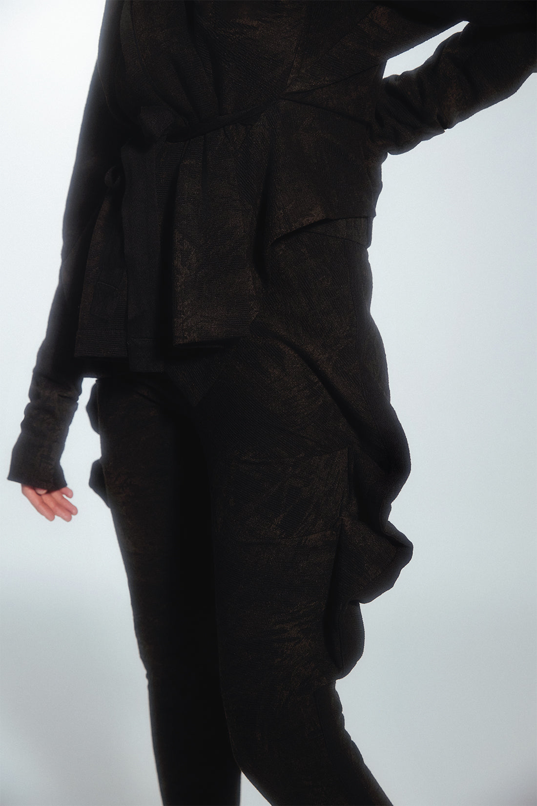 Slim fit pants with ruffles on the sides of the leg above the knee to create a gallifet effect. The trousers feature a front zip closure and side pockets. The leg is extra-long and tapered with side slits. The pants made from soft and comfortable jersey. Can be paired with ZARA sweatshirt .